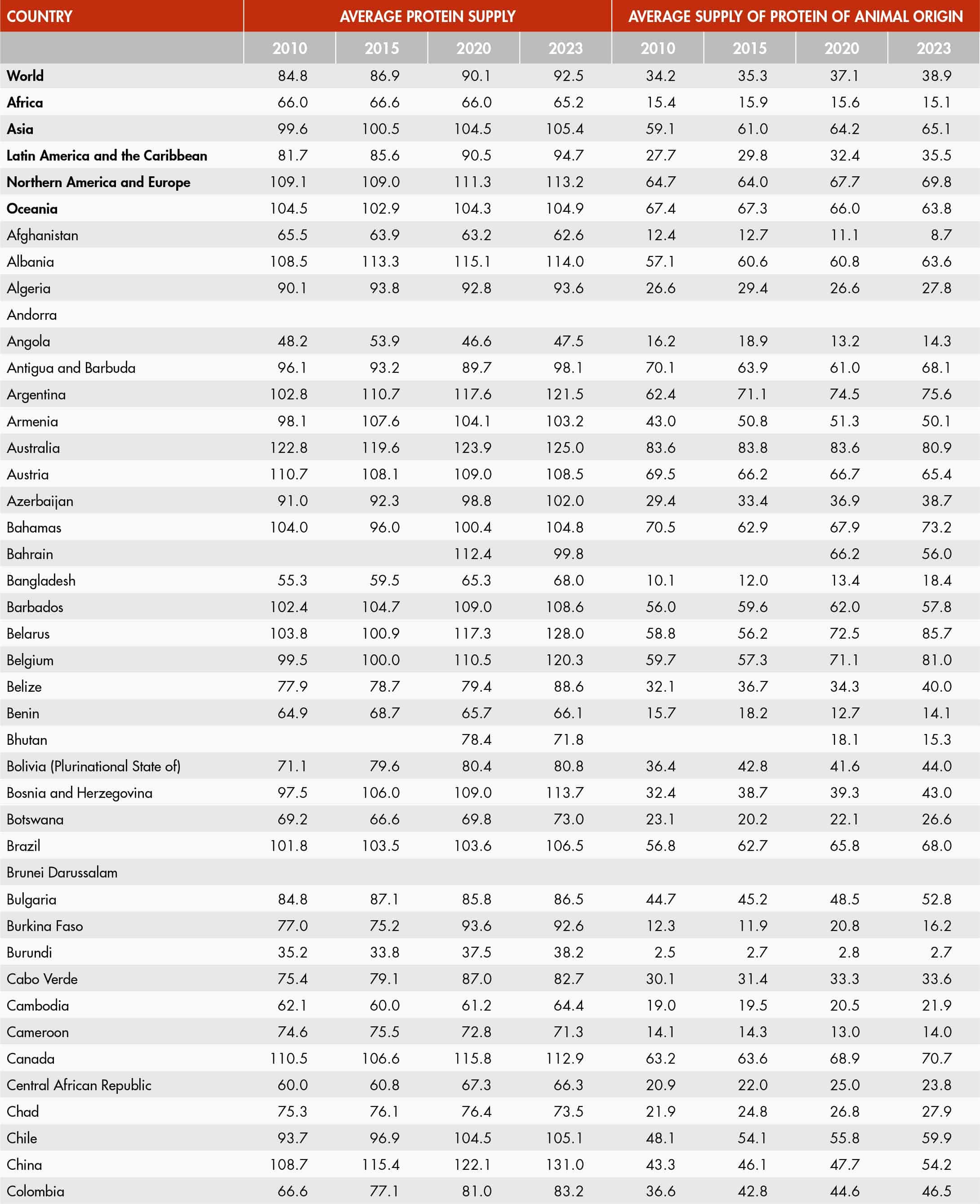 National average protein supply (expressed in grams per capita per day) includes the following groups: meat, offals, animal fats and products, milk and products, eggs, aquatic animal products and other.