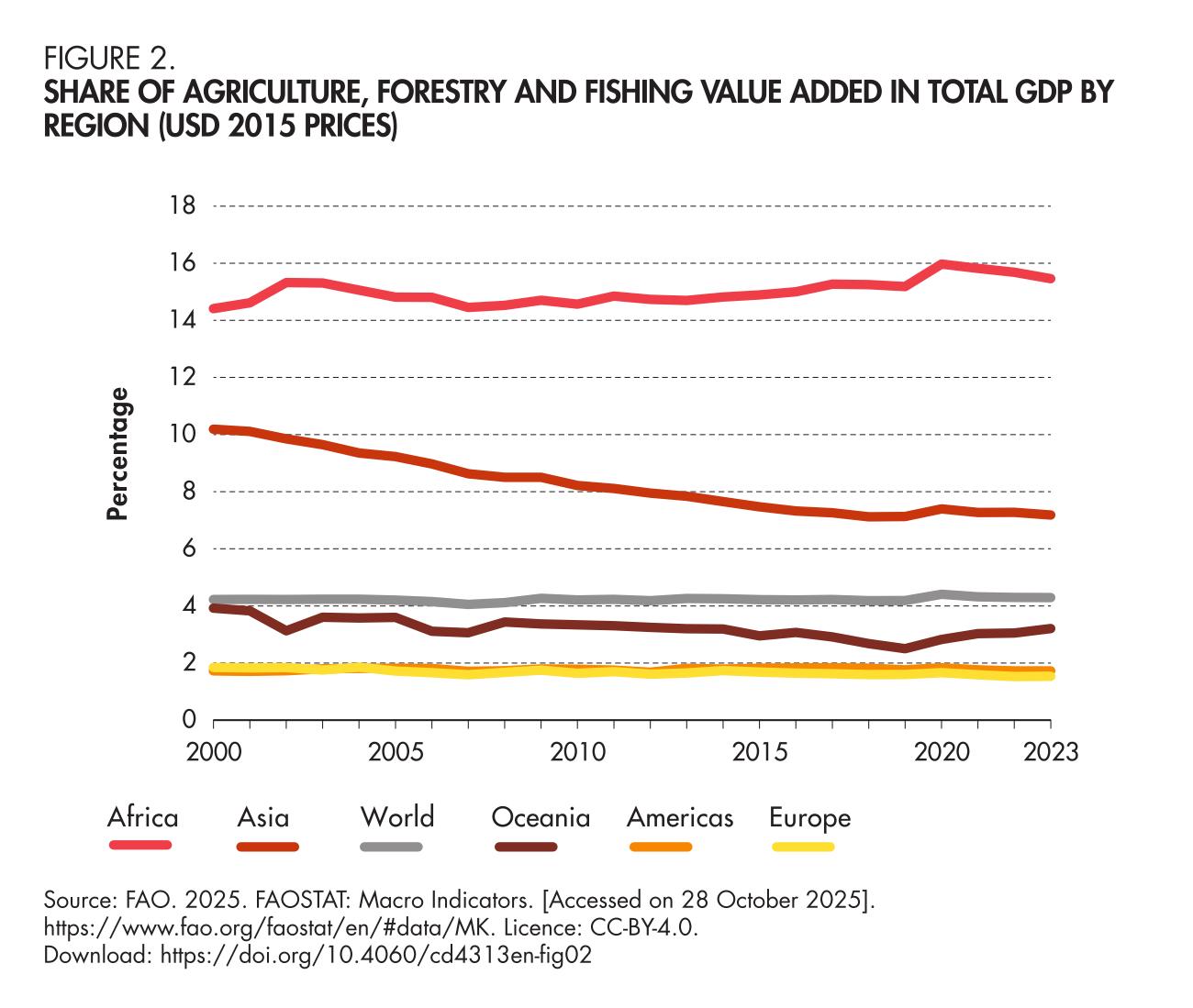 2. Share of agriculture, forestry and fishing value added in total GDP by region (USD 2015 prices)