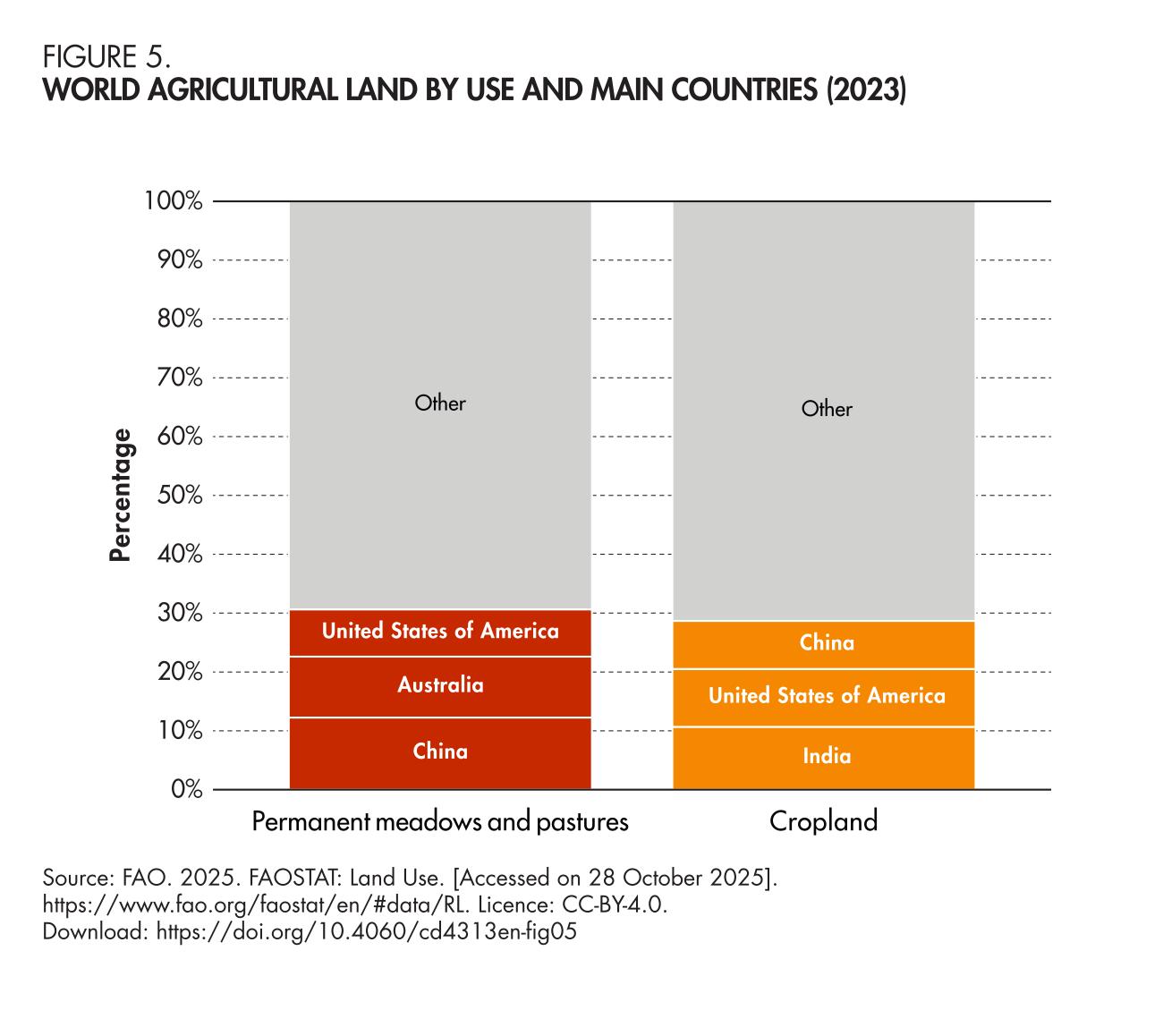 5. World agricultural land by use and main countries (2023)