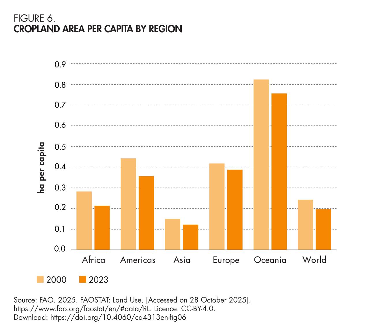 6. Cropland area per capita by region