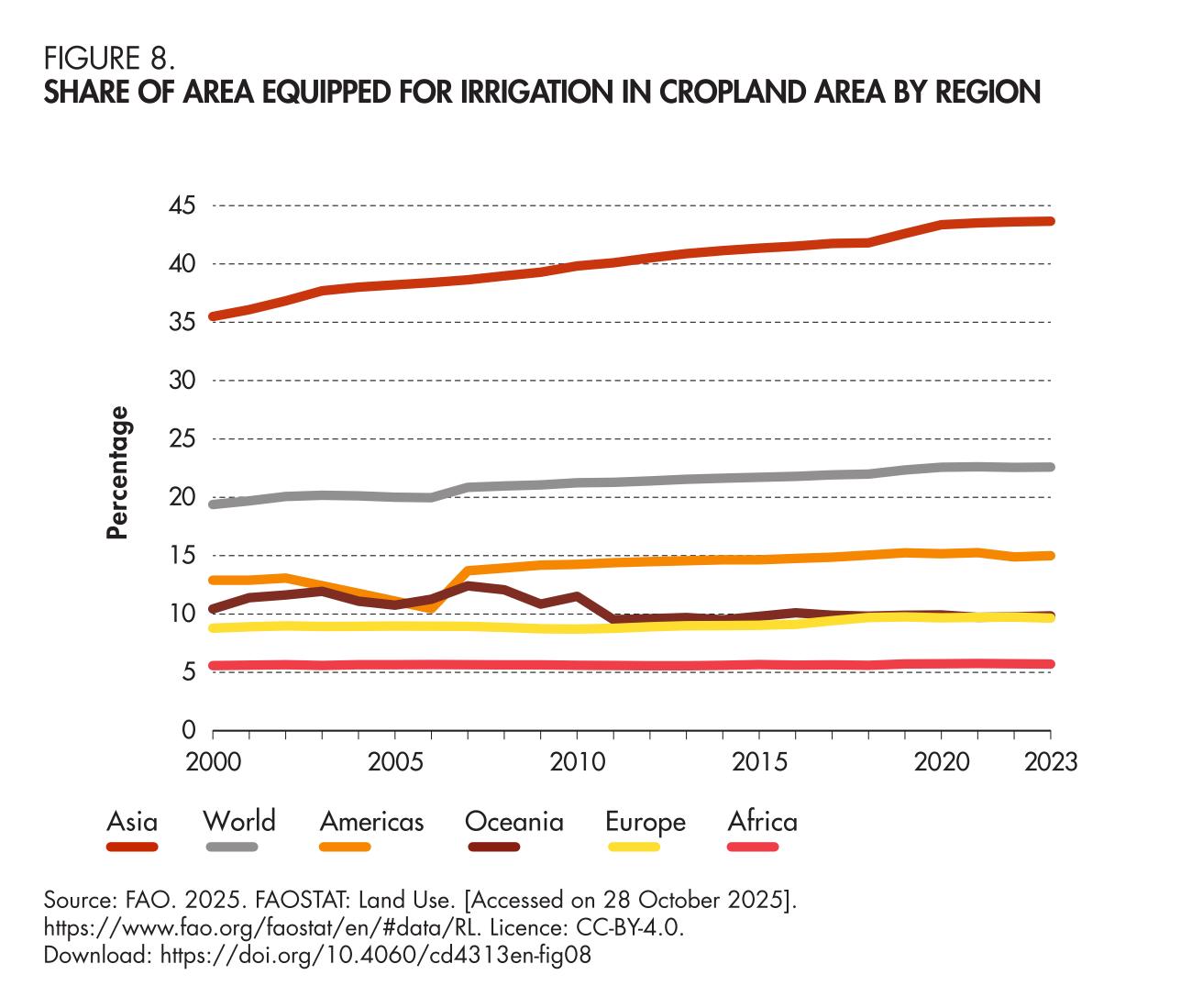 8. Share of area equipped for irrigation in cropland area by region