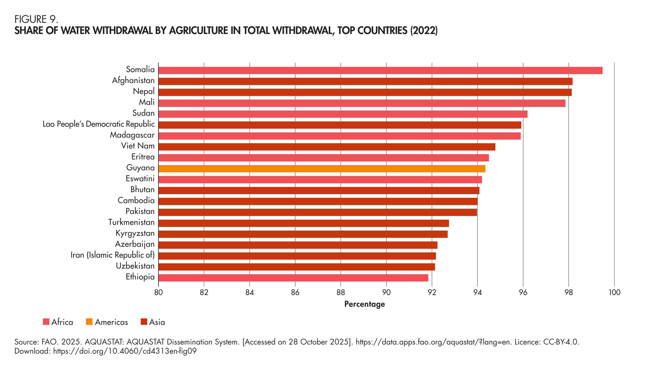 9. Share of water withdrawal by agriculture in total withdrawal, top countries (2022)