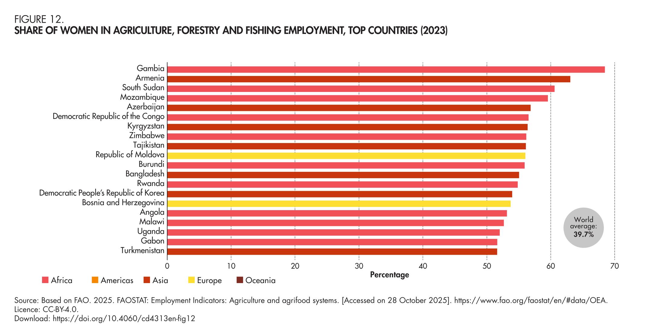 12. Share of women in agriculture, forestry and fishing employment, top countries (2023)