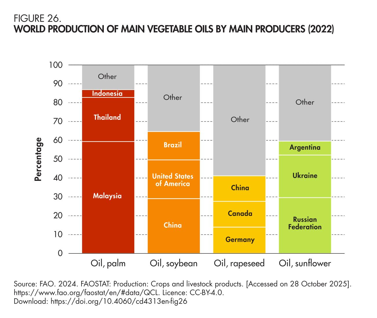 26. World production of main vegetable oils by main producers (2022)