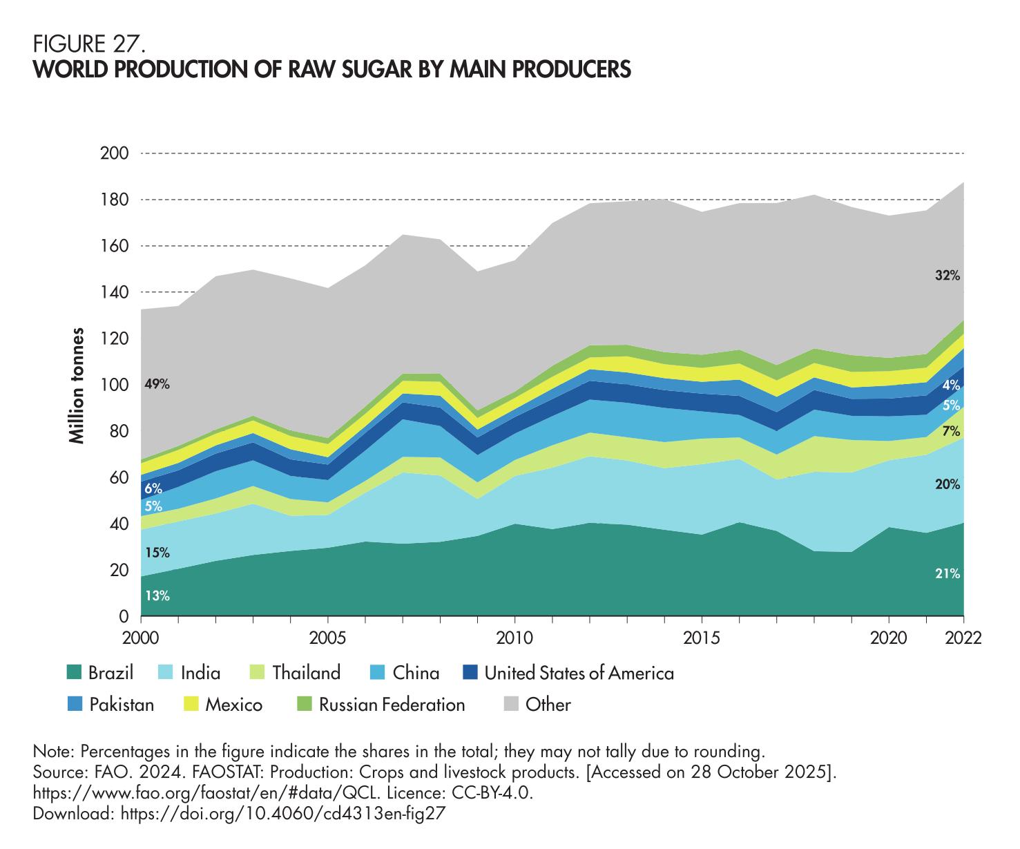 27. World production of raw sugar, main producers