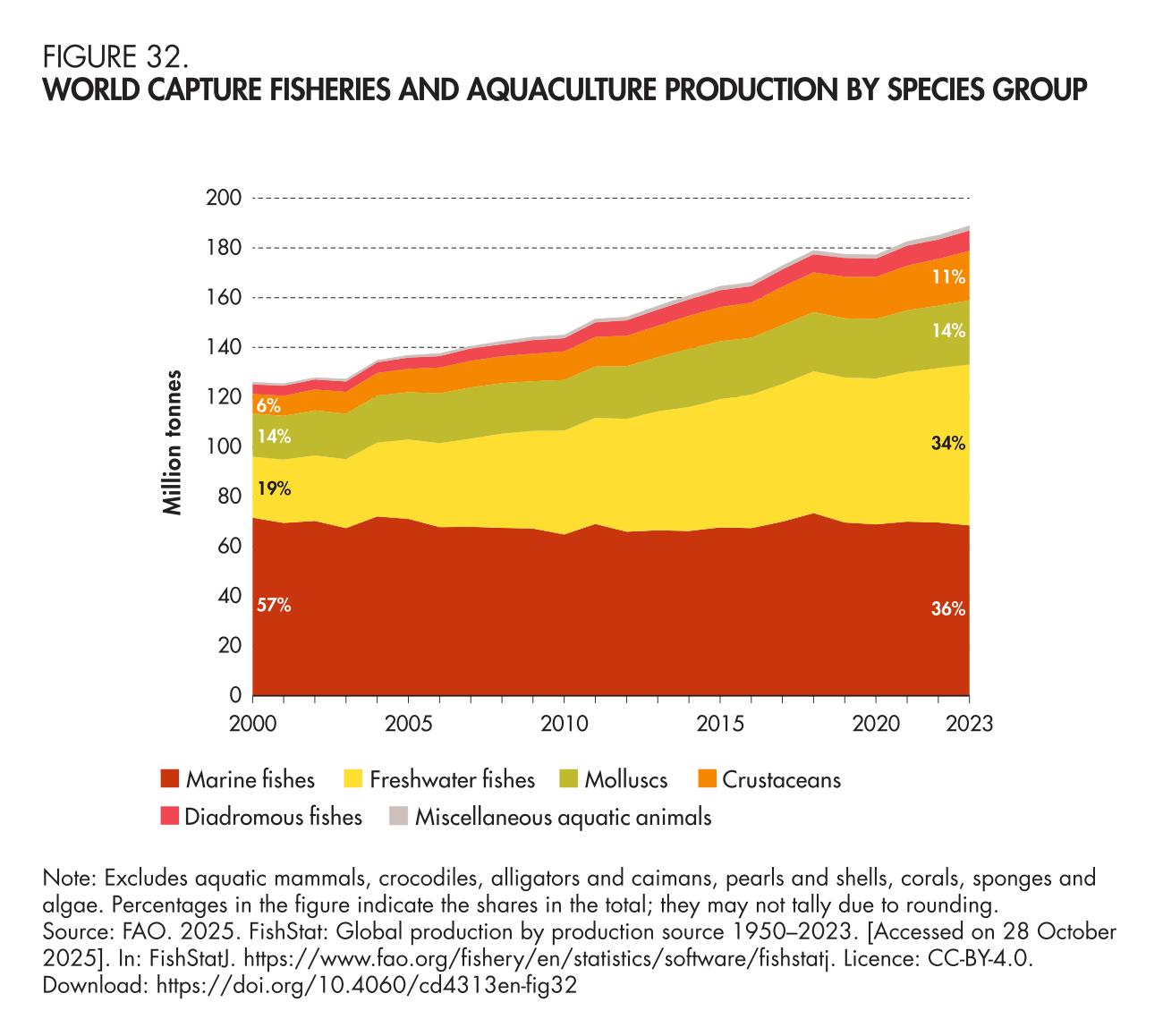32. World capture fisheries and aquaculture production by species group