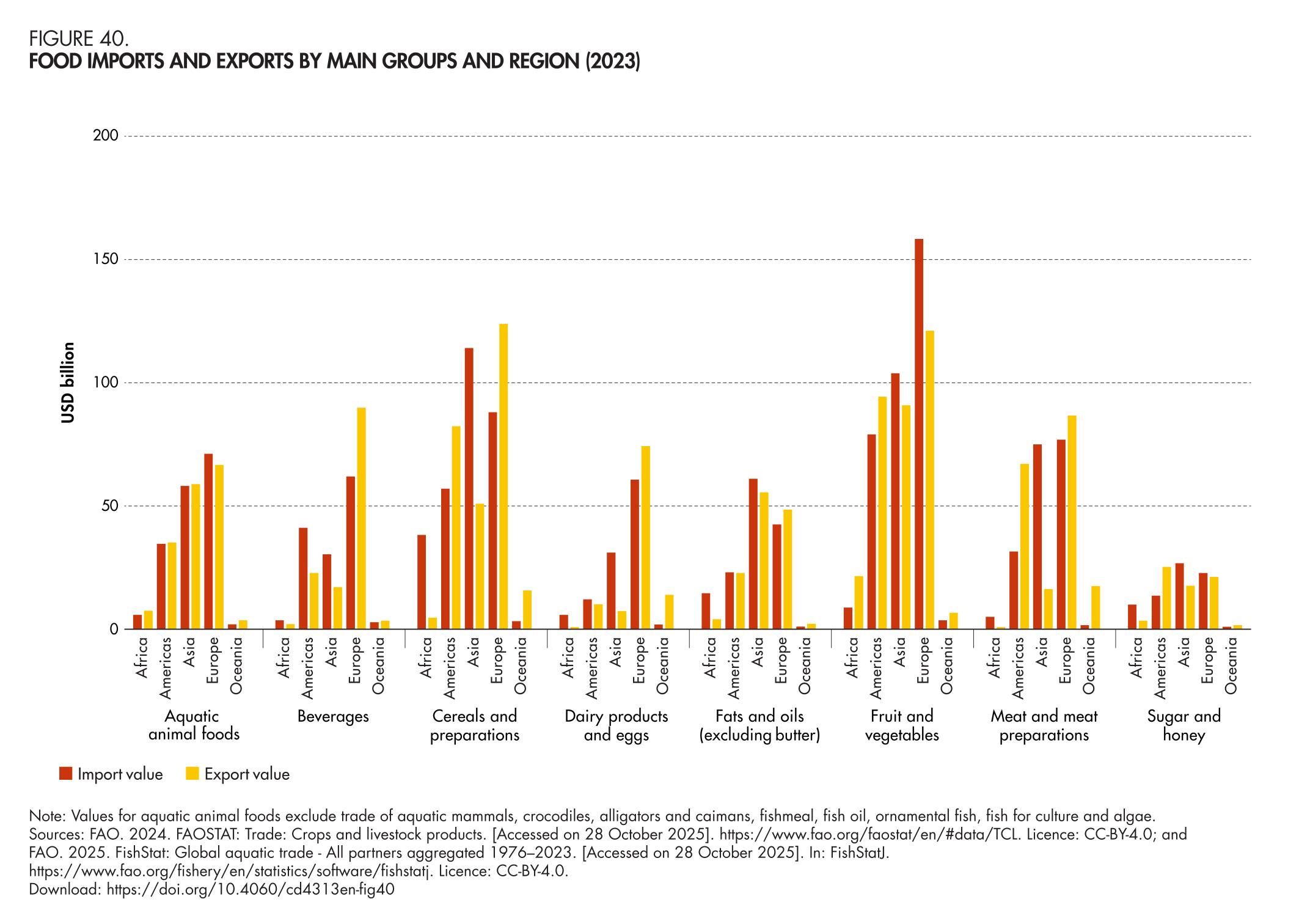 40. Food imports and exports by main groups and region (2023)