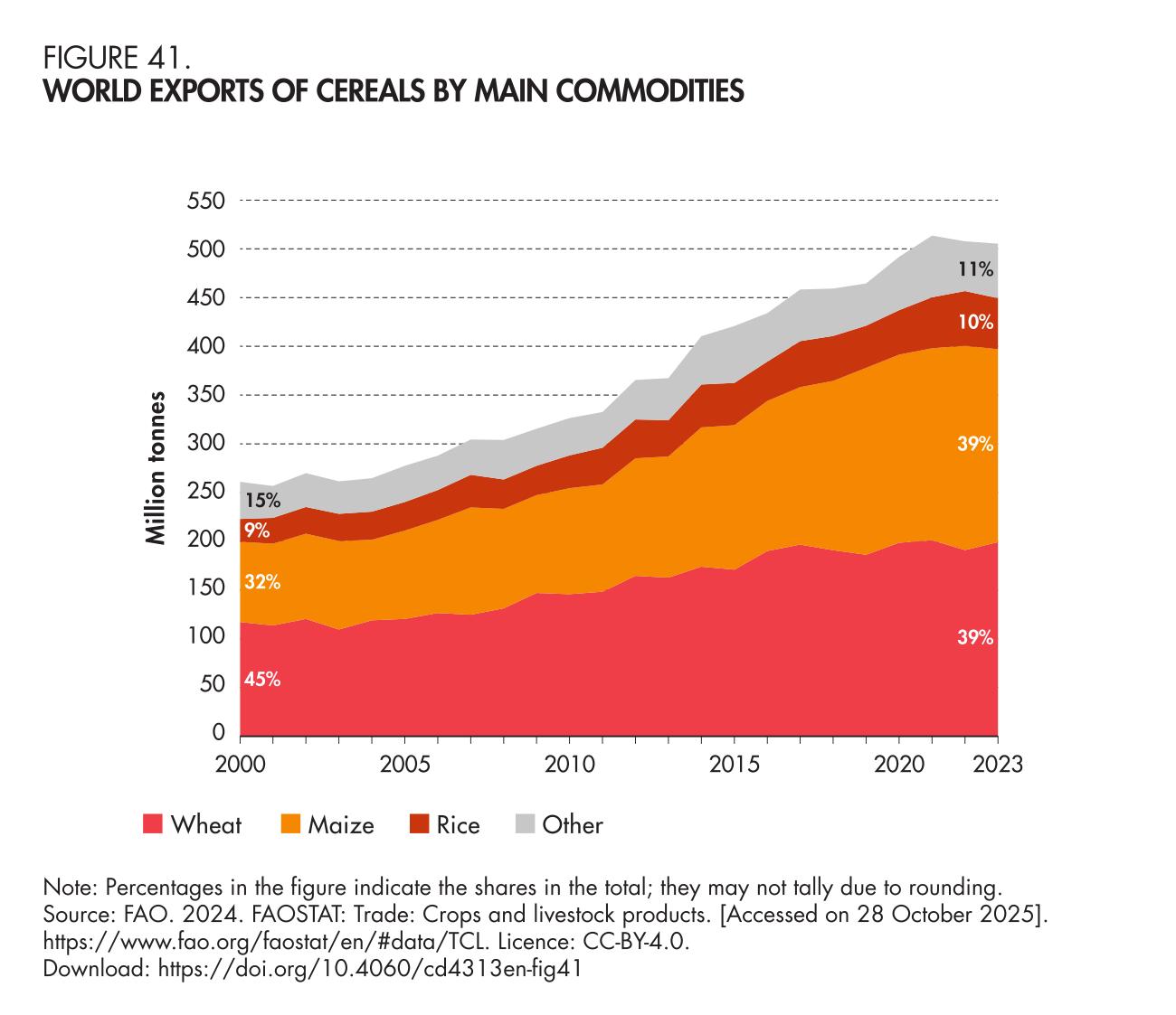41. World exports of cereals by main commodities