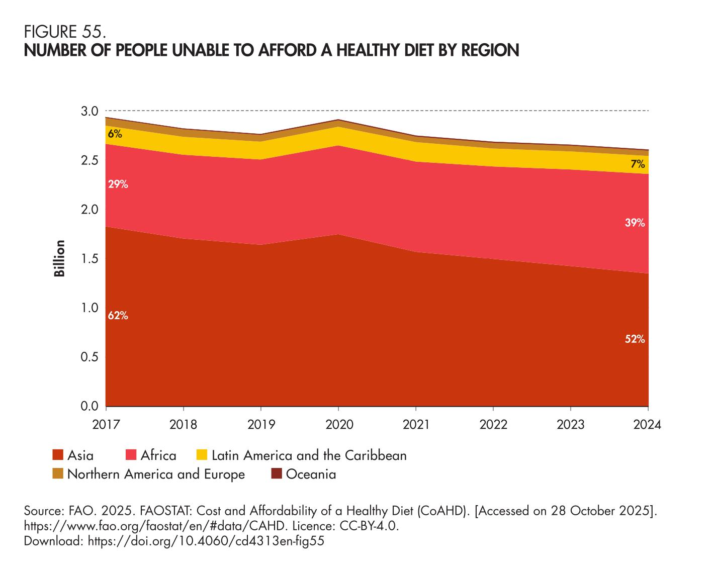 55. Number of people unable to afford a healthy diet by region