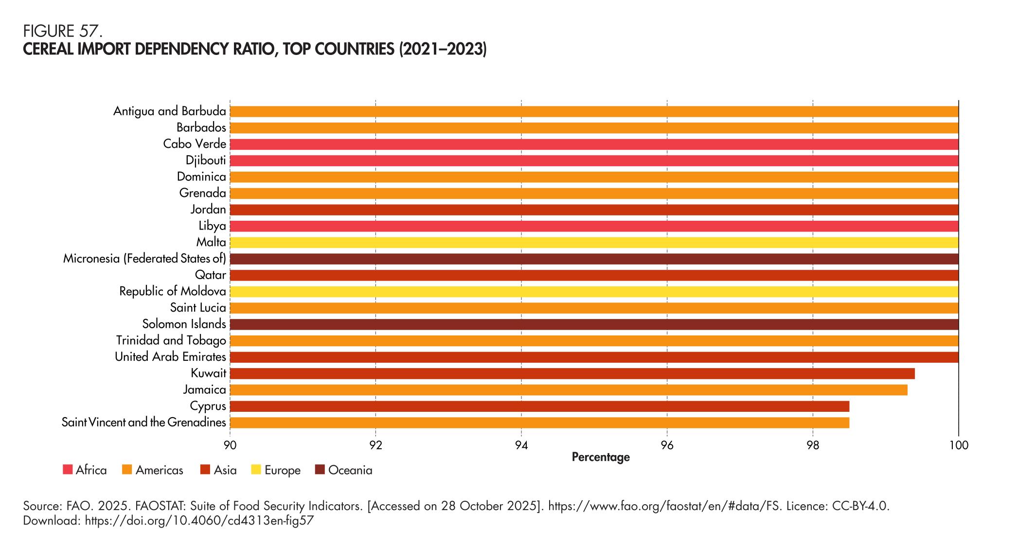 57. Cereal import dependency ratio, top countries (2021–2023)
