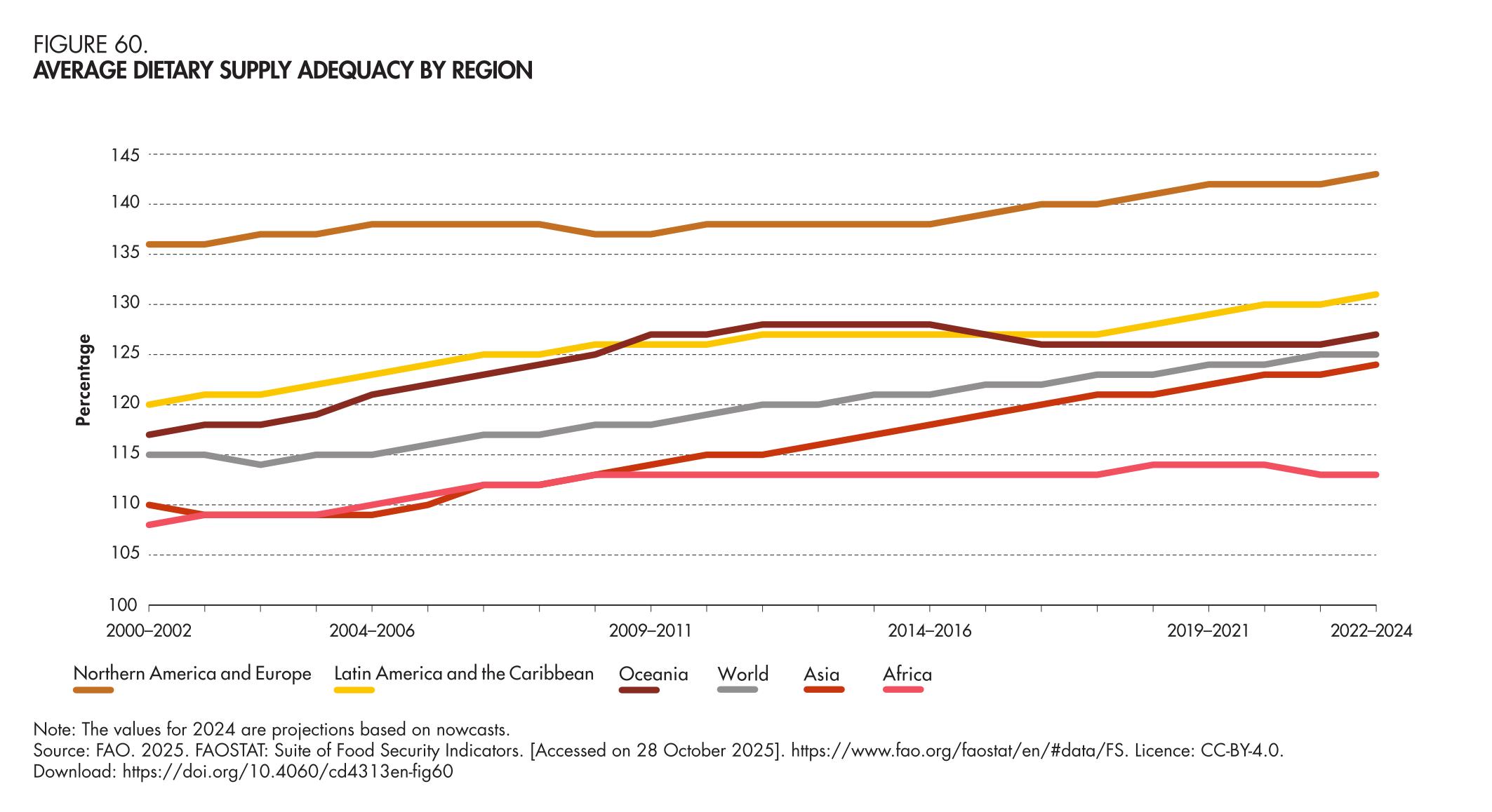60. Average dietary supply adequacy by region