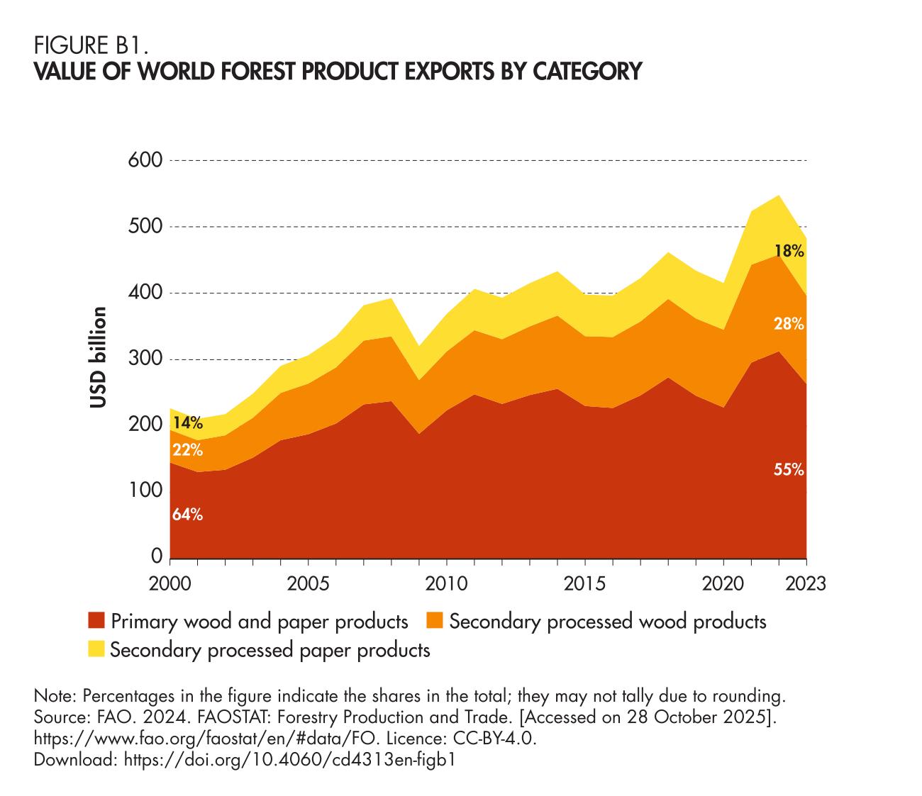 B1. Value of world forest product exports by category