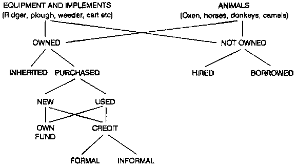 Figure 3 illustrates this point. It is clear that the cost structure facing a farmer and hence the monetary returns to AT depends on how he obtains his equipment and animals. The farmer who hires equipment and/or animals simply faces the variable cost of hiring. Another farmer who purchases his equipment and/or animals faces both fixed and variable costs.