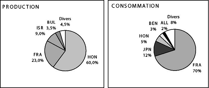 Le marché du foie gras d'oie est focalisé sur deux pays: la France et la Hongrie, qui à eux deux représentent plus des 3/4 de la production et de la consommation (voir figure 41). La demande du marché est une des raisons pour laquelle les oies sont mises en gavage à des âges très variés. En second lieu, le marché de la plume peut influencer l'âge de mise en gavage; il faut parfois retarder cette production pour pouvoir exploiter une plumée supplémentaire lorsque le marché de la plume est porteur. Après plumaison, il est nécessaire d'attendre trois semaines avant de débuter le gavage, de manière à pouvoir bénéficier de plumes matures lors de la procédure d'abattage.