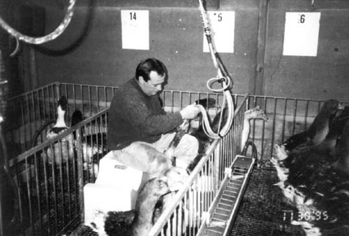 FIGURE 43. Une gaveuse électrique à vis sans fin. (Landes, France.)