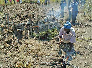 Production de charbon de bois tiré du mopane (Colophospermum mopane); dans la région de la SADC, la demande de combustible ligneux, y compris le charbon de bois, est l’une des principales causes du déboisement |