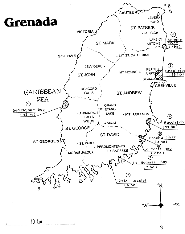 Grenada and Carriacou show large potentialities for the development of seamoss culture. The main favourable areas are :