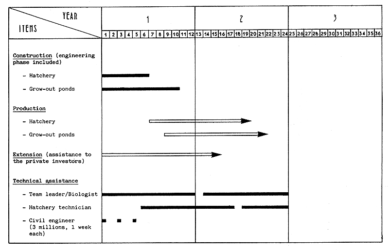 The consultants team wants to point out the necessity of one hatchery even at an initial stage of development. As a matter of fact, experience has shown in French Guyana, Martinique and Guadeloupe that an operational hatchery (reliable local production of juveniles) is a psychological prerequisite for the investors to invest in grow-out ponds.