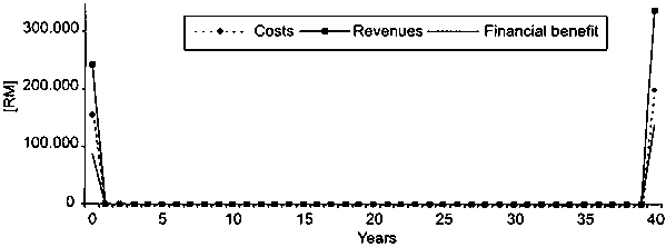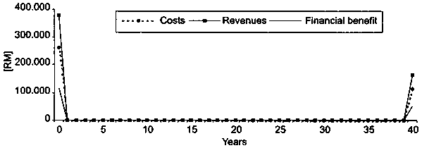 Note: The IRR cannot be calculated, because the aggregated flow of costs and revenues is never negative over the whole calculation period.