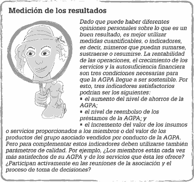 El objetivo principal de la mayor parte de las AGPA es prestar servicios de alta calidad a sus grupos asociados. Sin embargo, para hacerlo bien la asociación necesita seguir constantemente los resultados obtenidos a fin de establecer si sus miembros están satisfechos o no de la calidad de los servicios proporcionados y, en caso de que no lo estén, de determinar qué servicios podrían mejorarse. Necesita saber además cuánto gasta para prestar los servicios y si genera unos ingresos suficientes para cubrir sus gastos*.