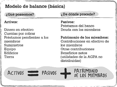 La información sobre lo que la AGPA posee, lo que debe y lo que vale para los miembros en un determinado momento se registra en un balance. Al igual que en una balanza, en la hoja se anotan, de un lado, el dinero que se ha destinado a las actividades económicas de la AGPA y, del otro, las modalidades de utilización de ese dinero.