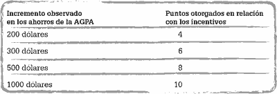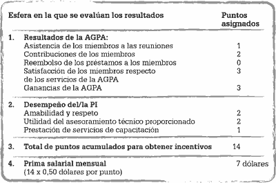 Suponga que la AGPA registre un incremento de 300 dólares en sus ahorros o fondos de superávit y que sus grupos asociados reembolsen todos sus préstamos a su debido tiempo, con lo cual la morosidad del grupo asociado equivale a cero. Suponga además que se haya decidido que cada punto relacionado con los incentivos valdrá 1dólar.