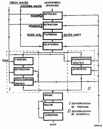 This use was also occuring in the United States. However, it was not until world war II that an industrial extract was produced in this country. At the beginning, only the “lichen”, a blend of Cnonarus crispus and Gigartina stenata was used. Lately the industry has been utilizing other red seaweeds sources.