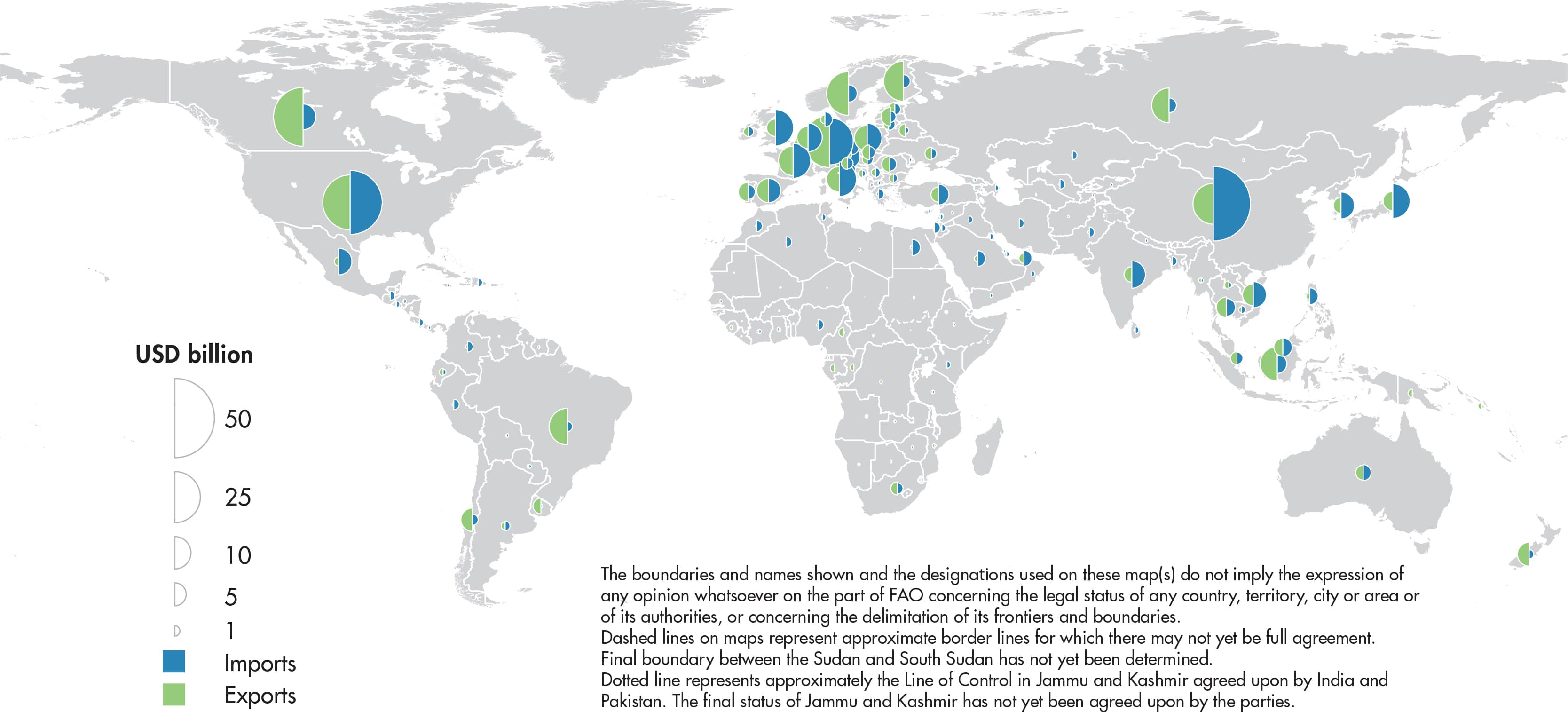 Export values are reported as FOB (free on board: the value of the goods plus the value of the services performed to deliver the goods to the border of the exporting country).