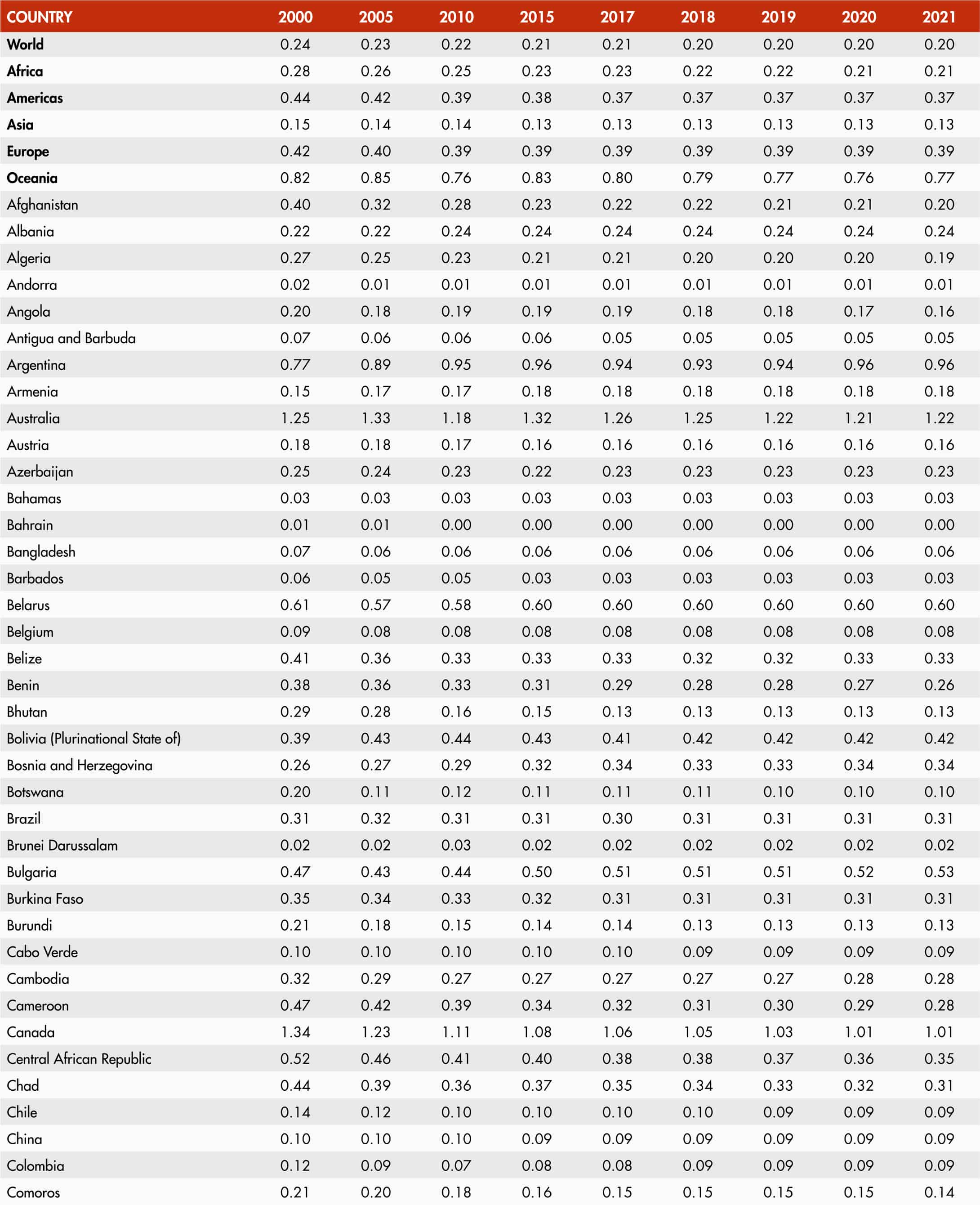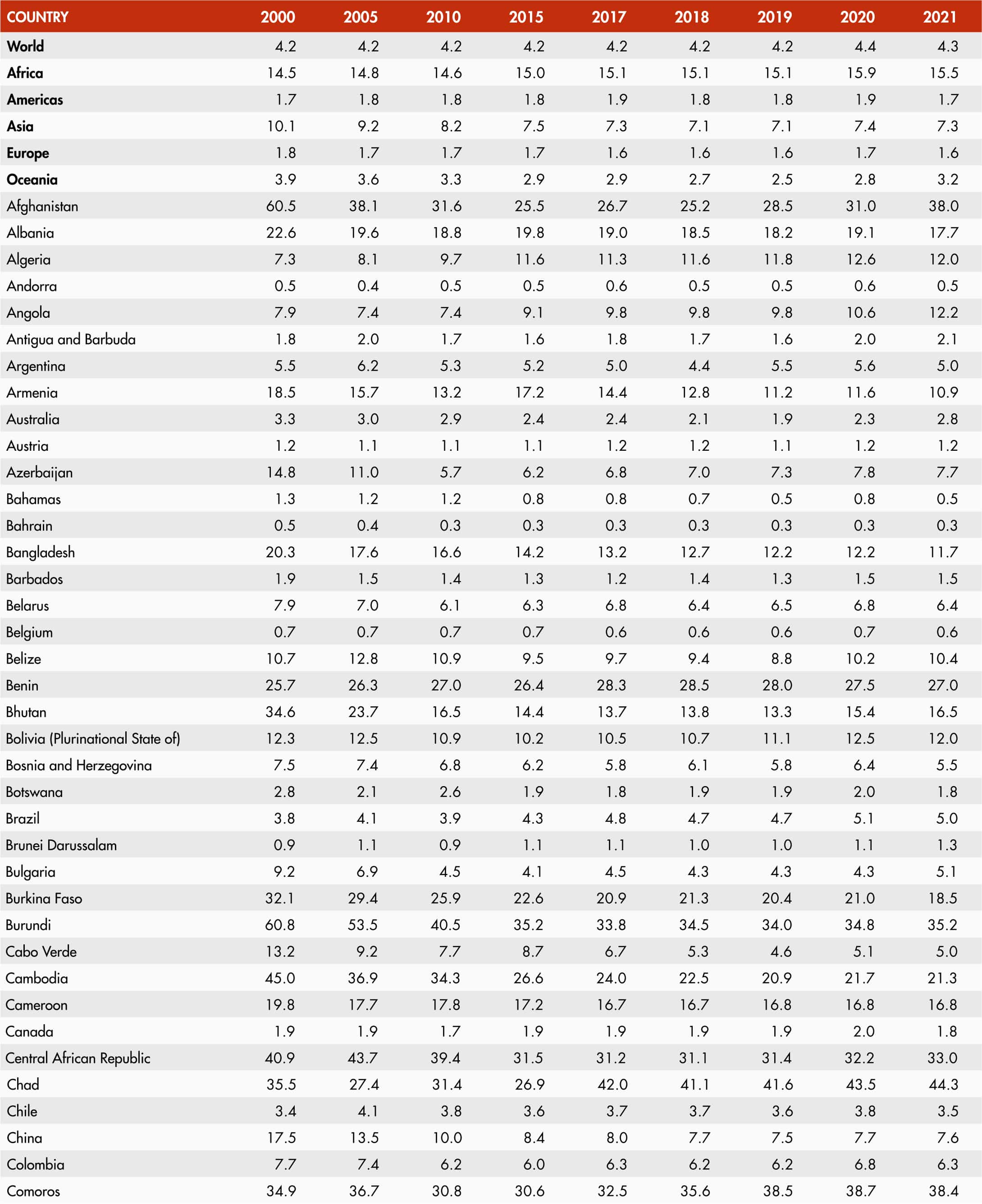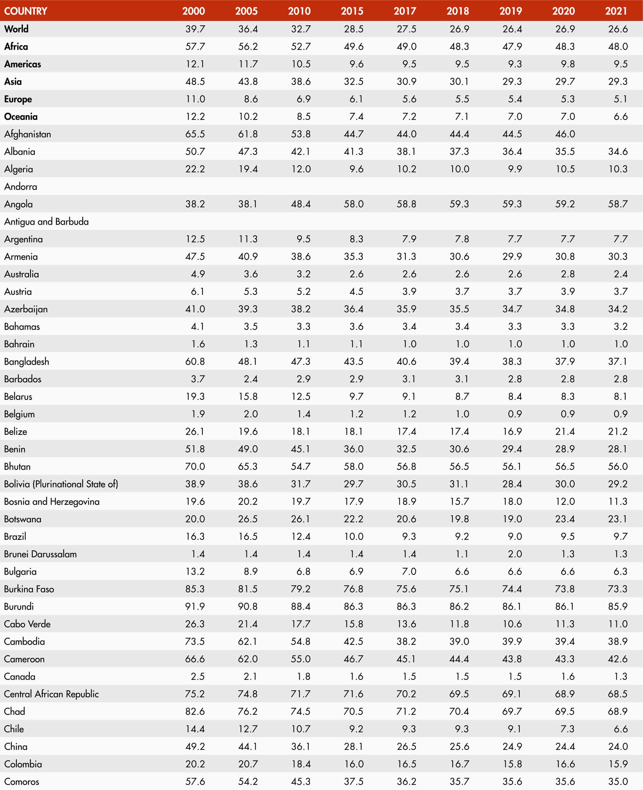 • When country data have not been reported for the reference year, an asterisk (*) on the year label indicates that the value for the most recent year available is shown. For example, 2019–2021* means that the most recent value for the period from 2019 to 2021 is shown.