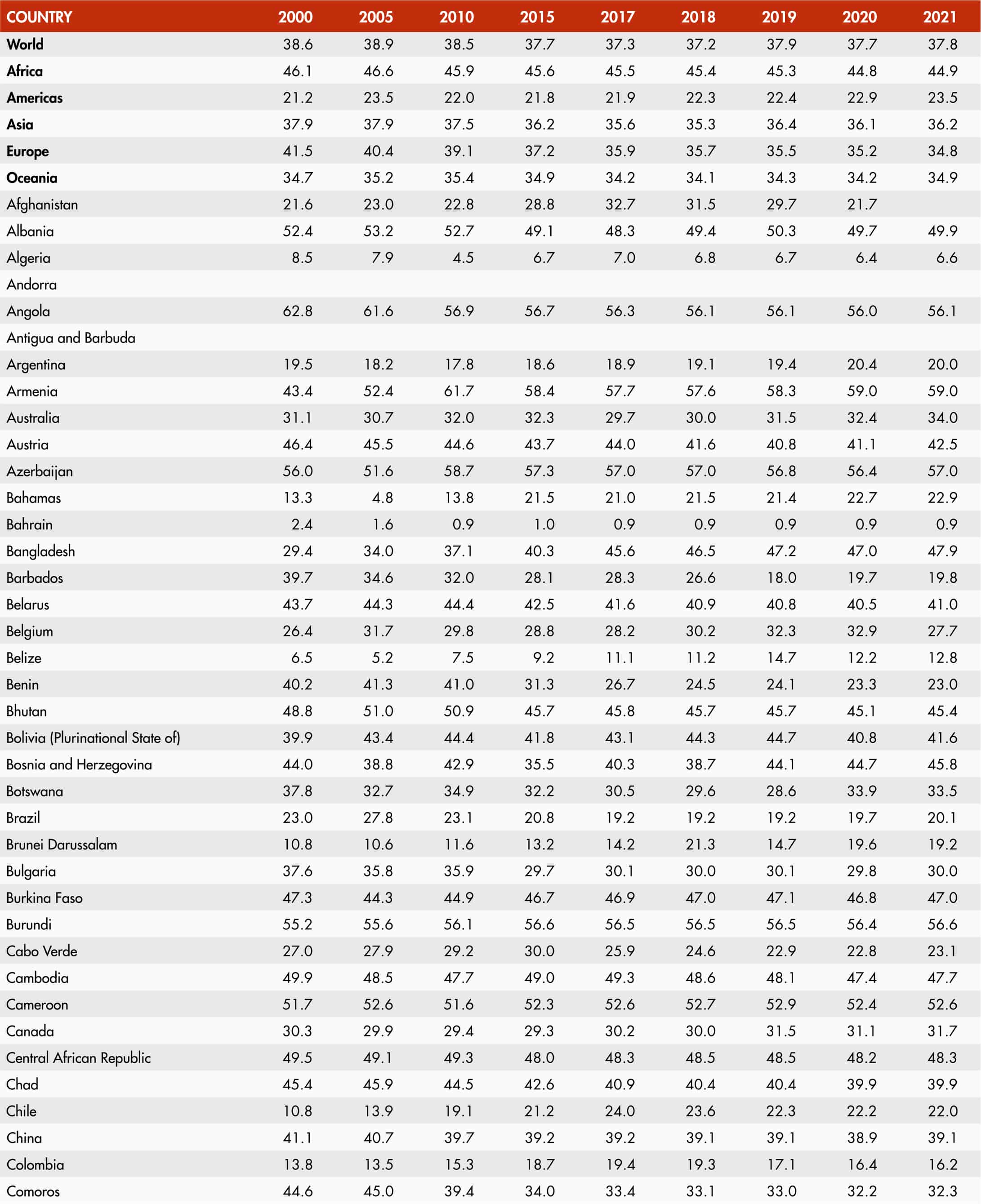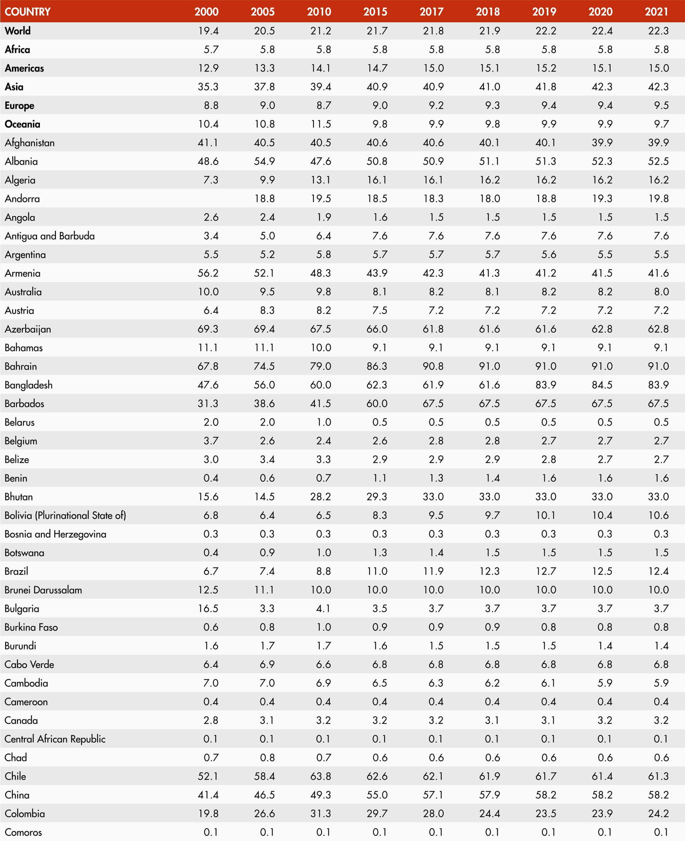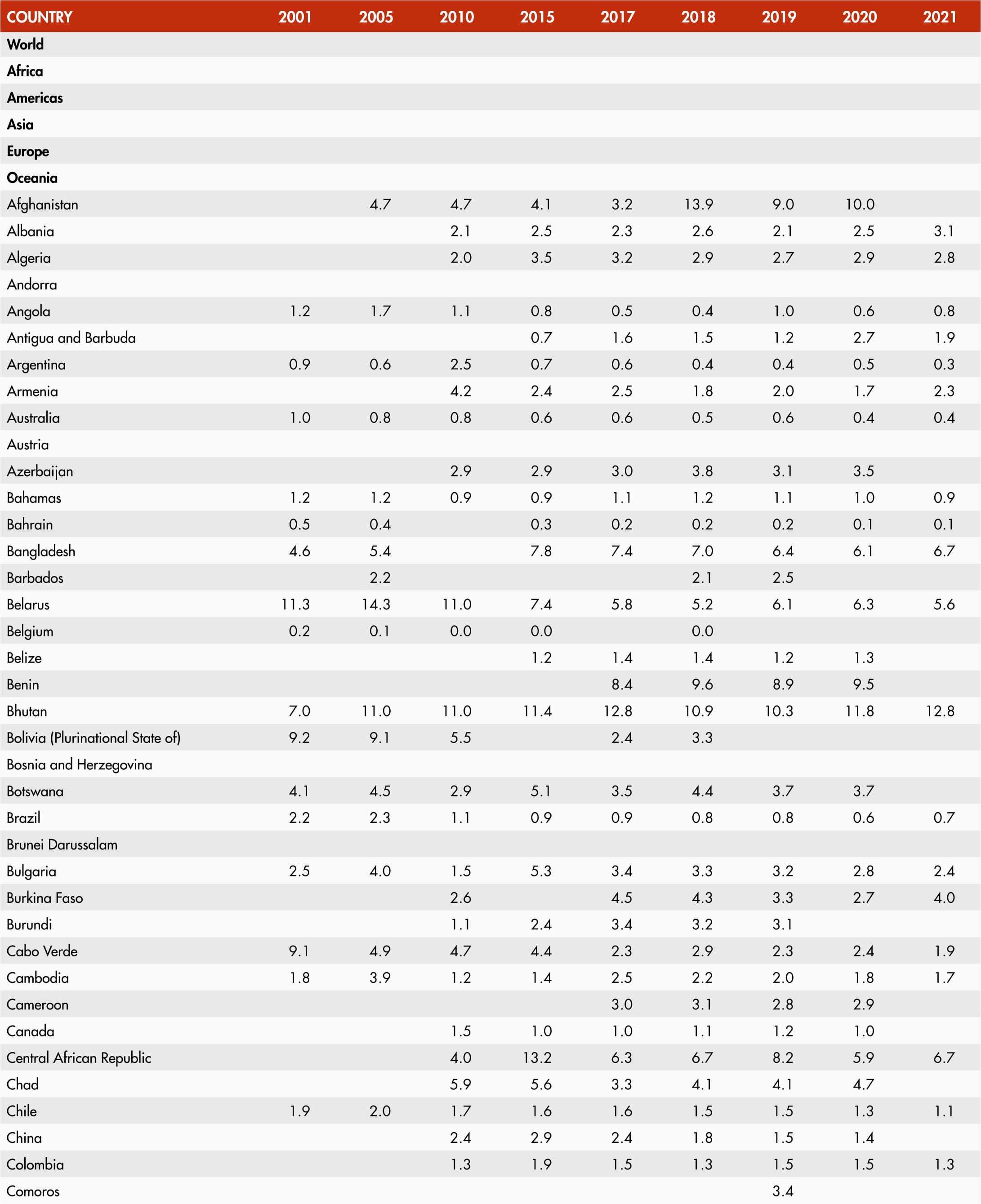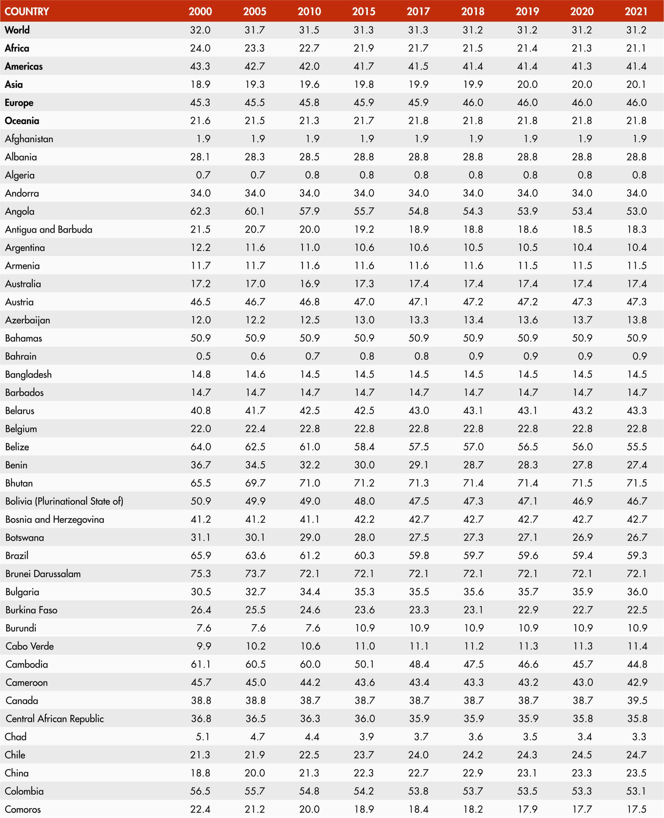 • When country data have not been reported for the reference year, an asterisk (*) on the year label indicates that the value for the most recent year available is shown. For example, 2019–2021* means that the most recent value for the period from 2019 to 2021 is shown.