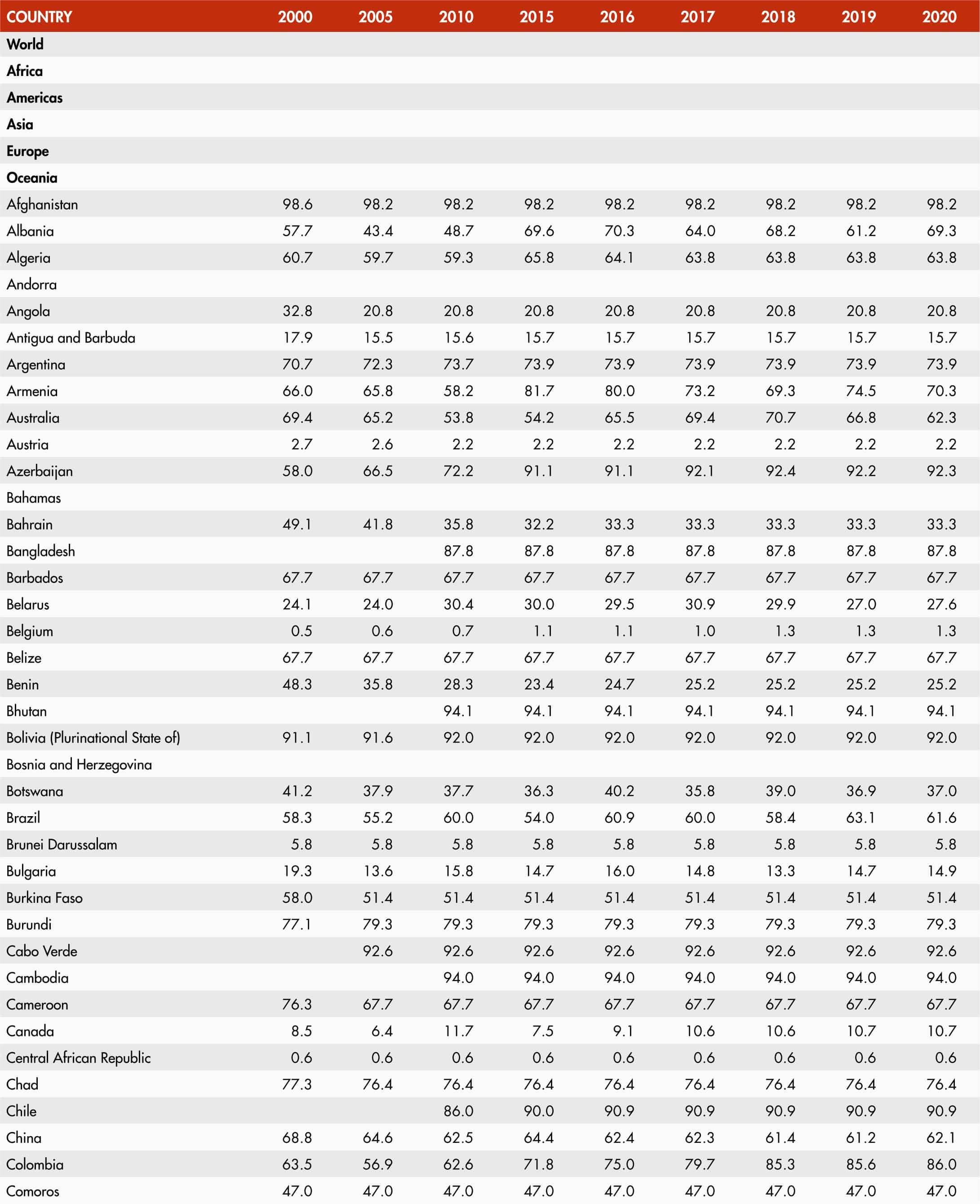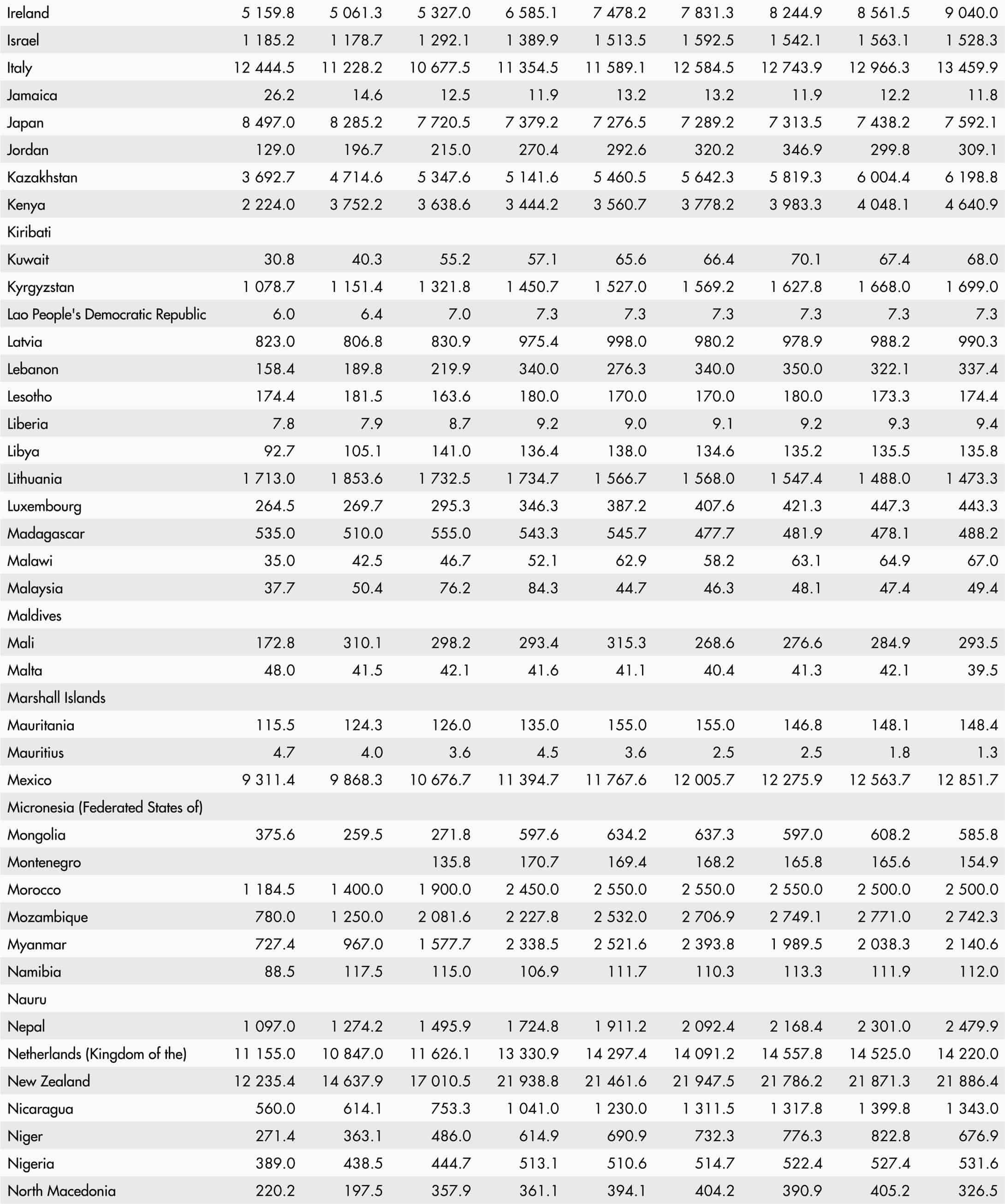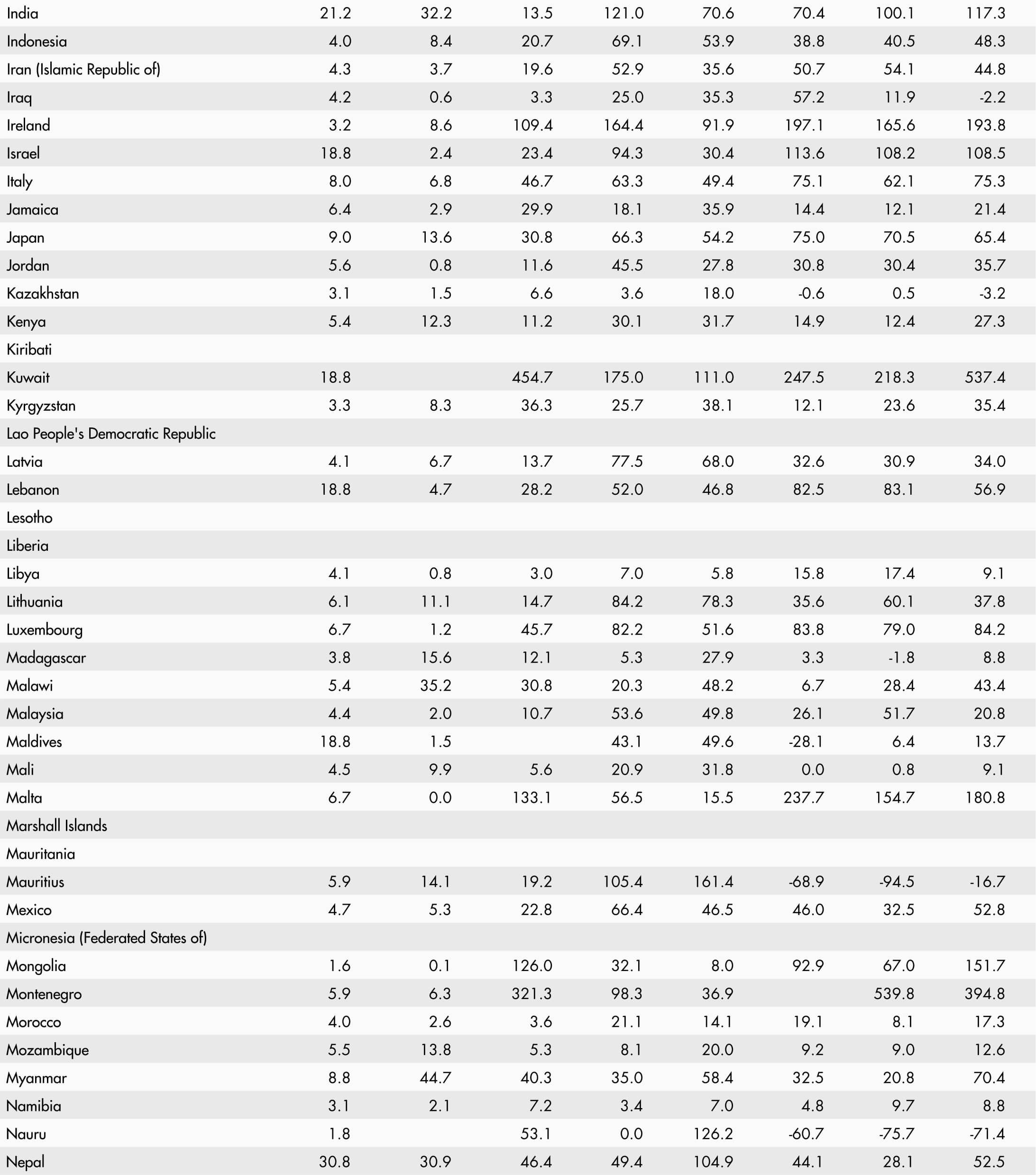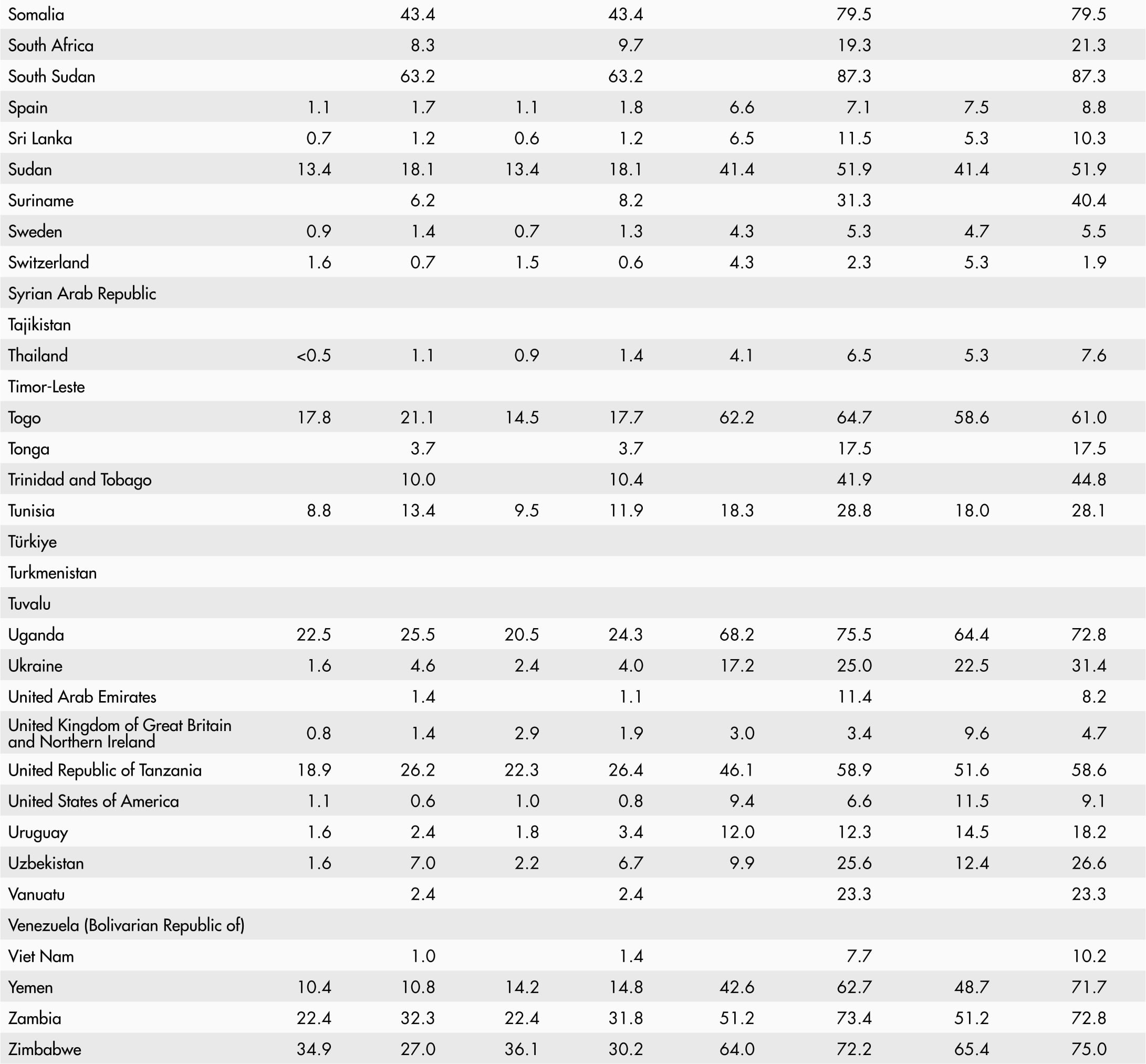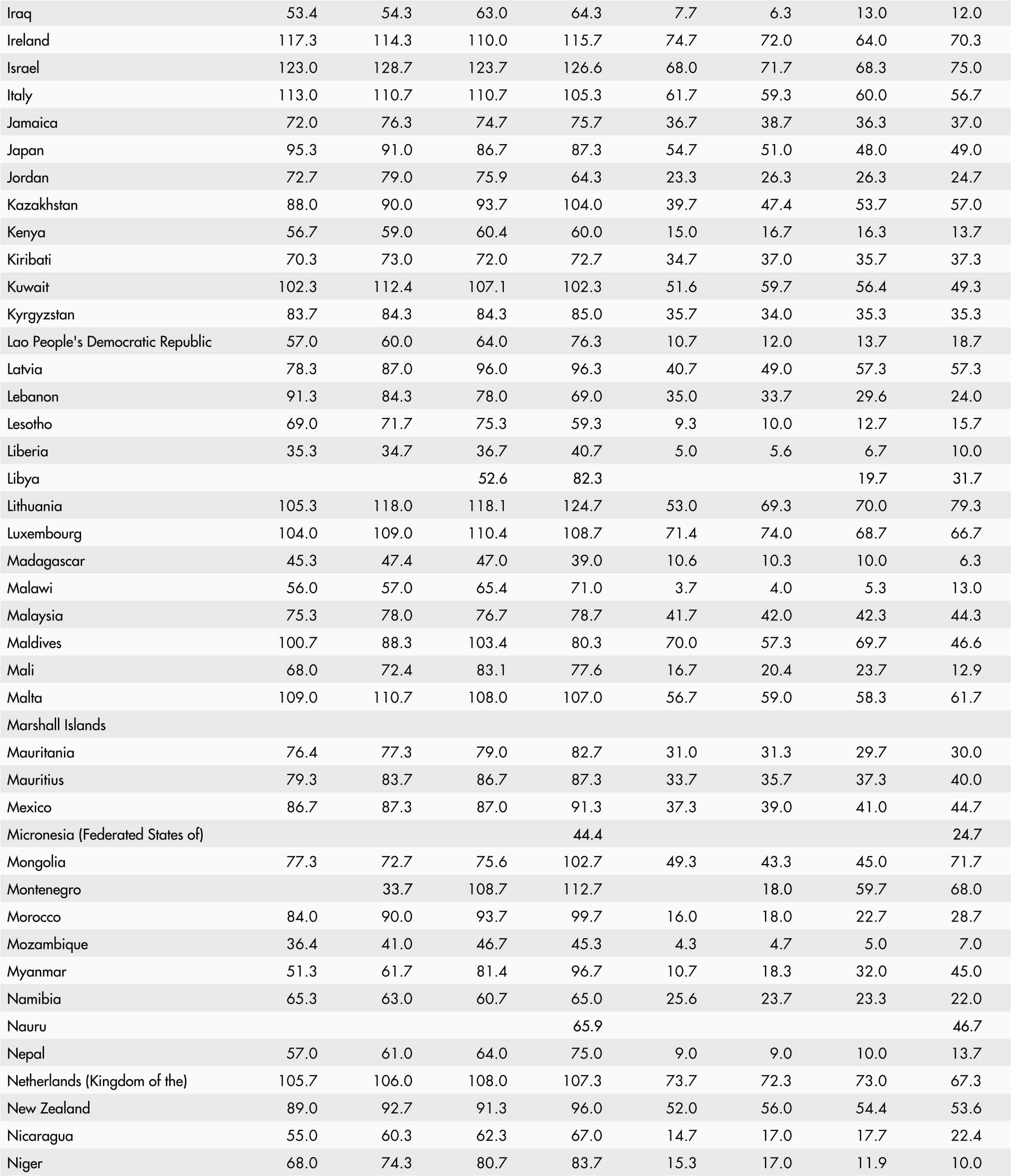 • A blank means that data are not available or that aggregates cannot be calculated because of missing data for the years shown.