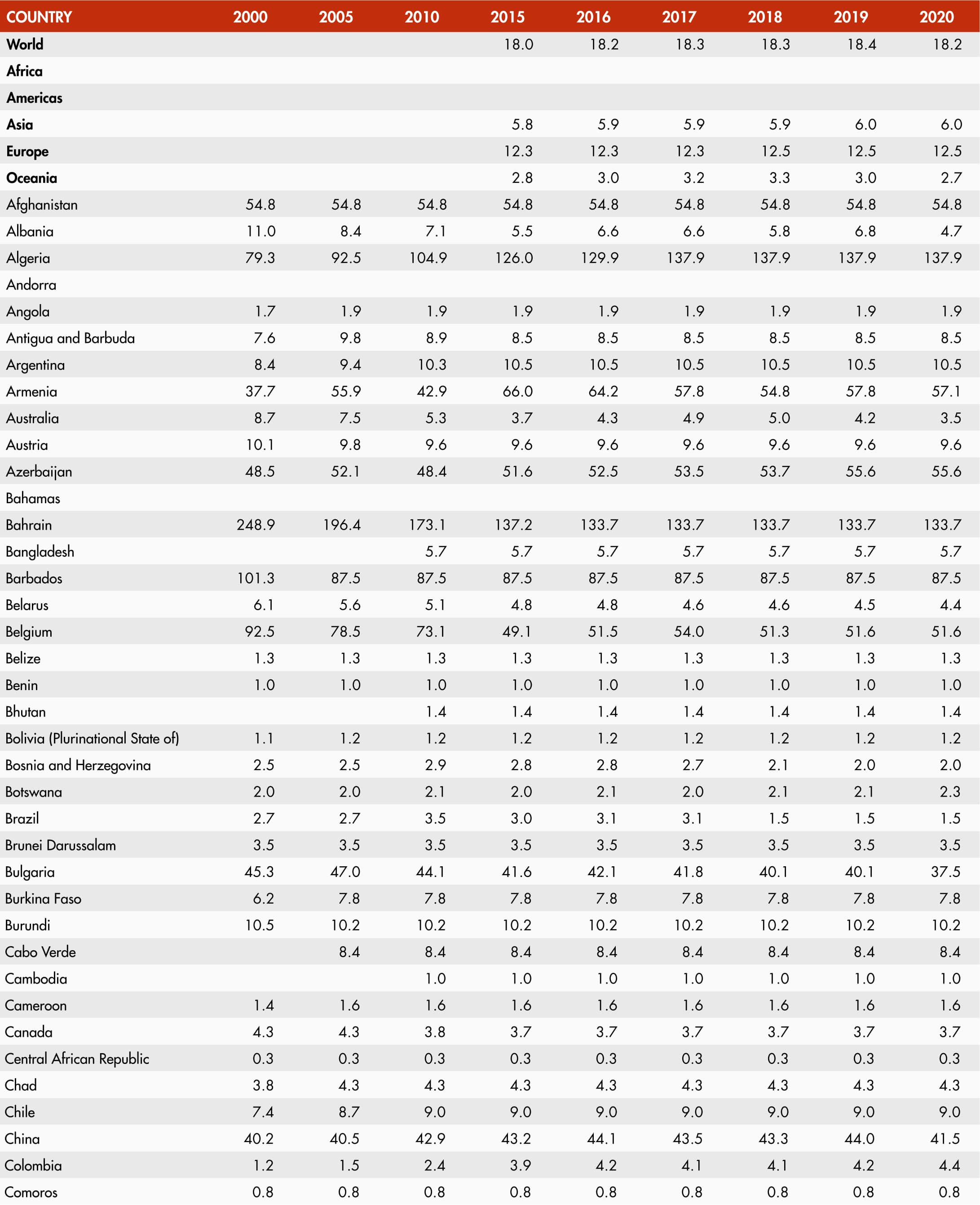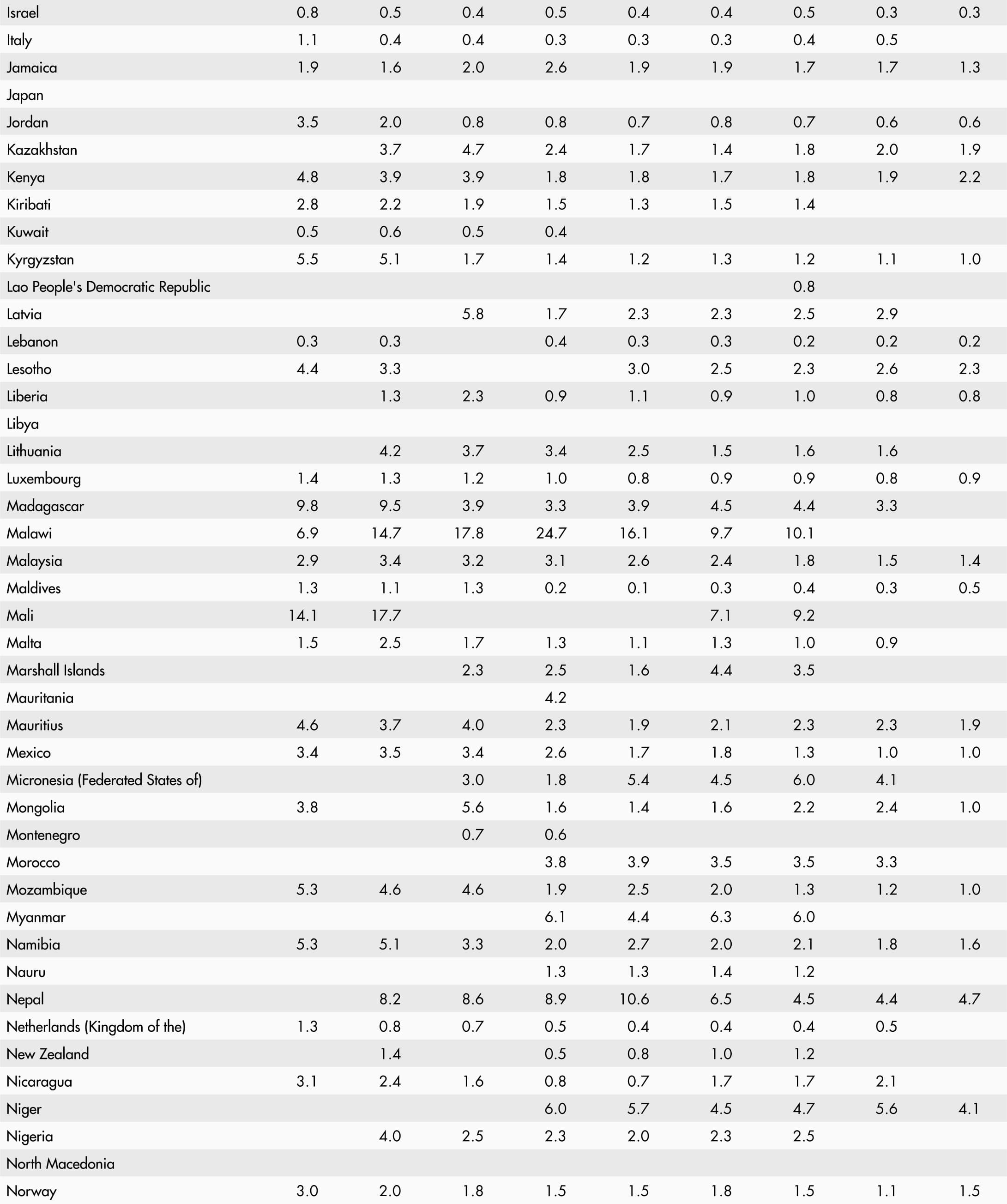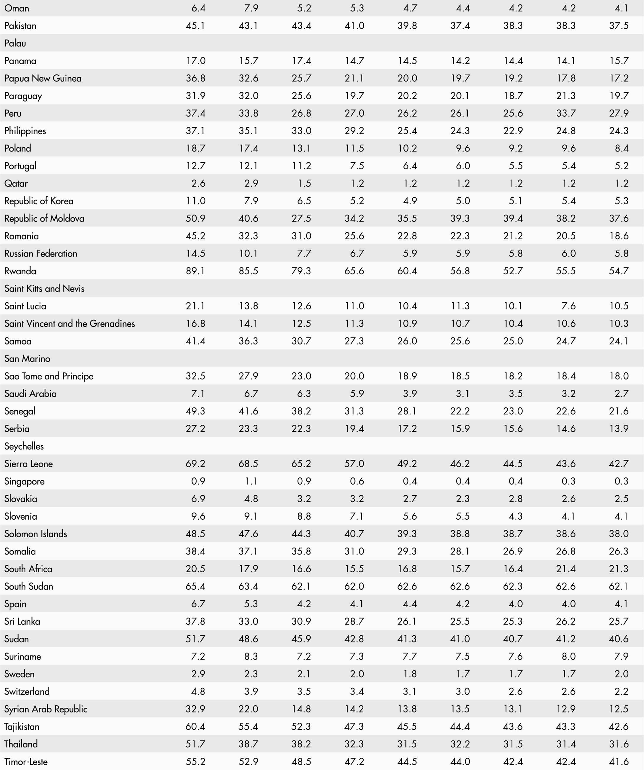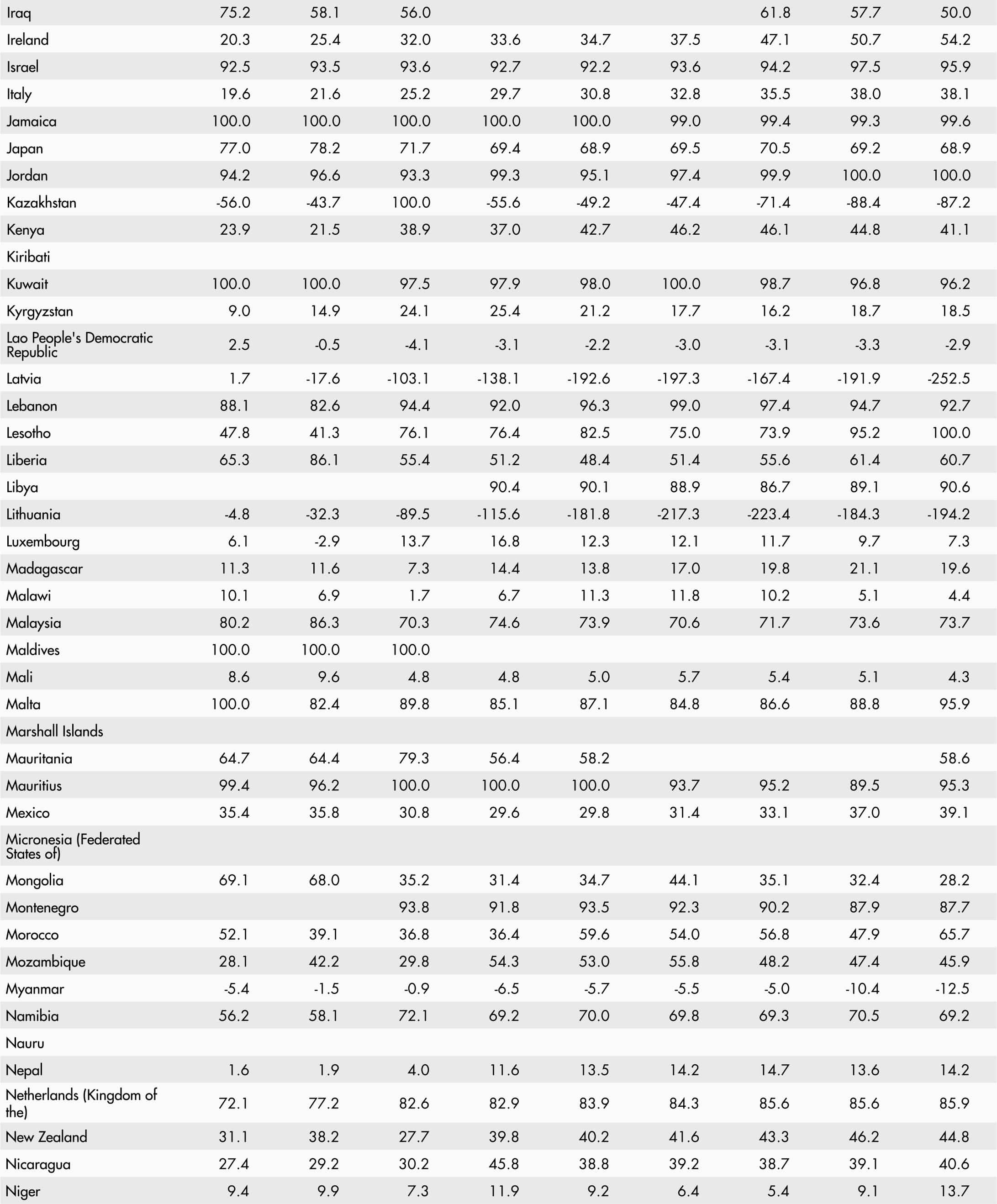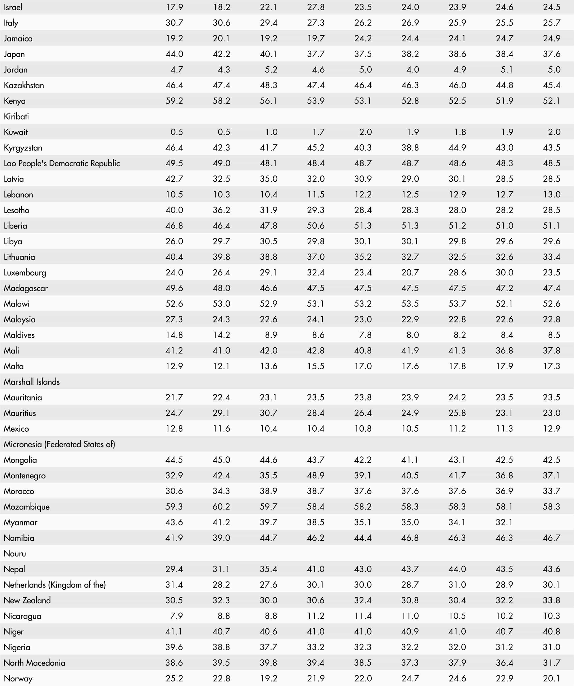• A blank means that data are not available or that aggregates cannot be calculated because of missing data for the years shown.