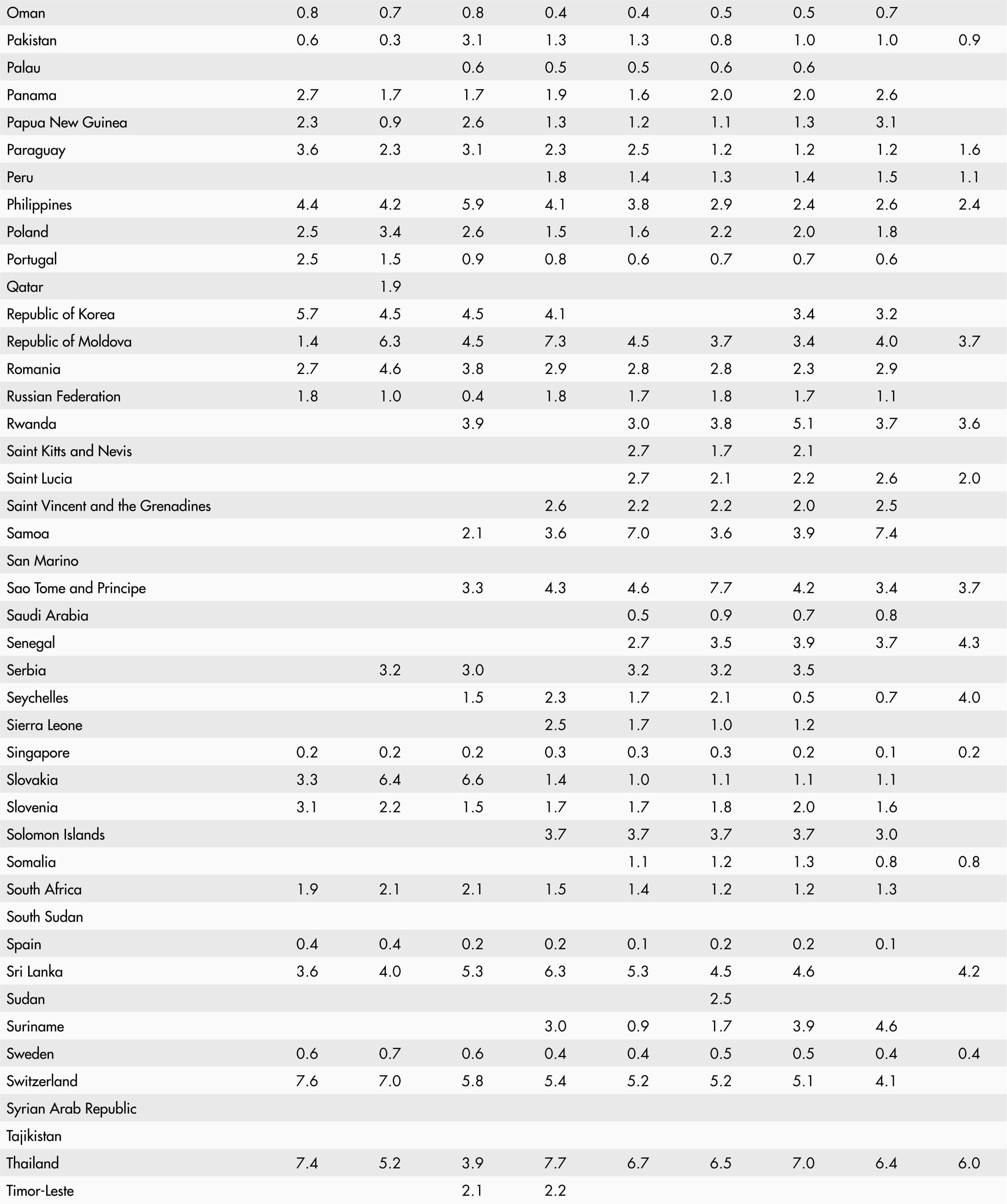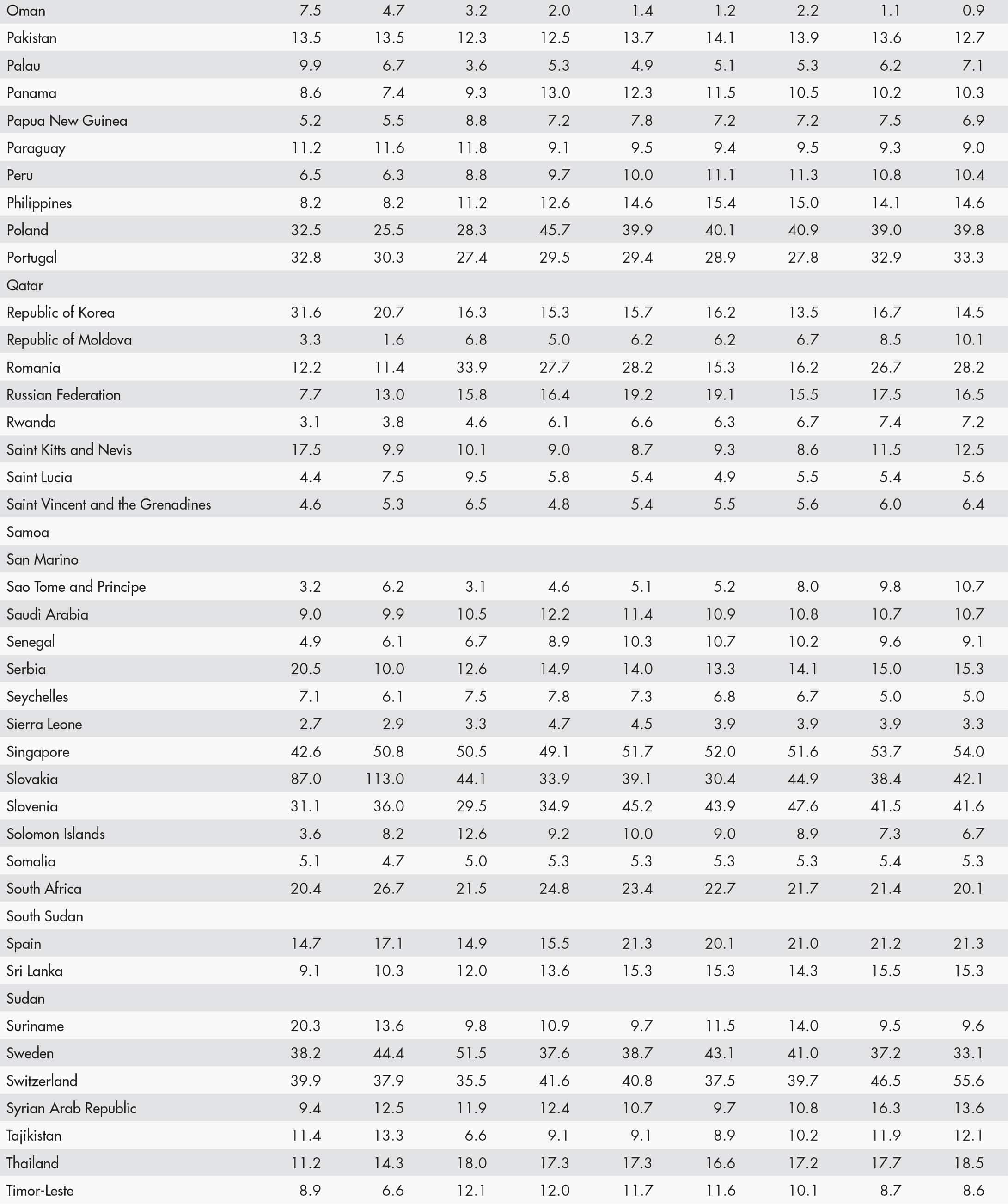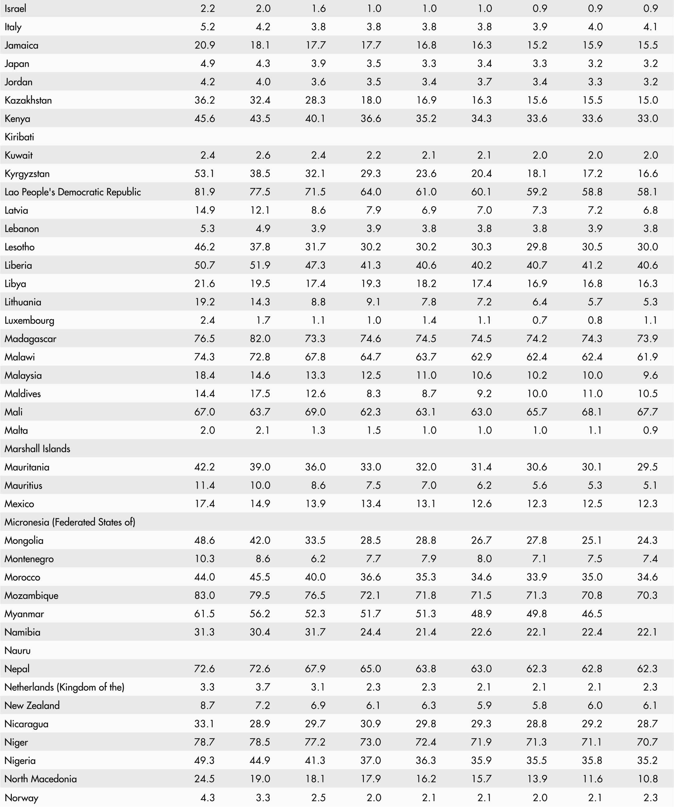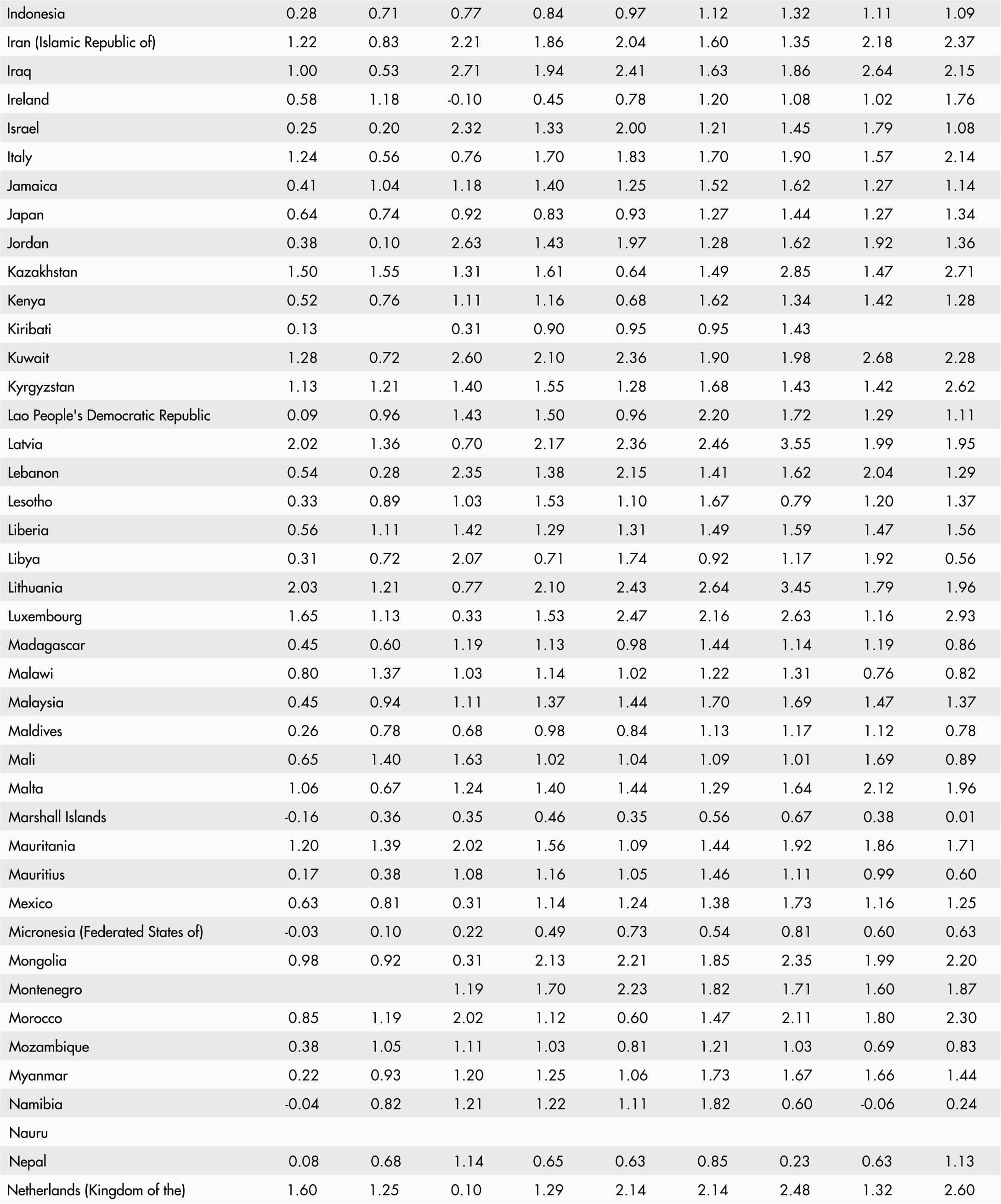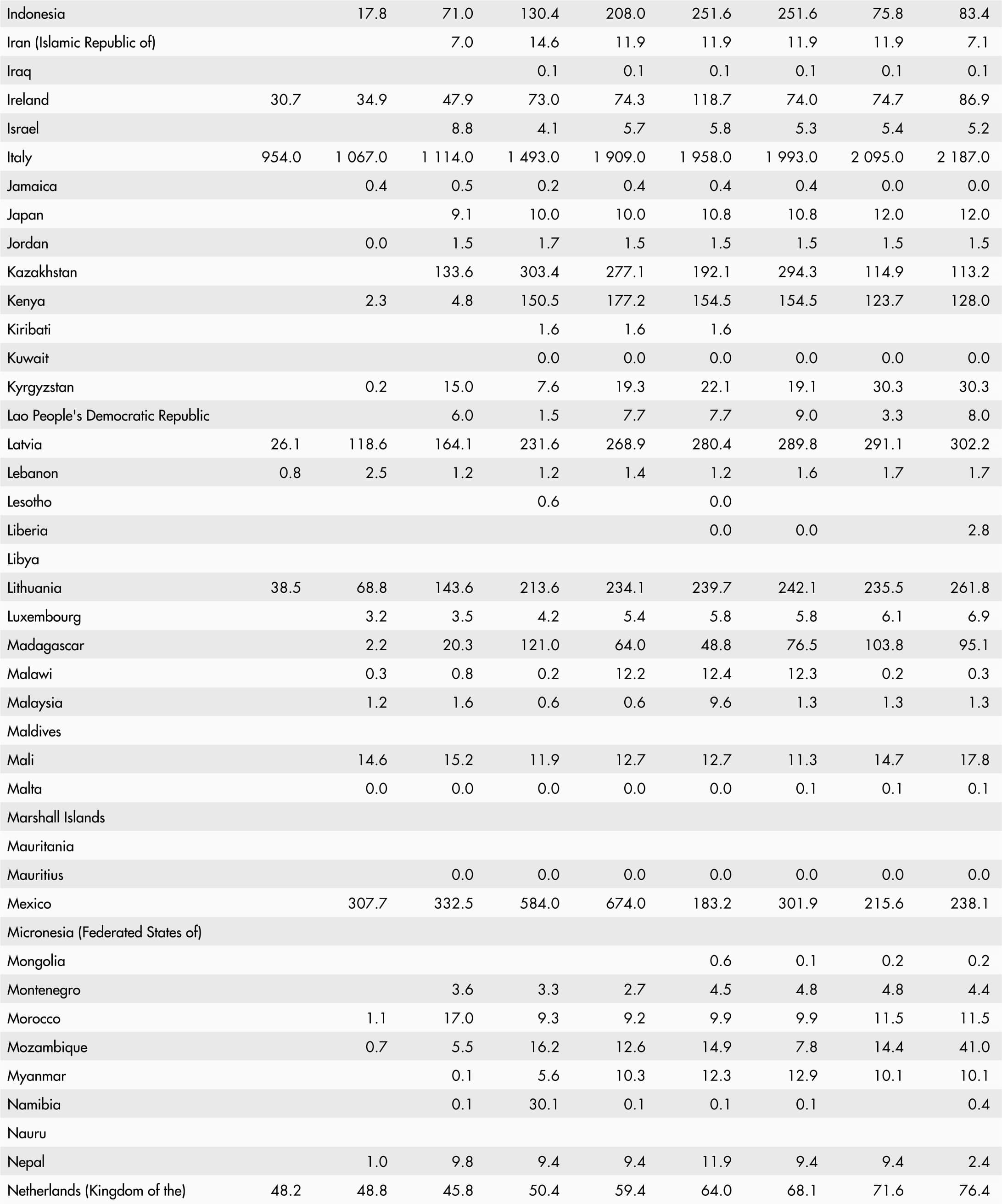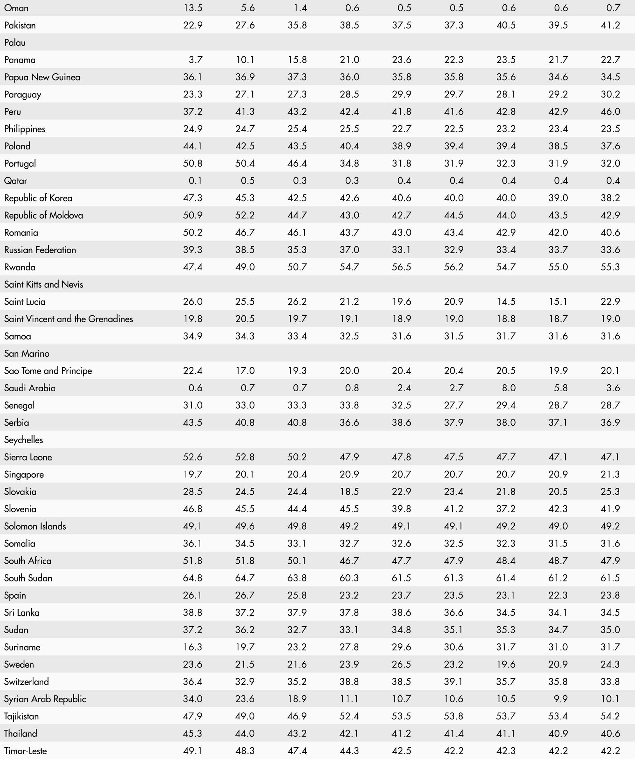 • A blank means that data are not available or that aggregates cannot be calculated because of missing data for the years shown.
