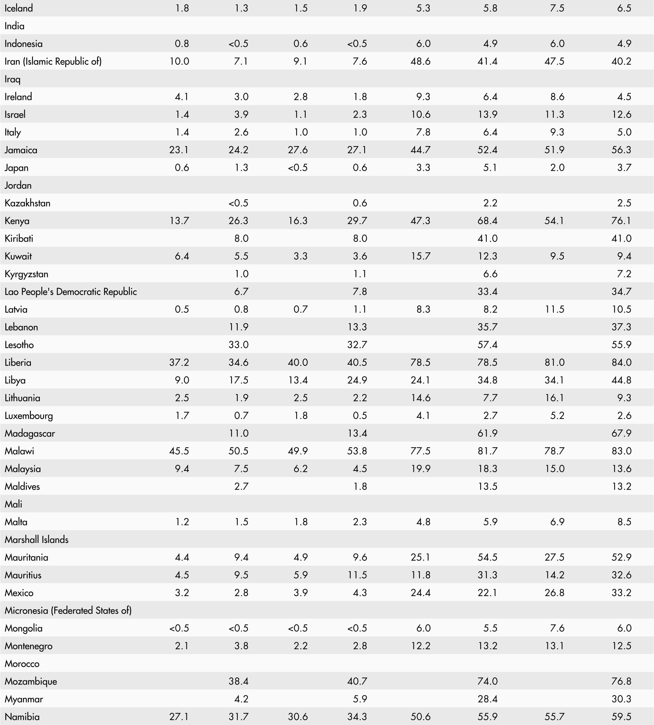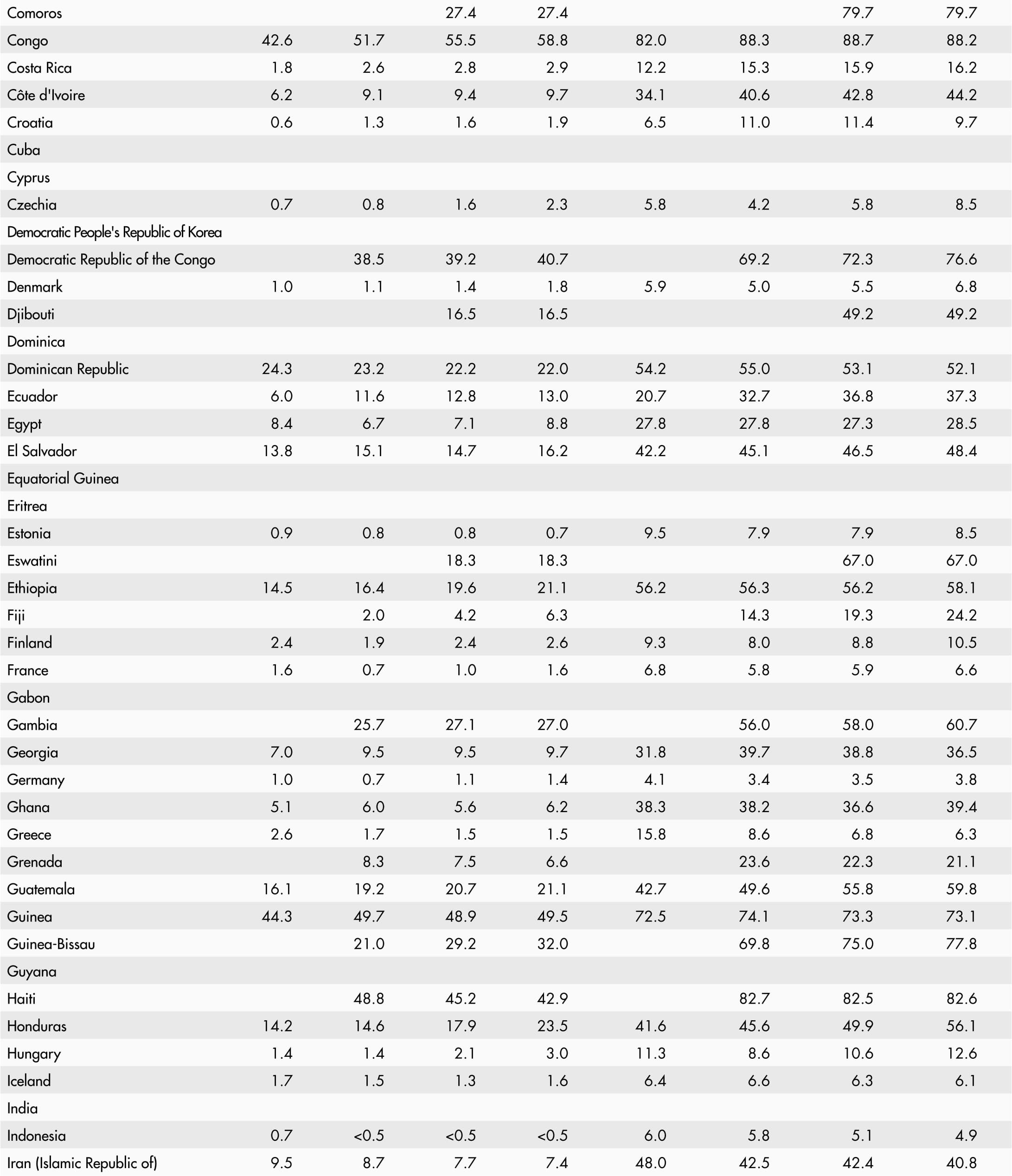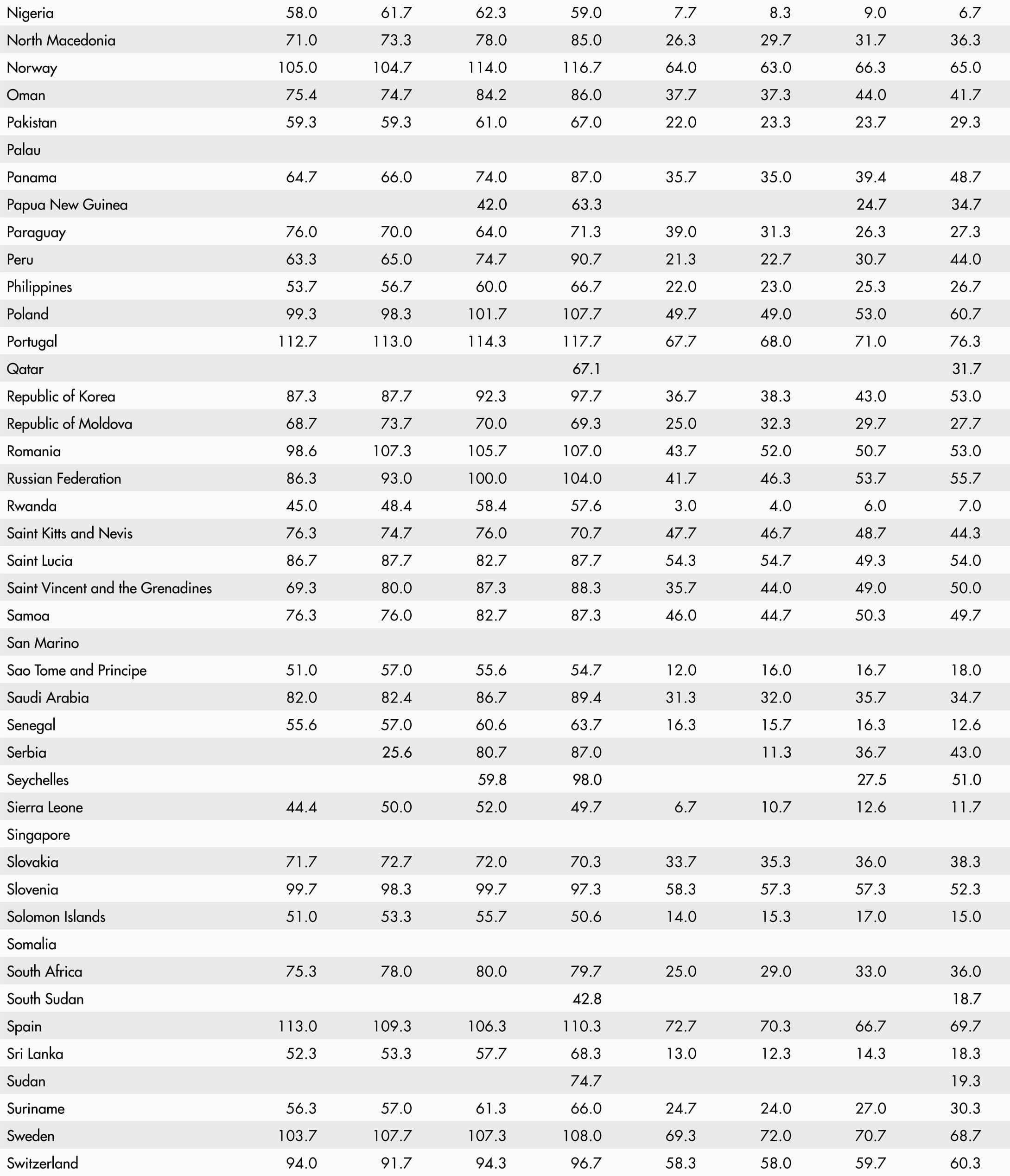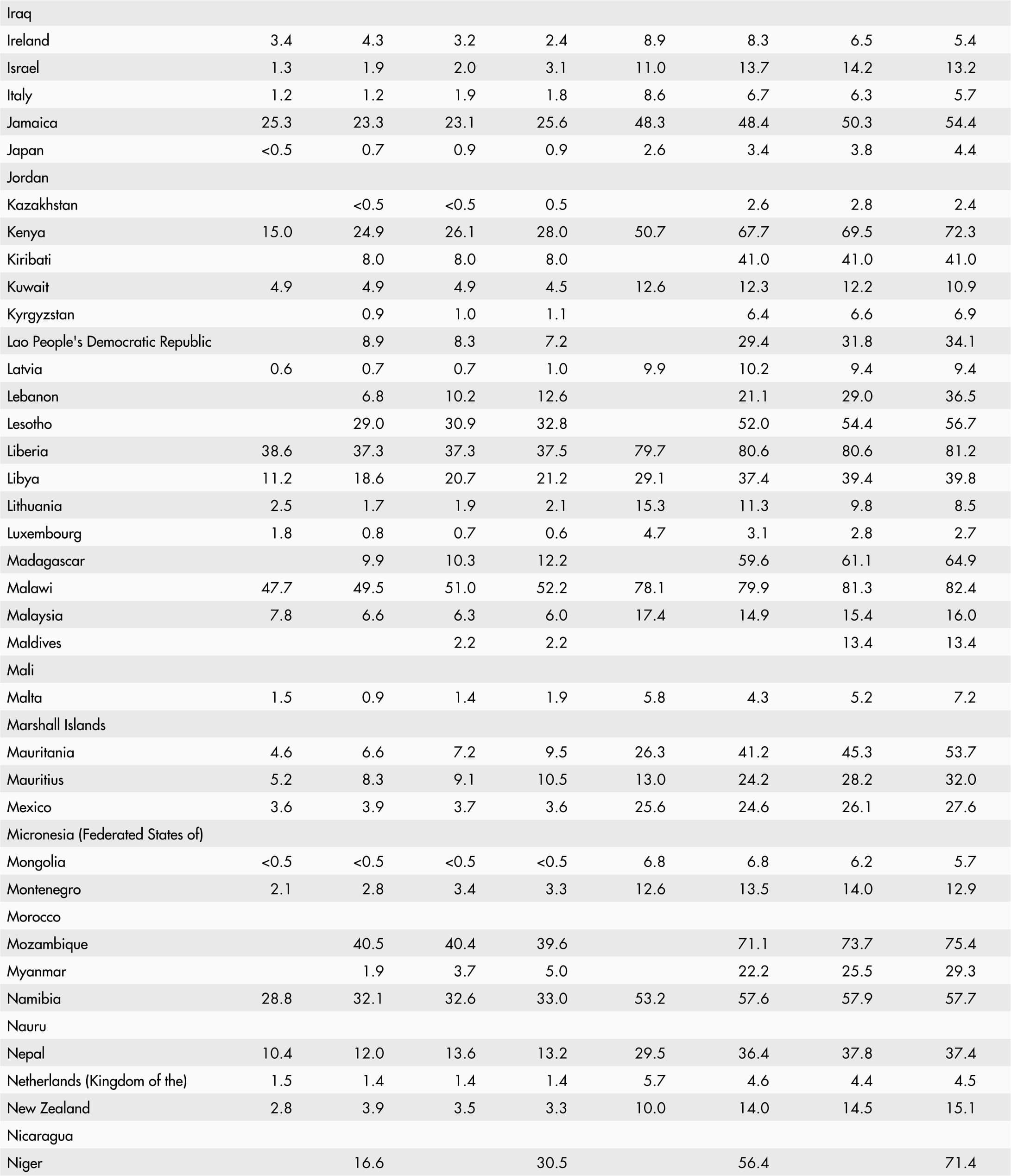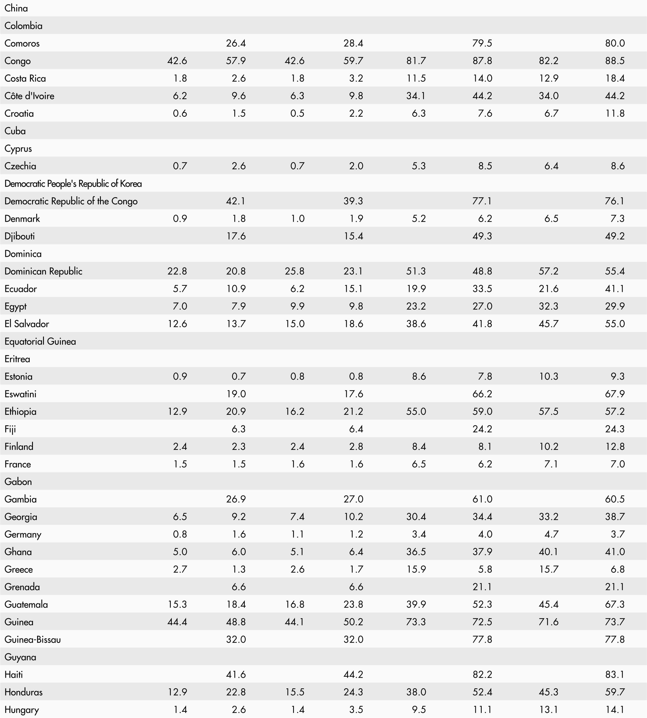• A blank means that data are not available or that aggregates cannot be calculated because of missing data for the years shown.