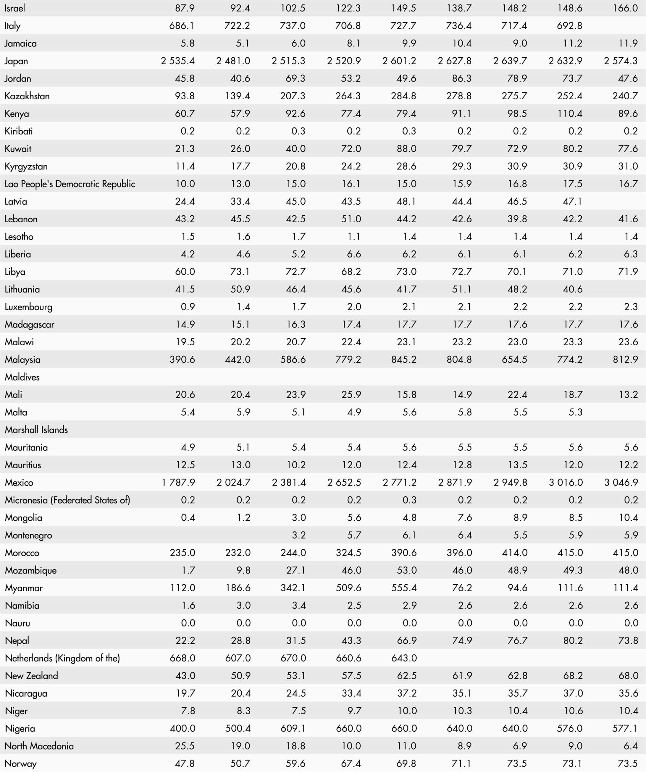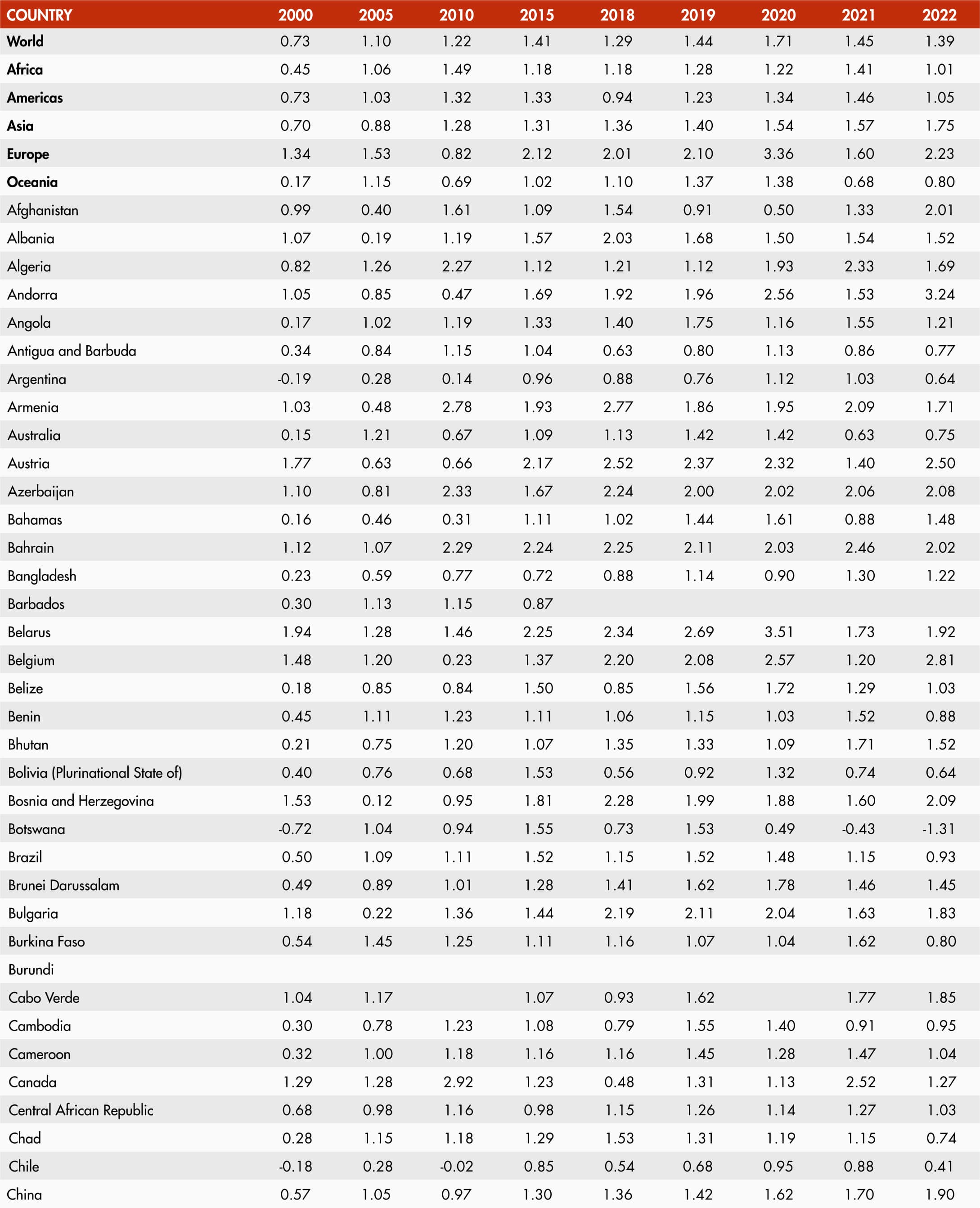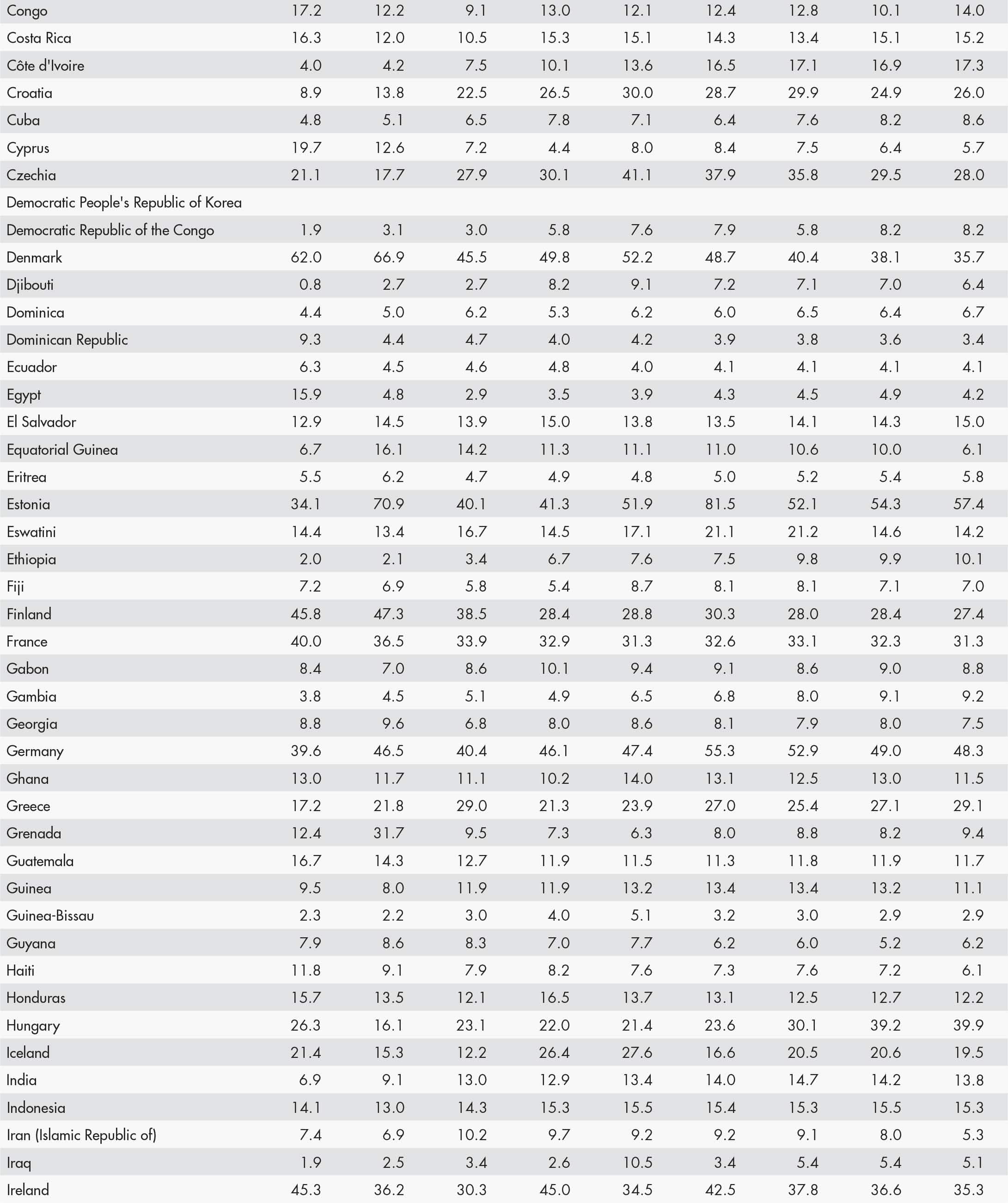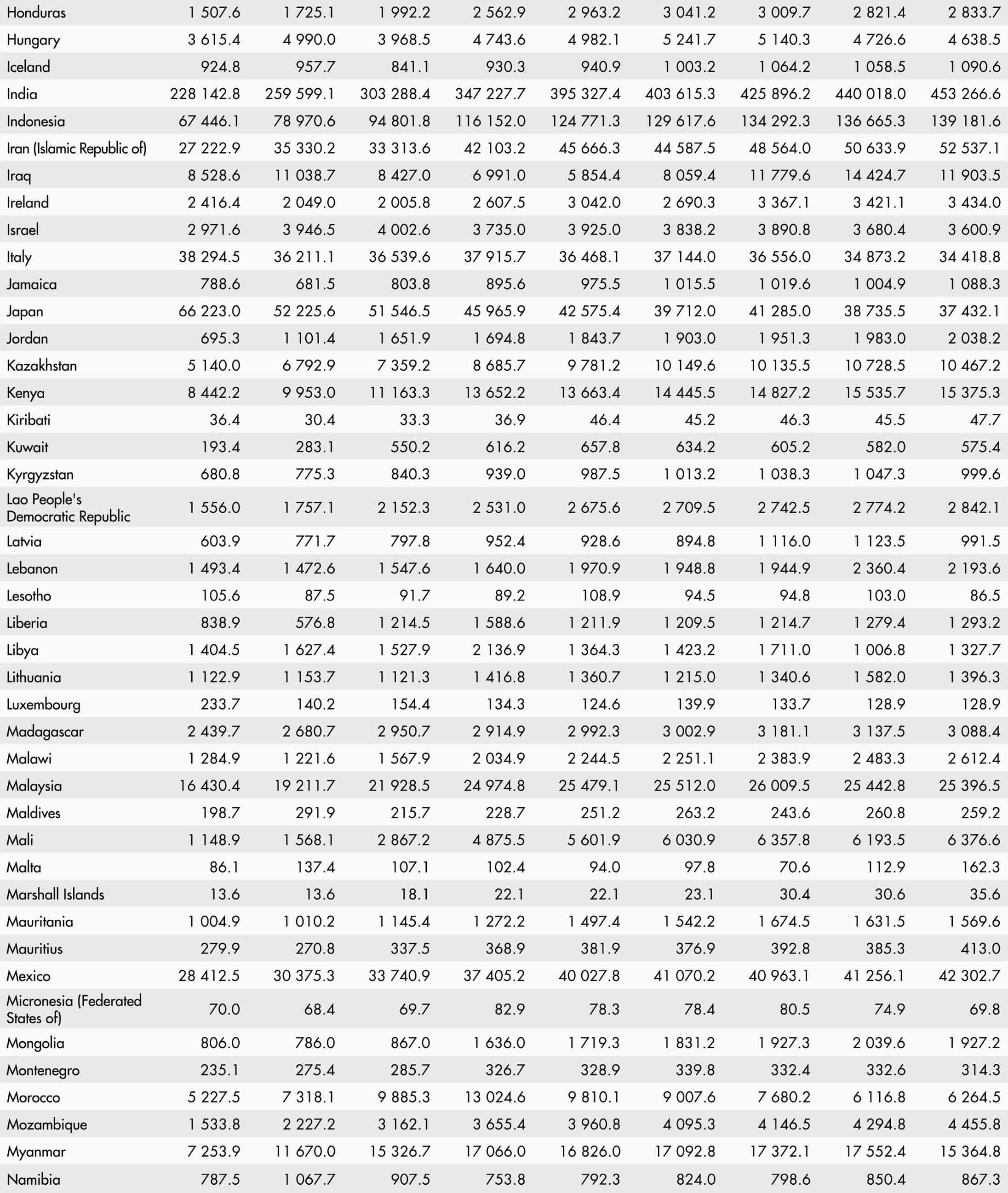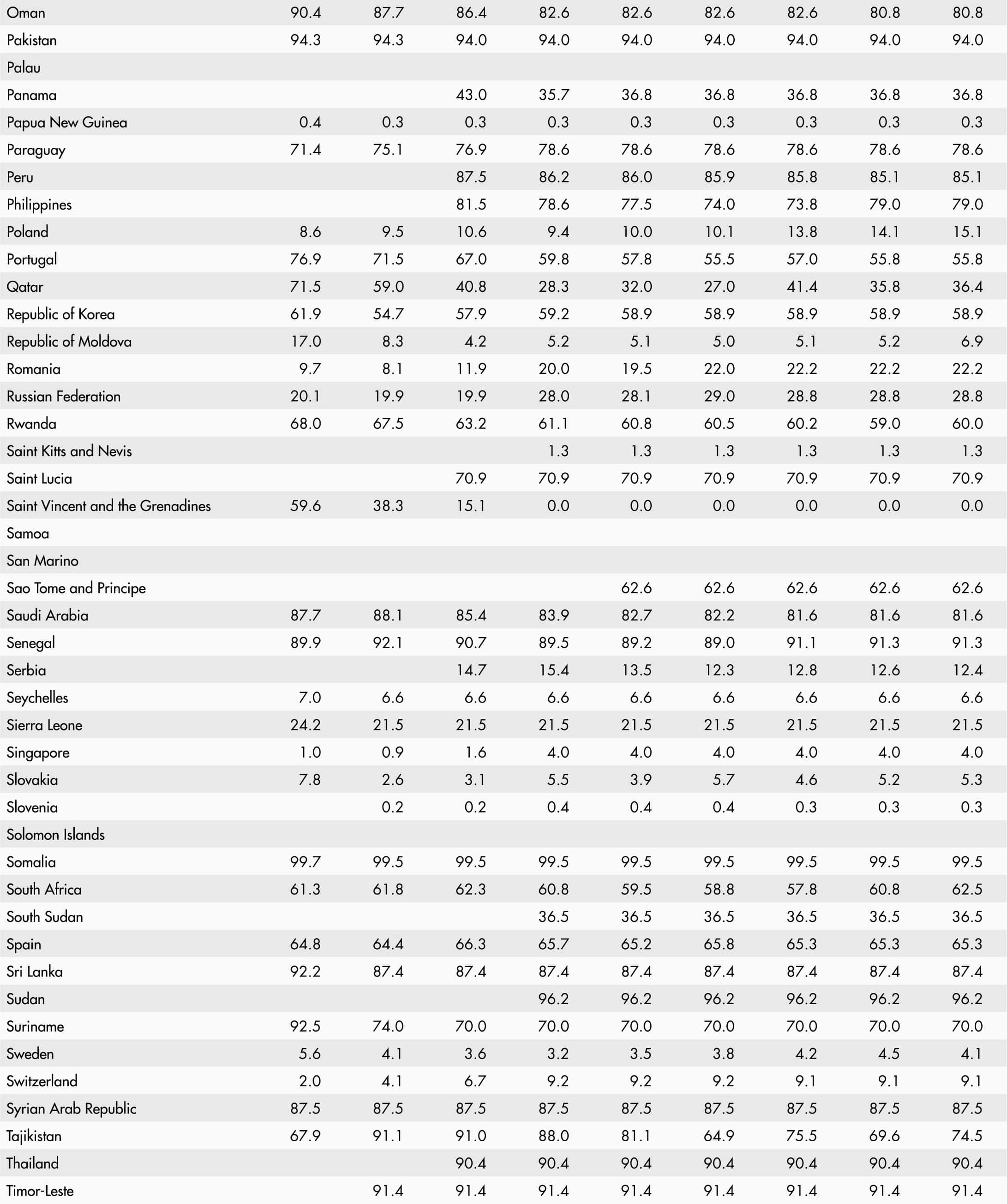 • A blank means that data are not available or that aggregates cannot be calculated because of missing data for the years shown.