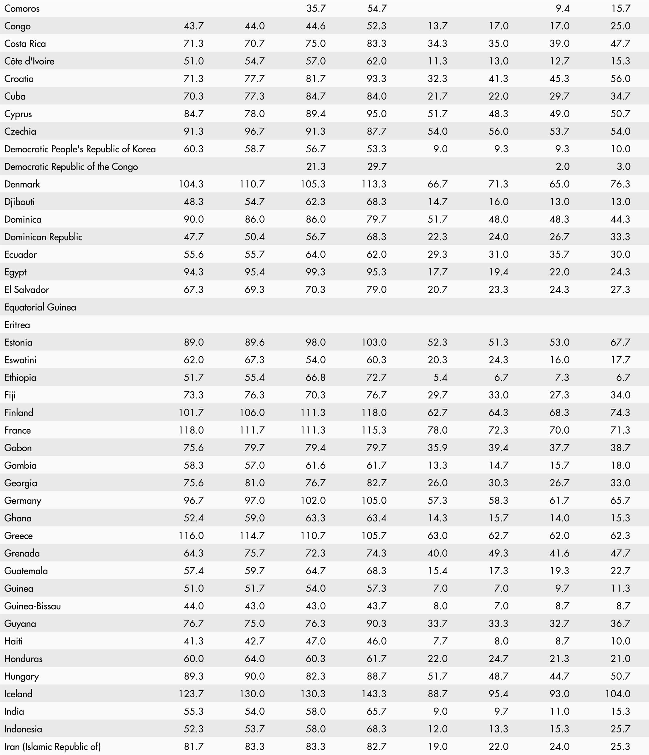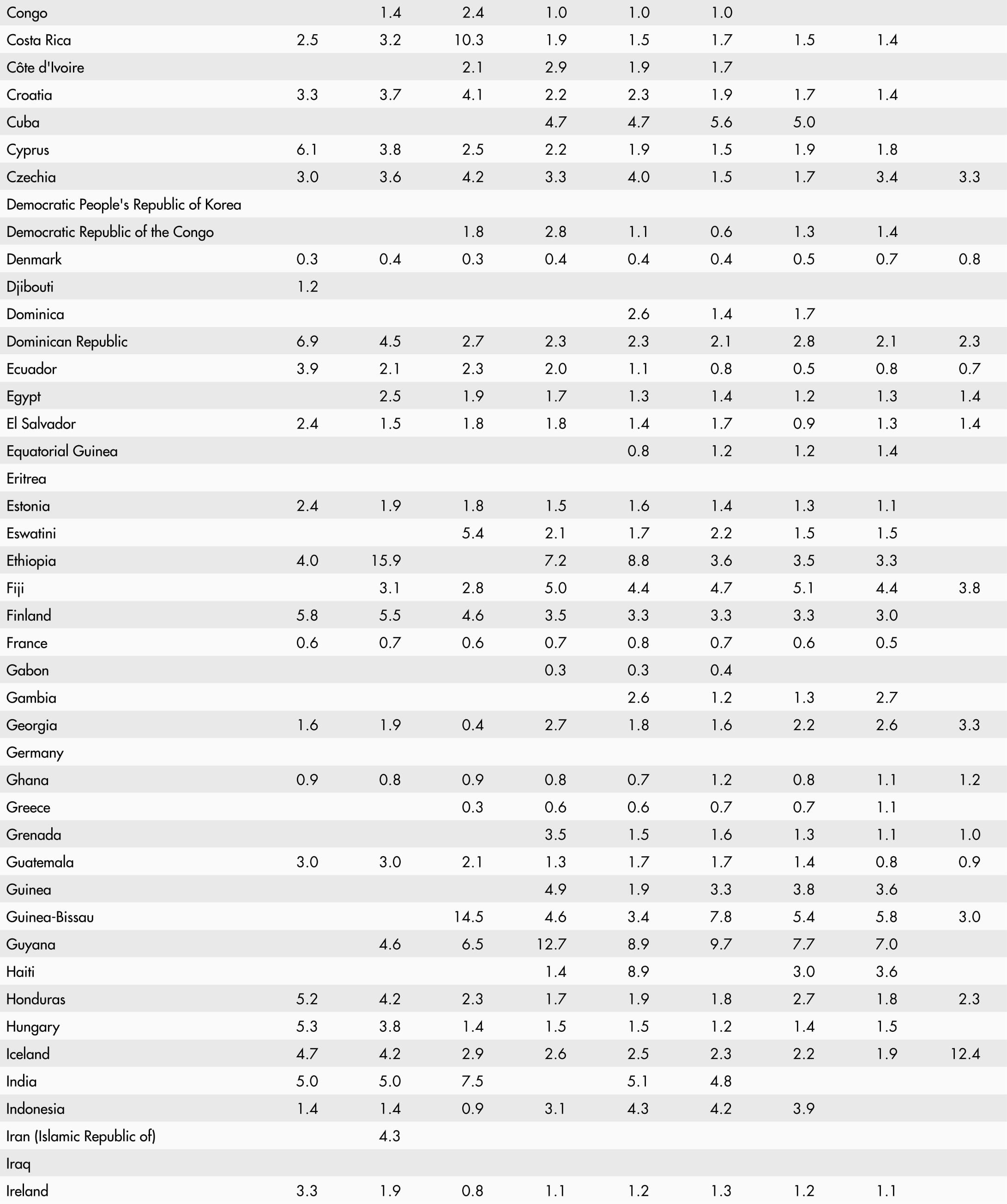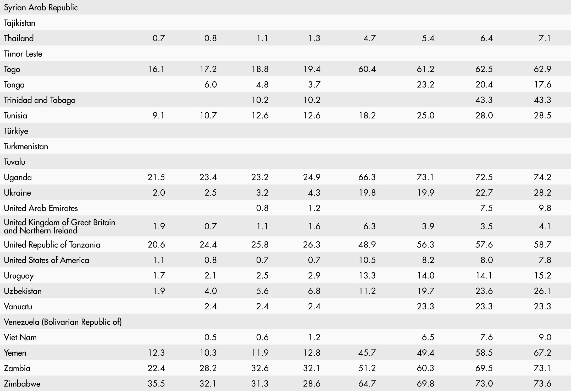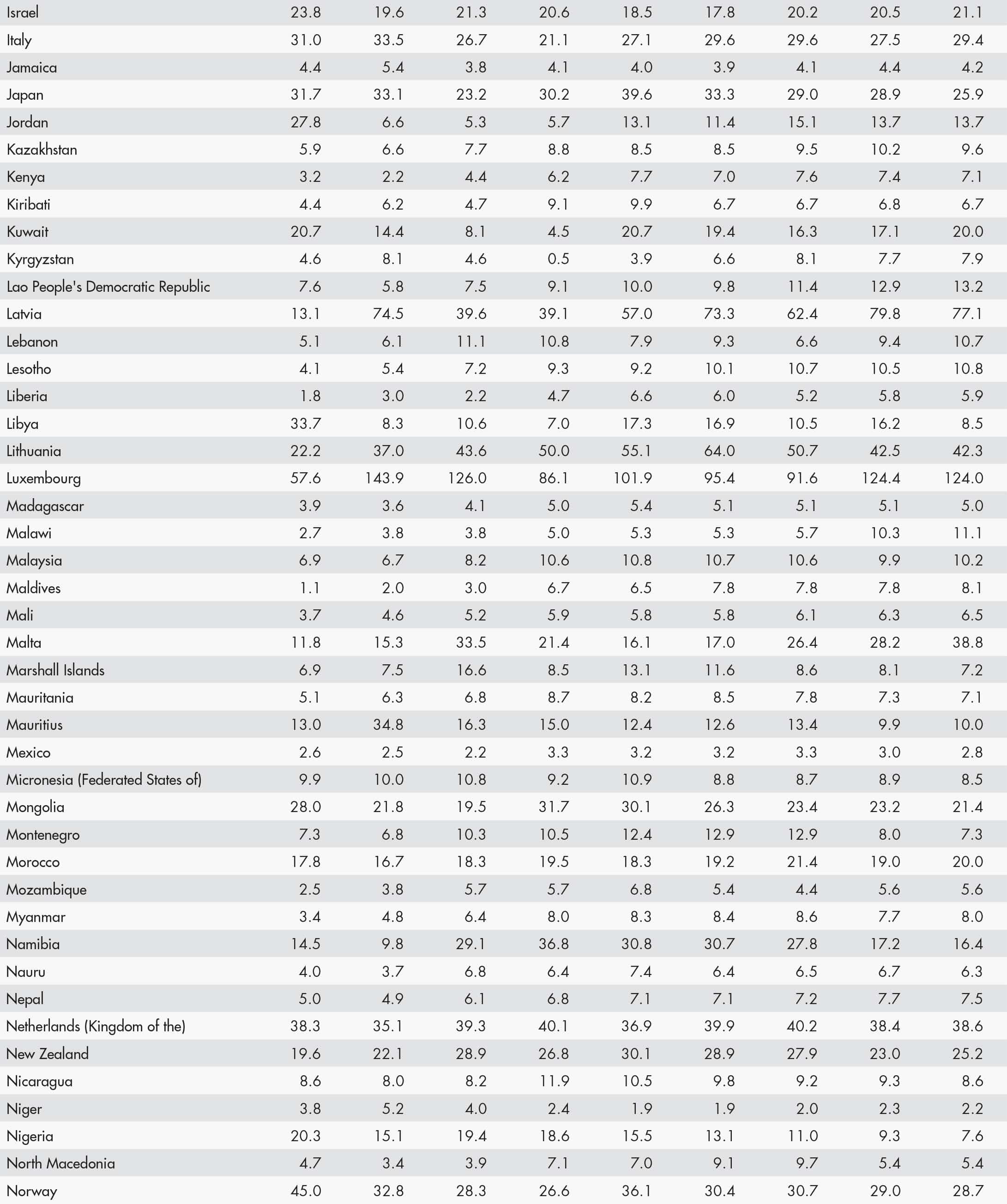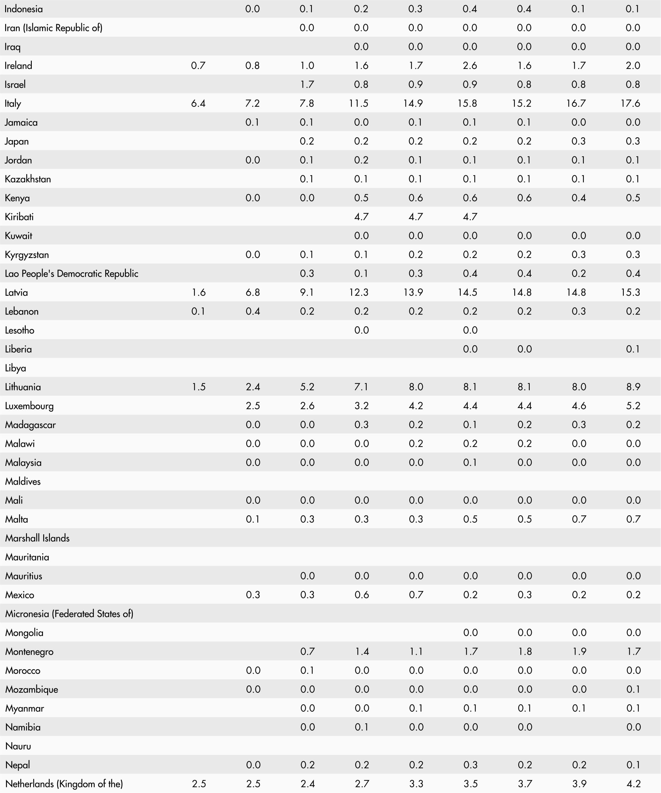 • A blank means that data are not available or that aggregates cannot be calculated because of missing data for the years shown.