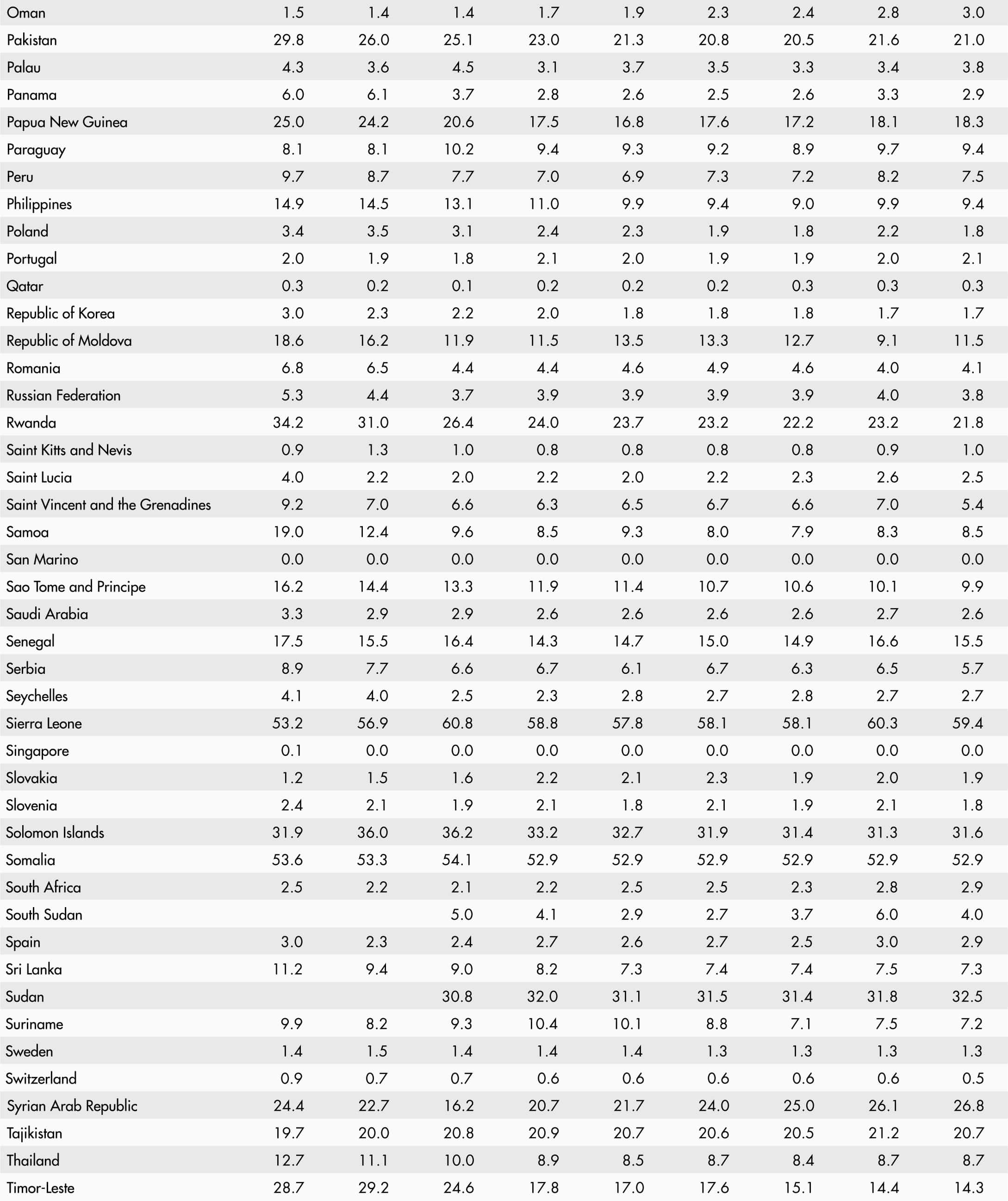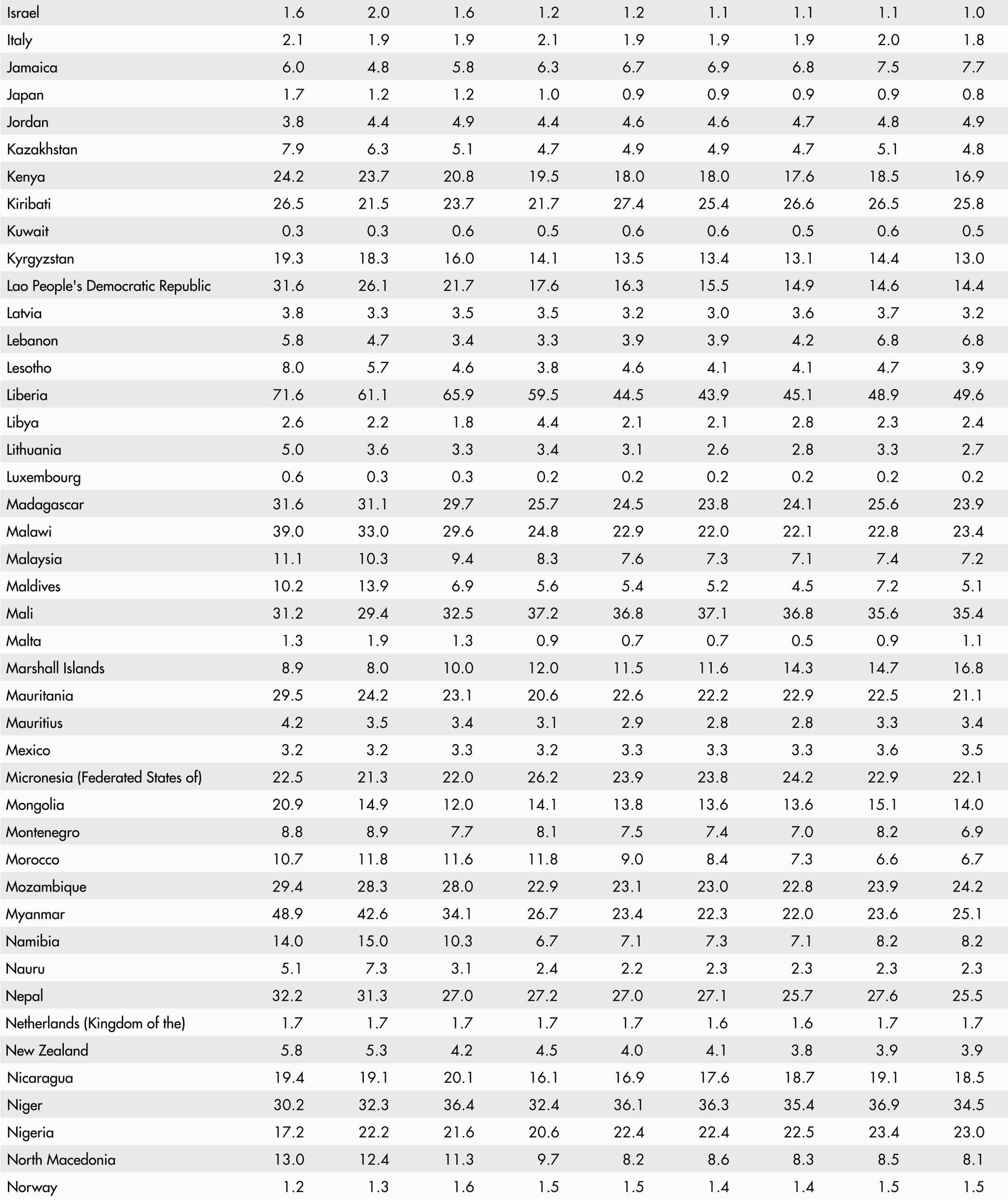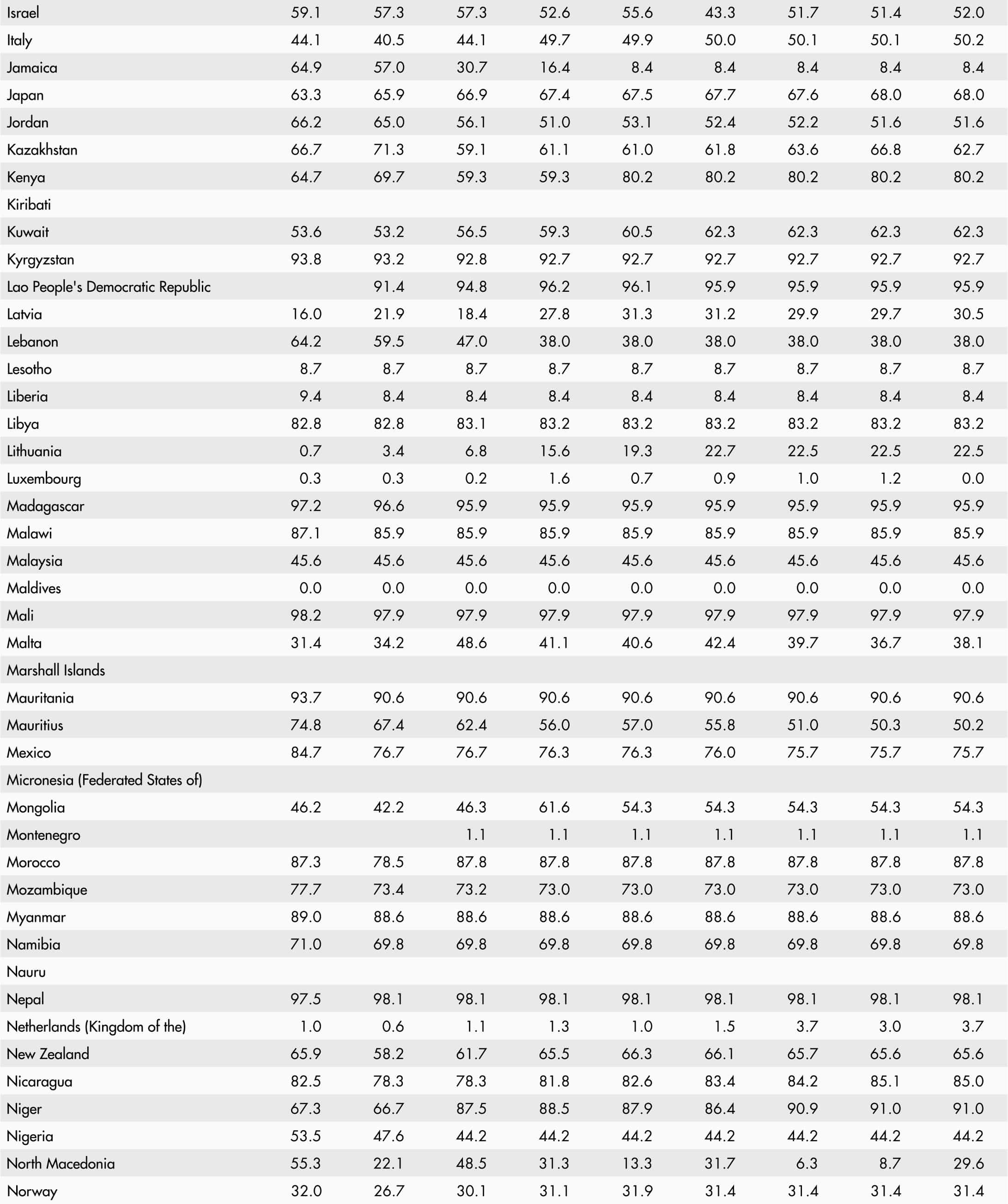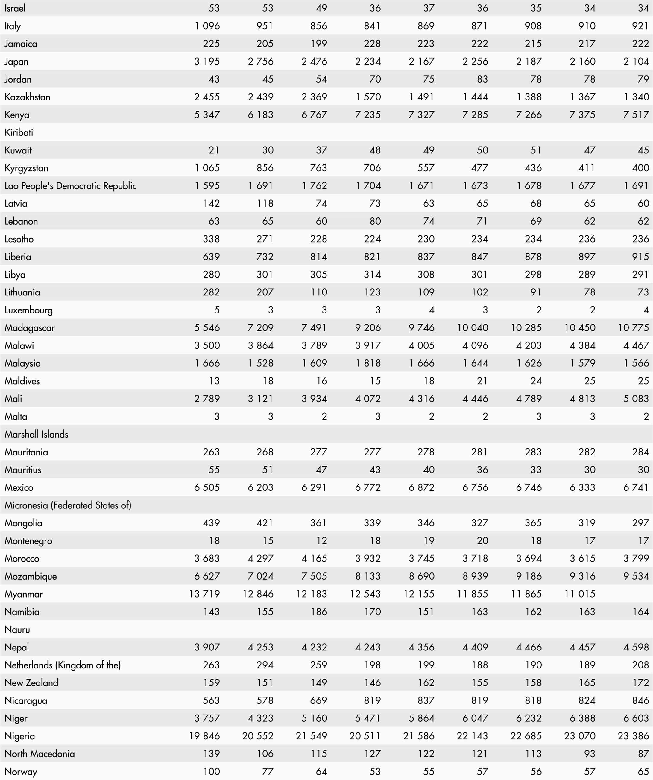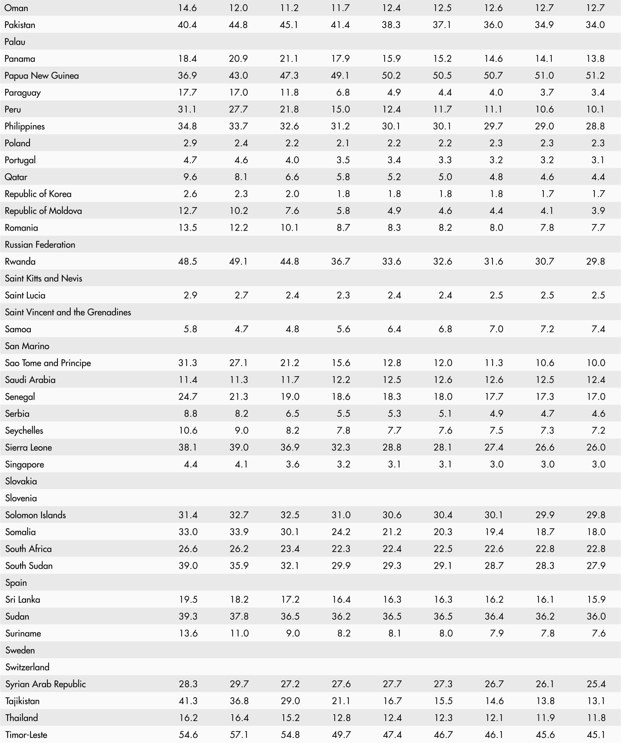 • A blank means that data are not available or that aggregates cannot be calculated because of missing data for the years shown.