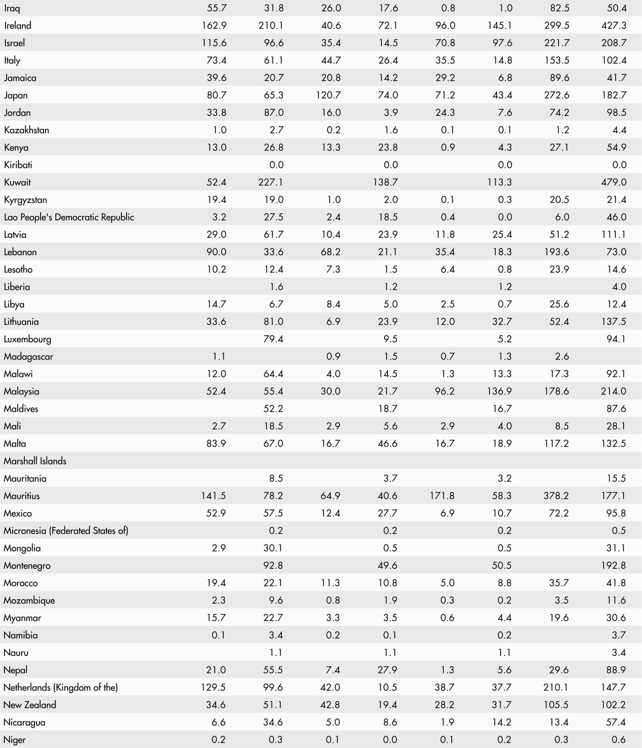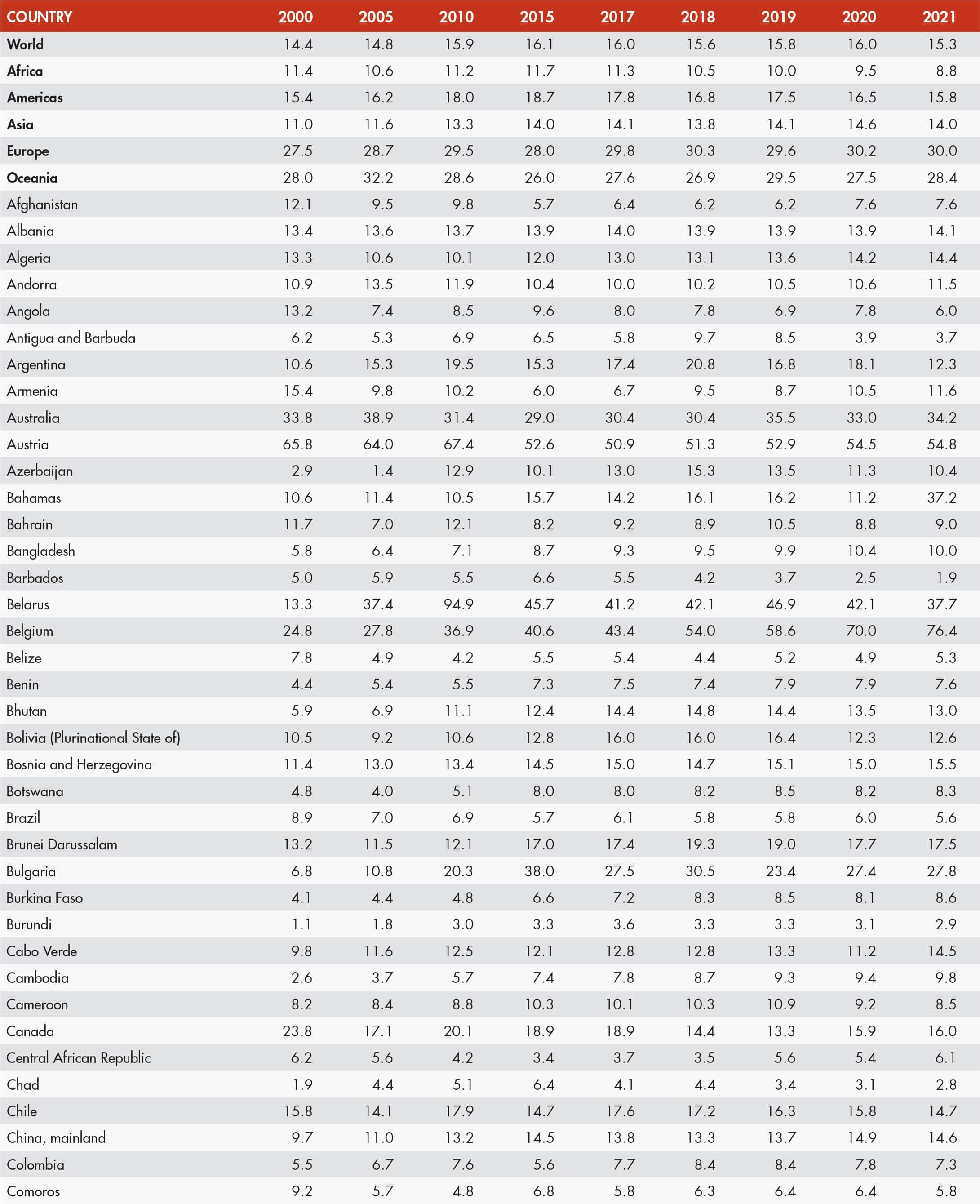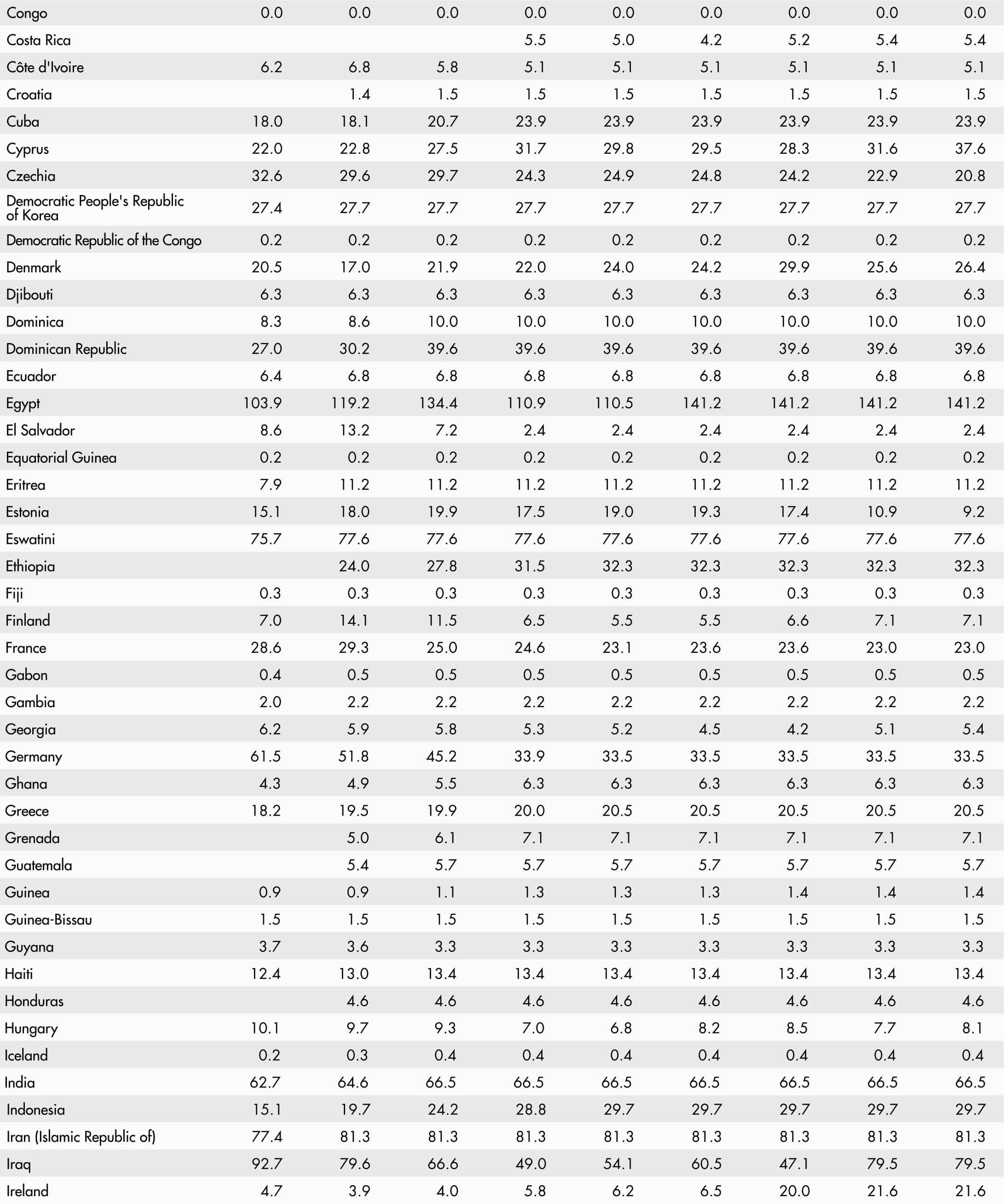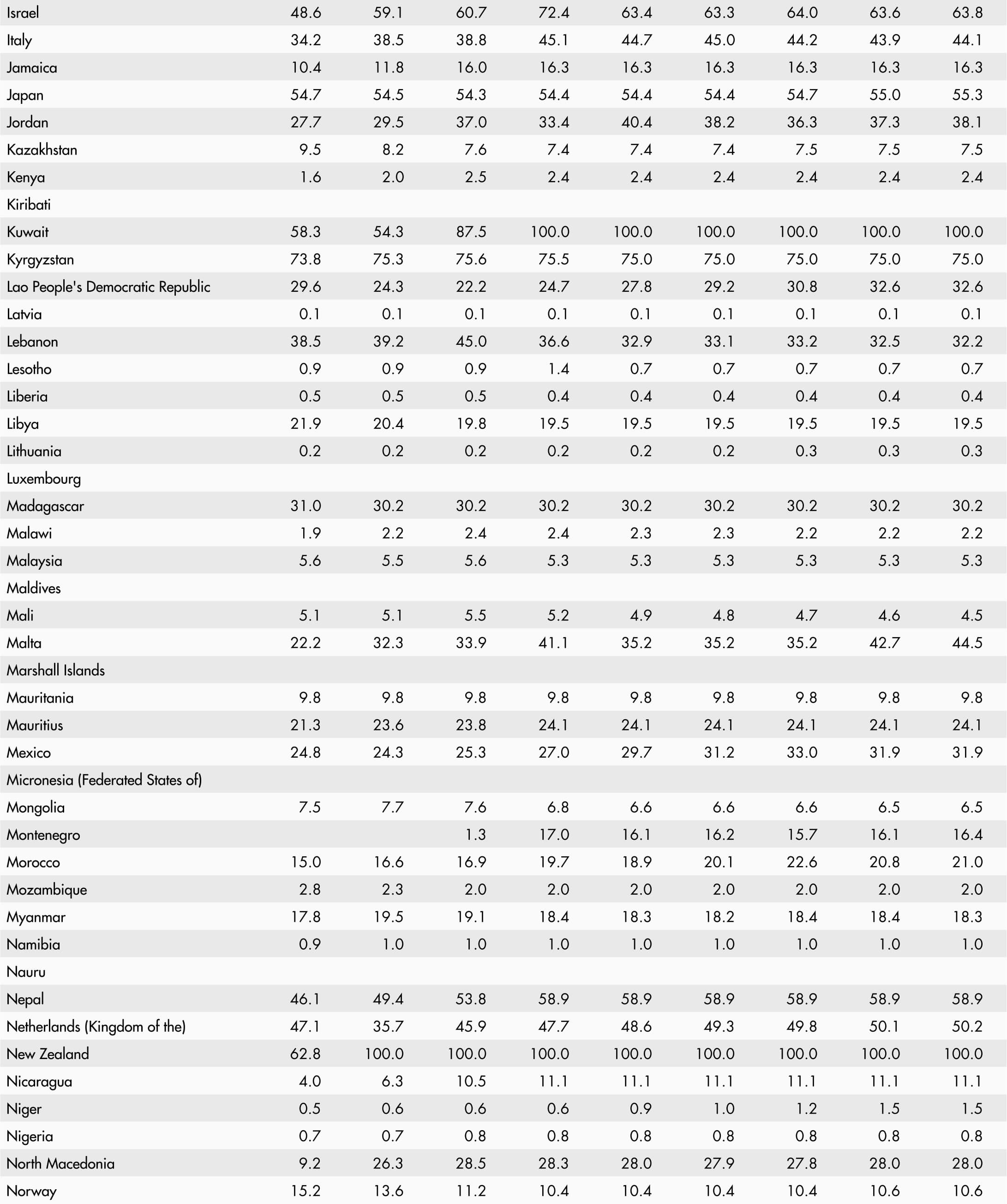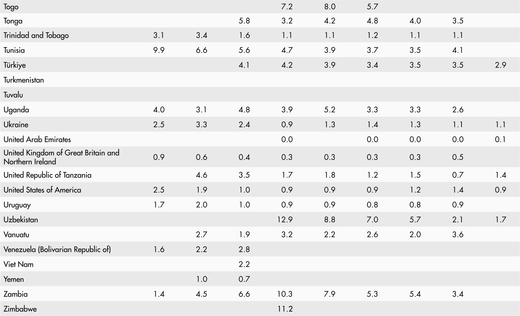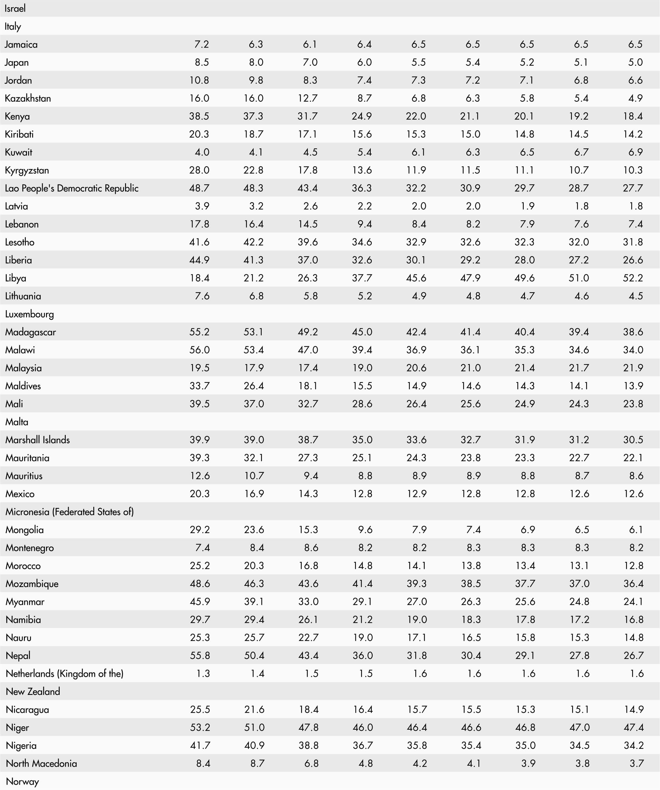 • A blank means that data are not available or that aggregates cannot be calculated because of missing data for the years shown.