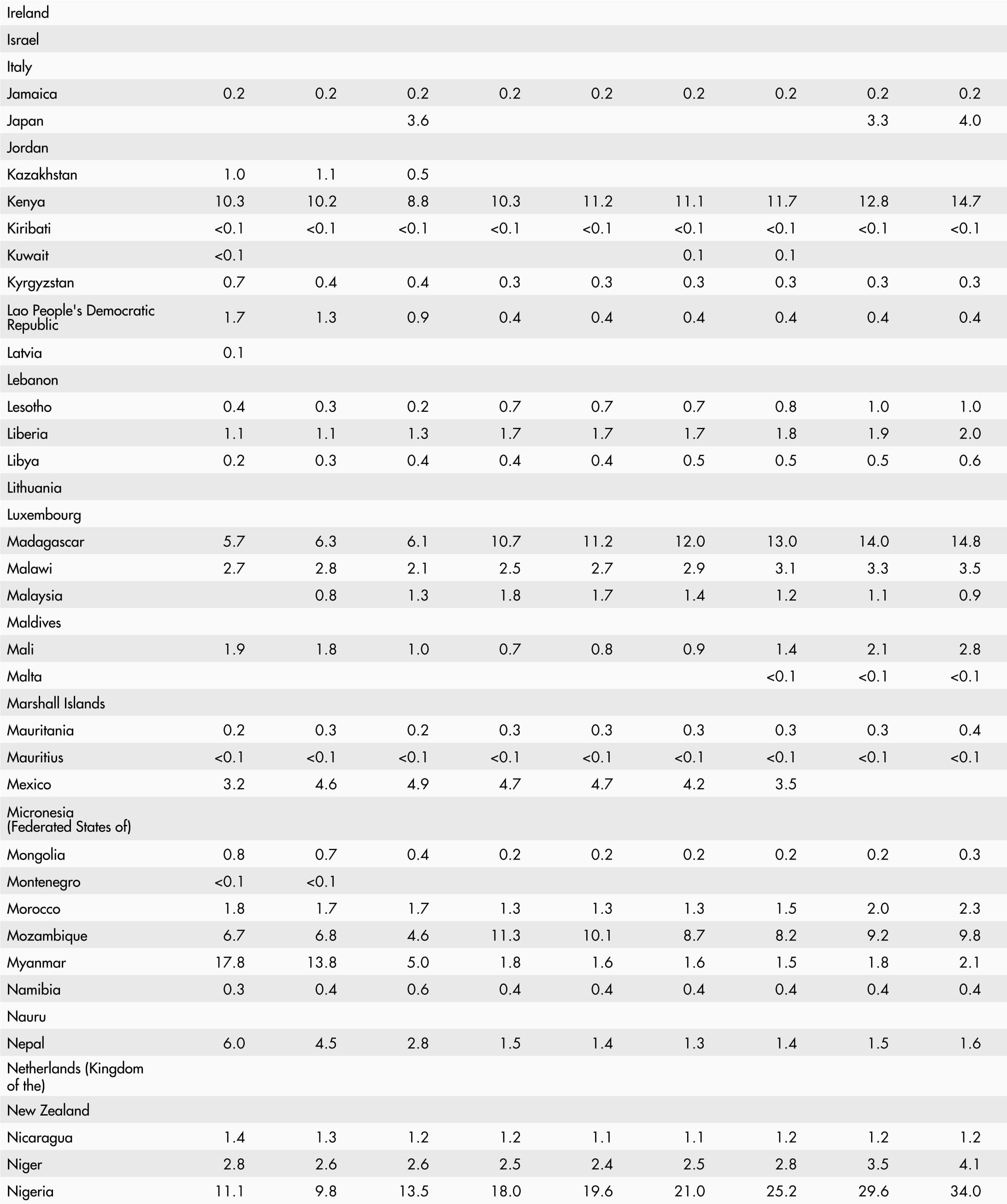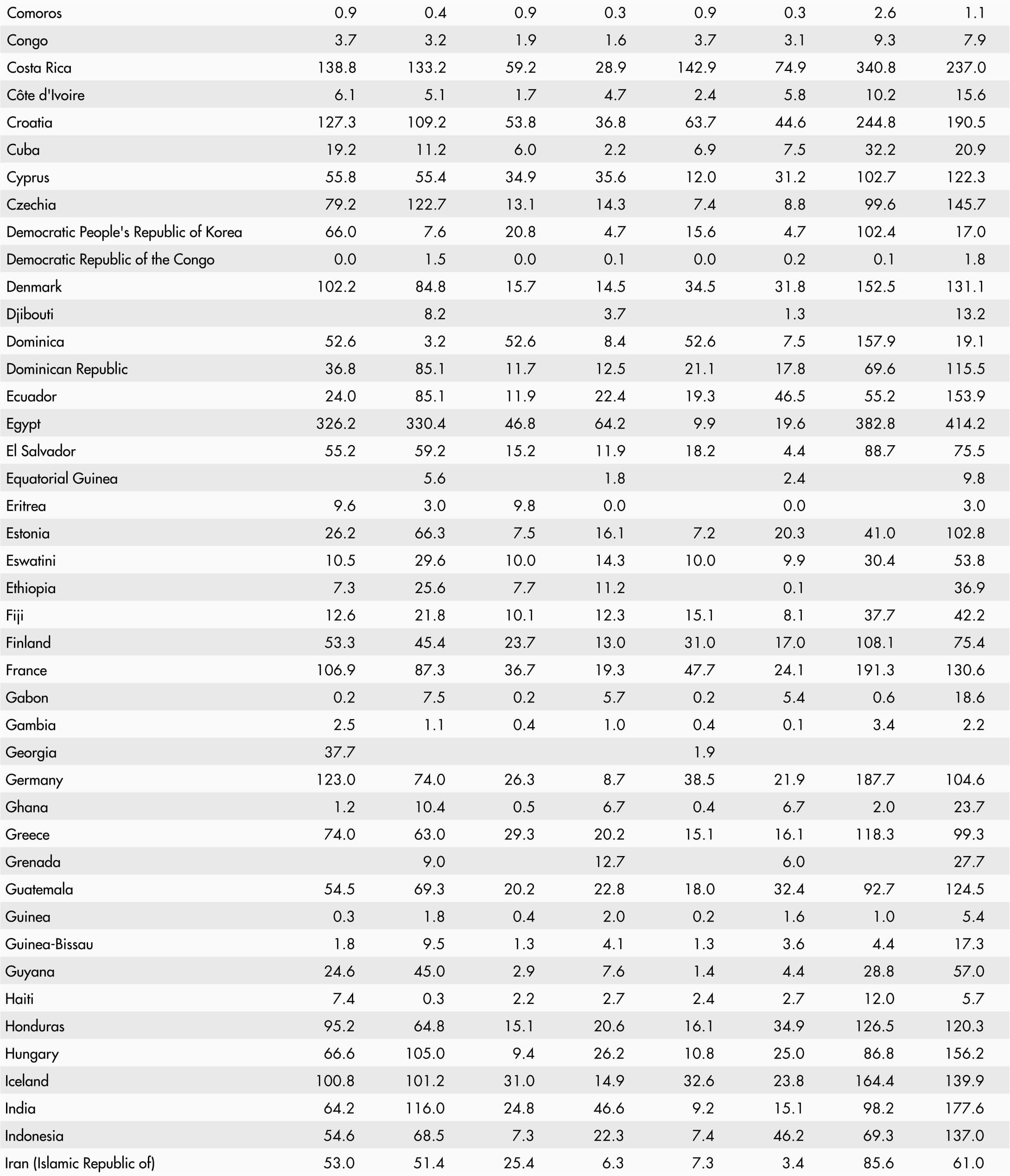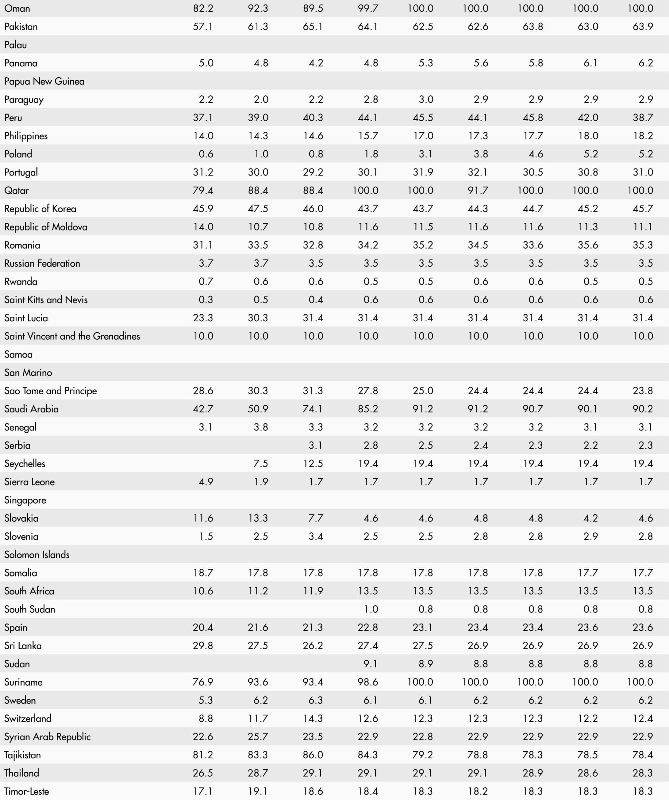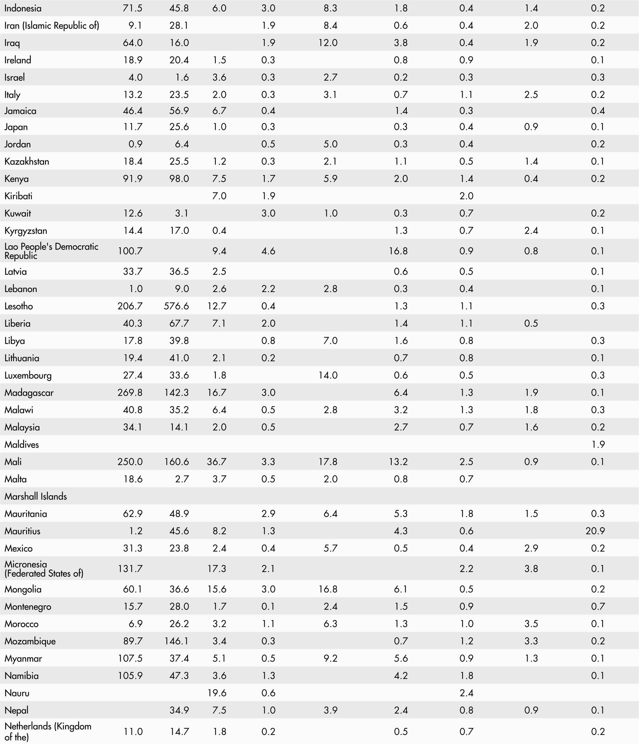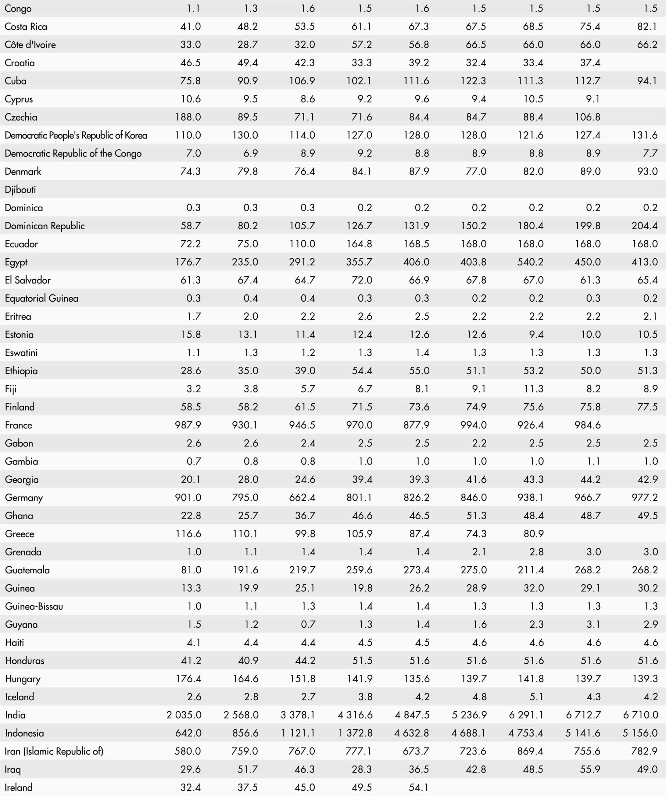 • A blank means that data are not available or that aggregates cannot be calculated because of missing data for the years shown.