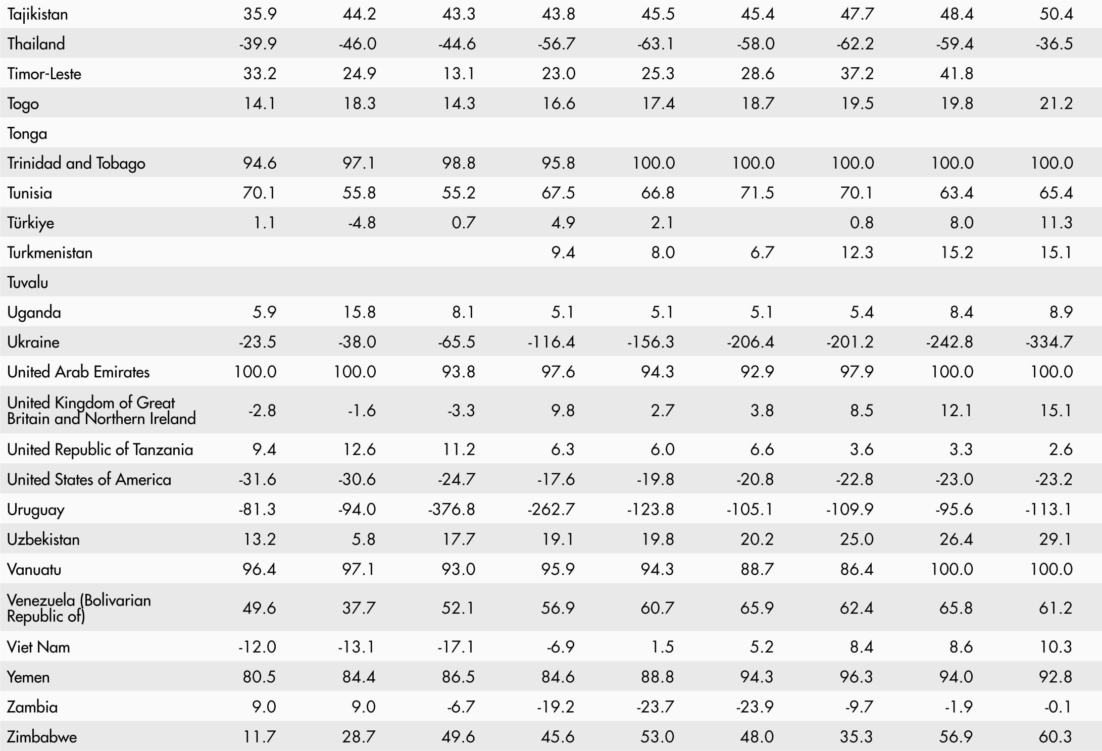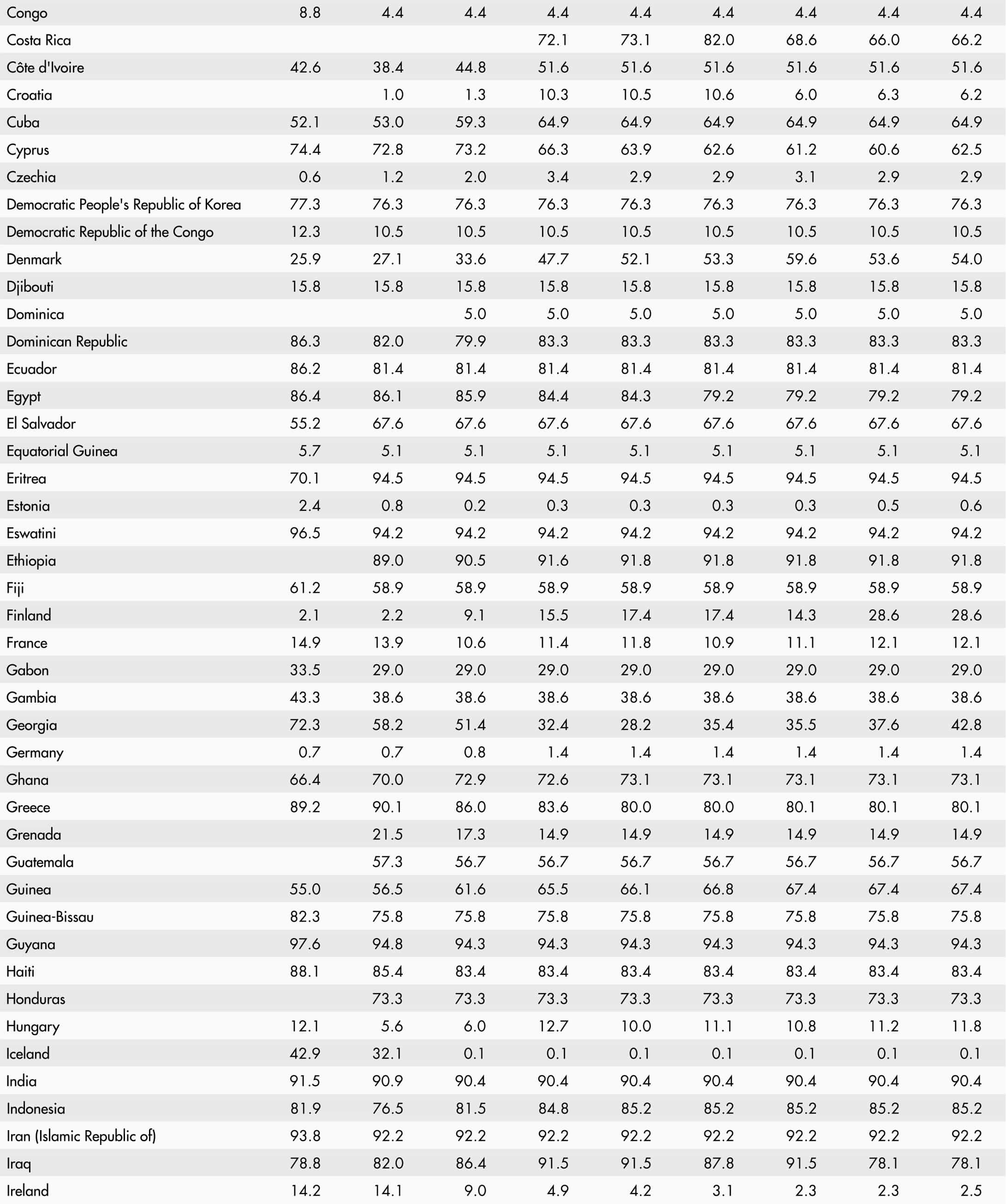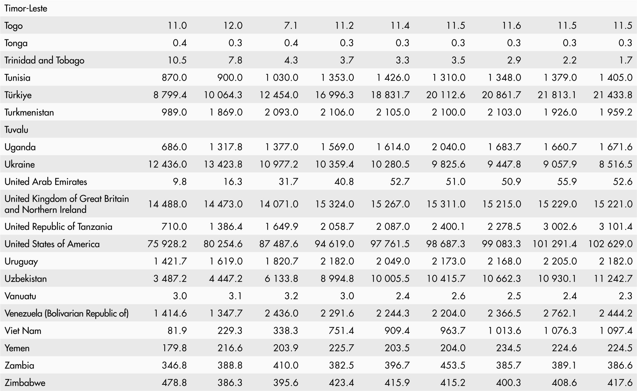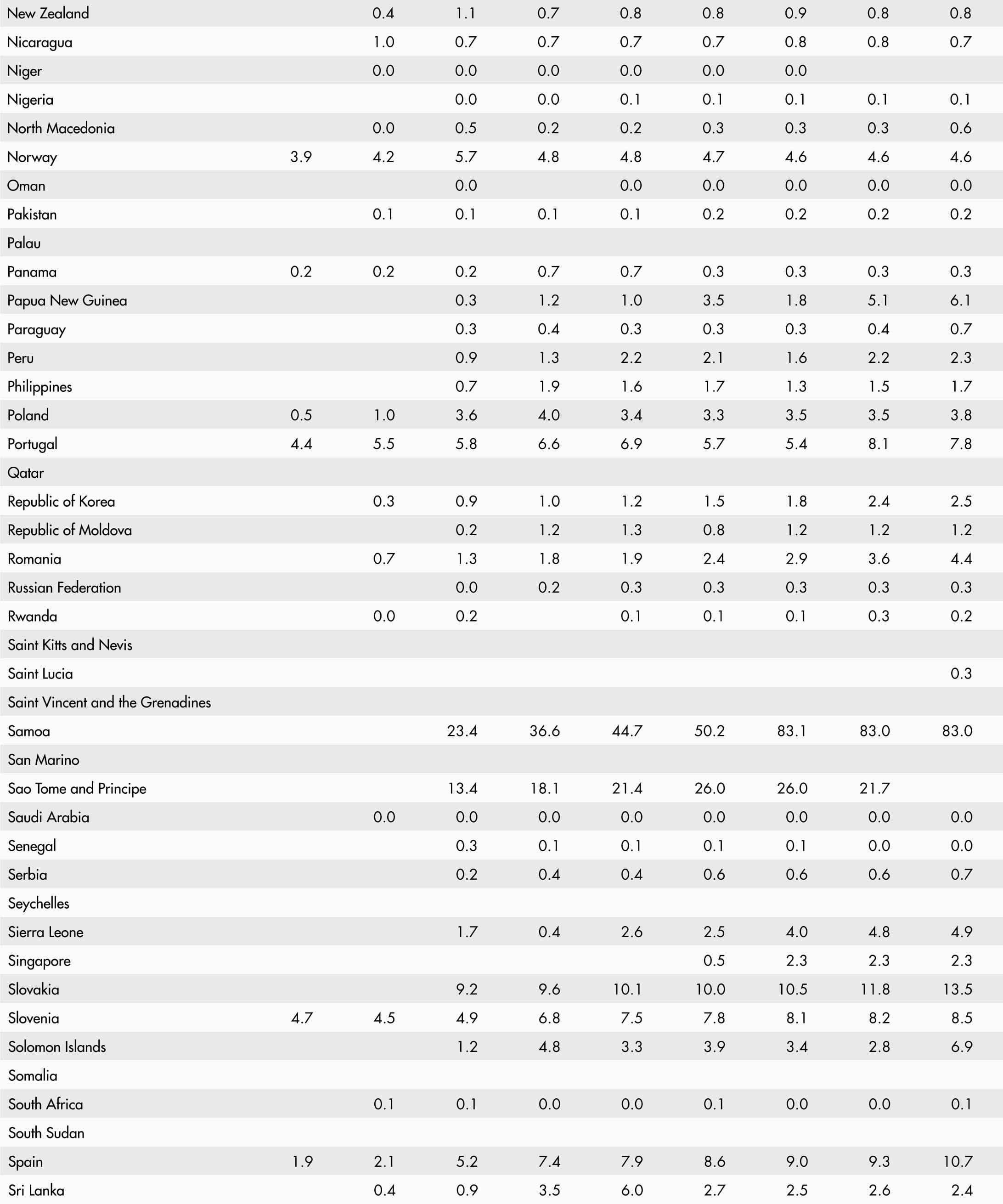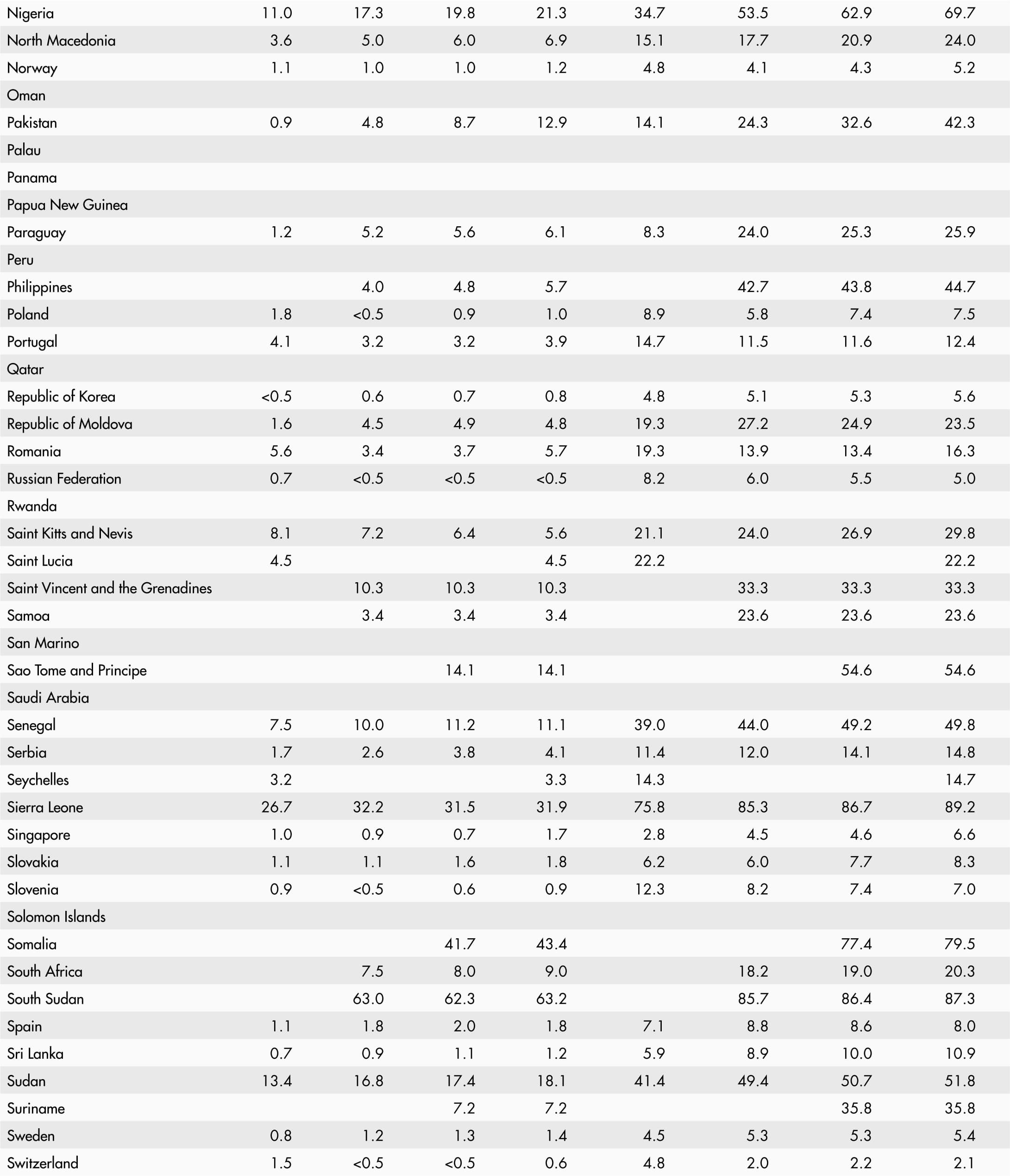 • A blank means that data are not available or that aggregates cannot be calculated because of missing data for the years shown.