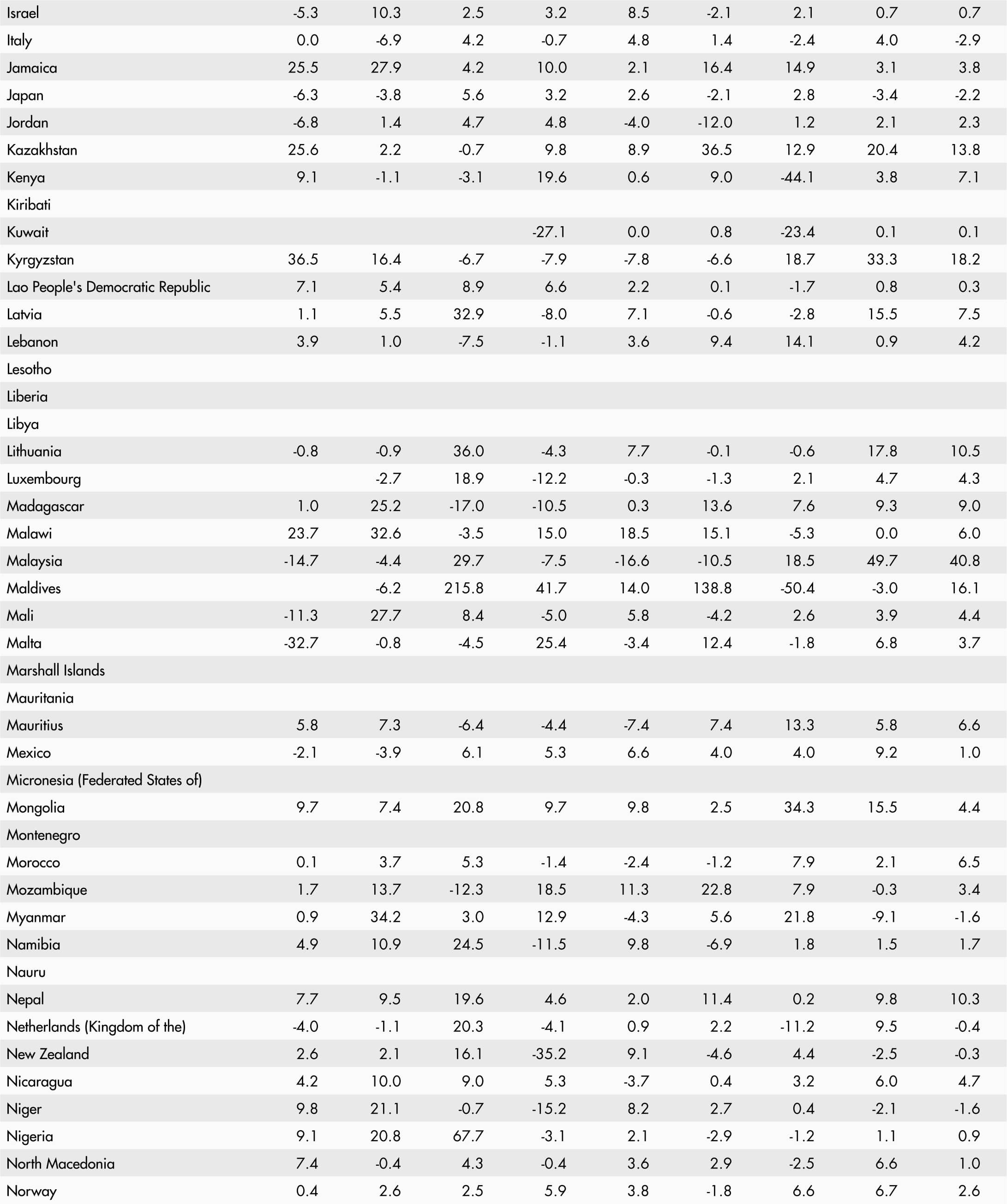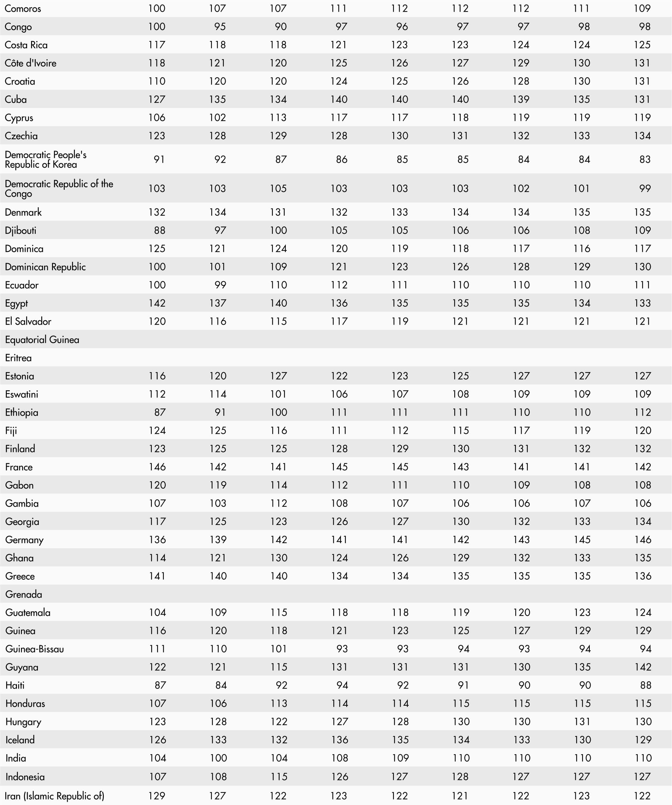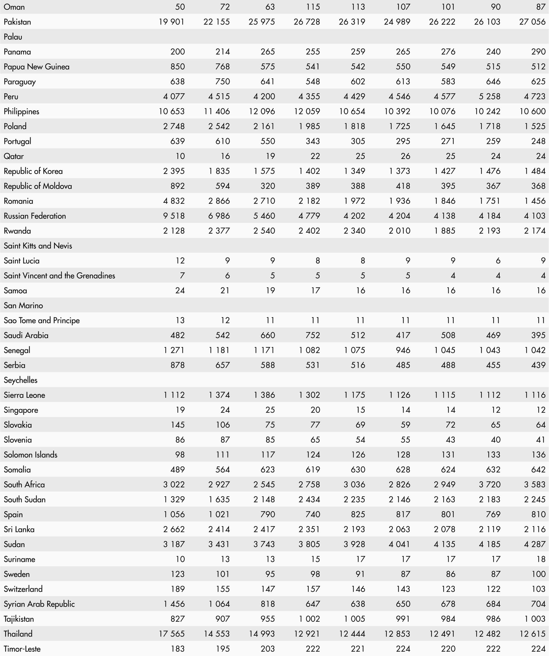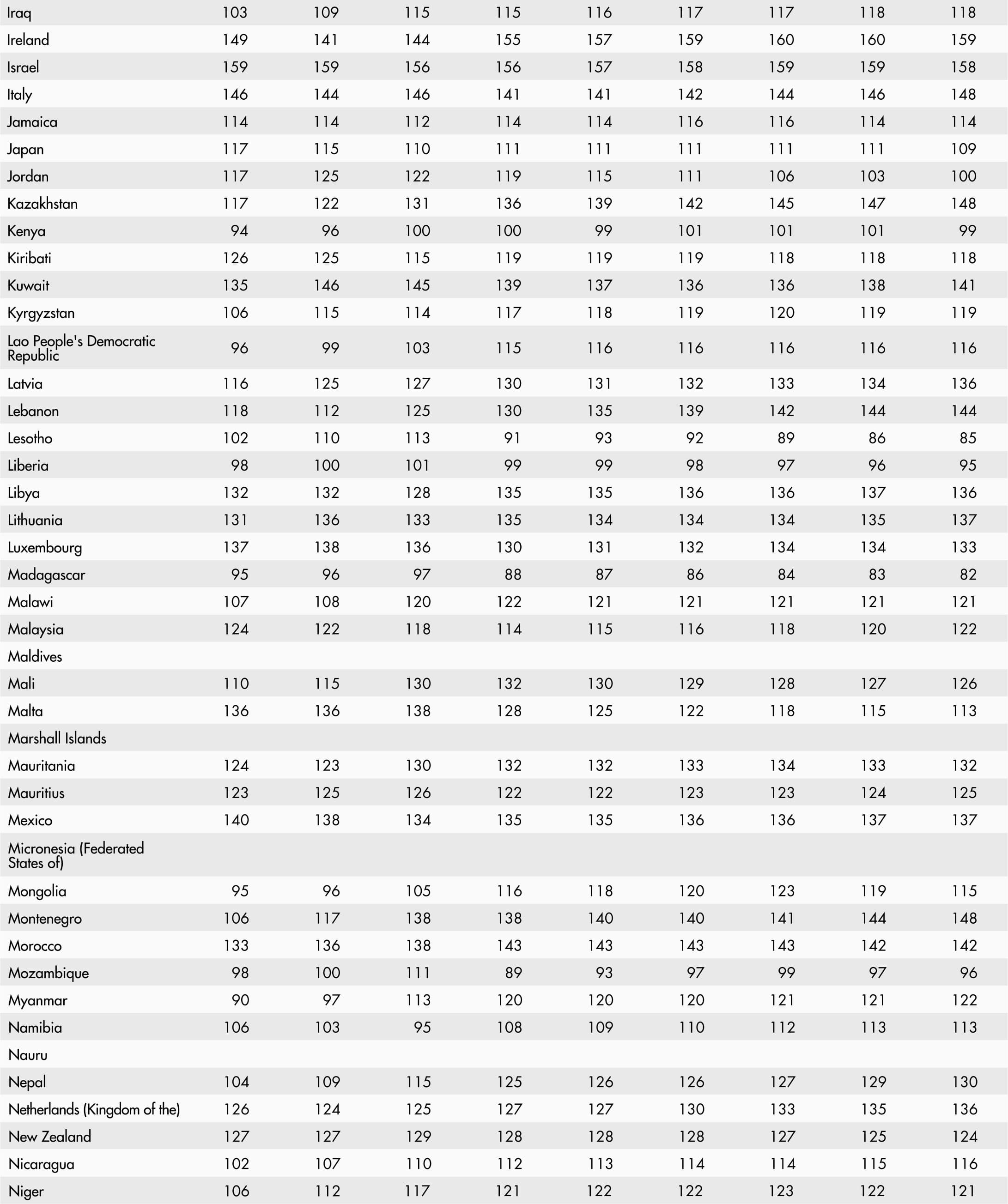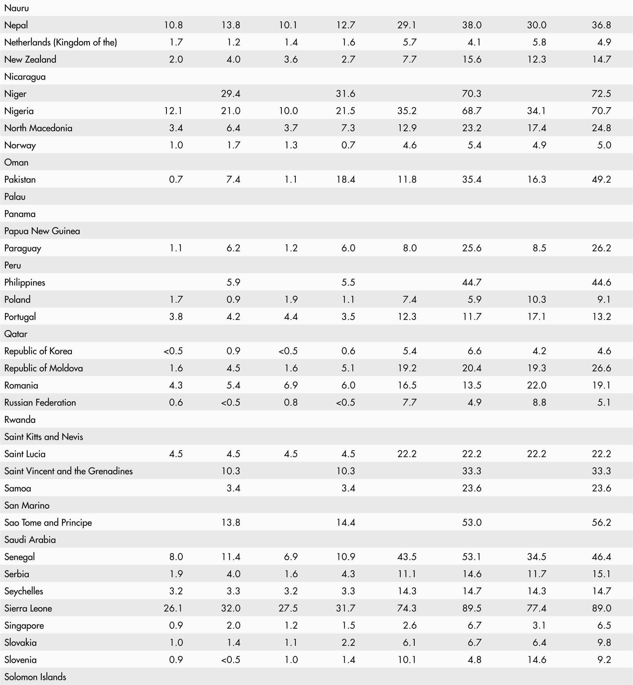 • A blank means that data are not available or that aggregates cannot be calculated because of missing data for the years shown.