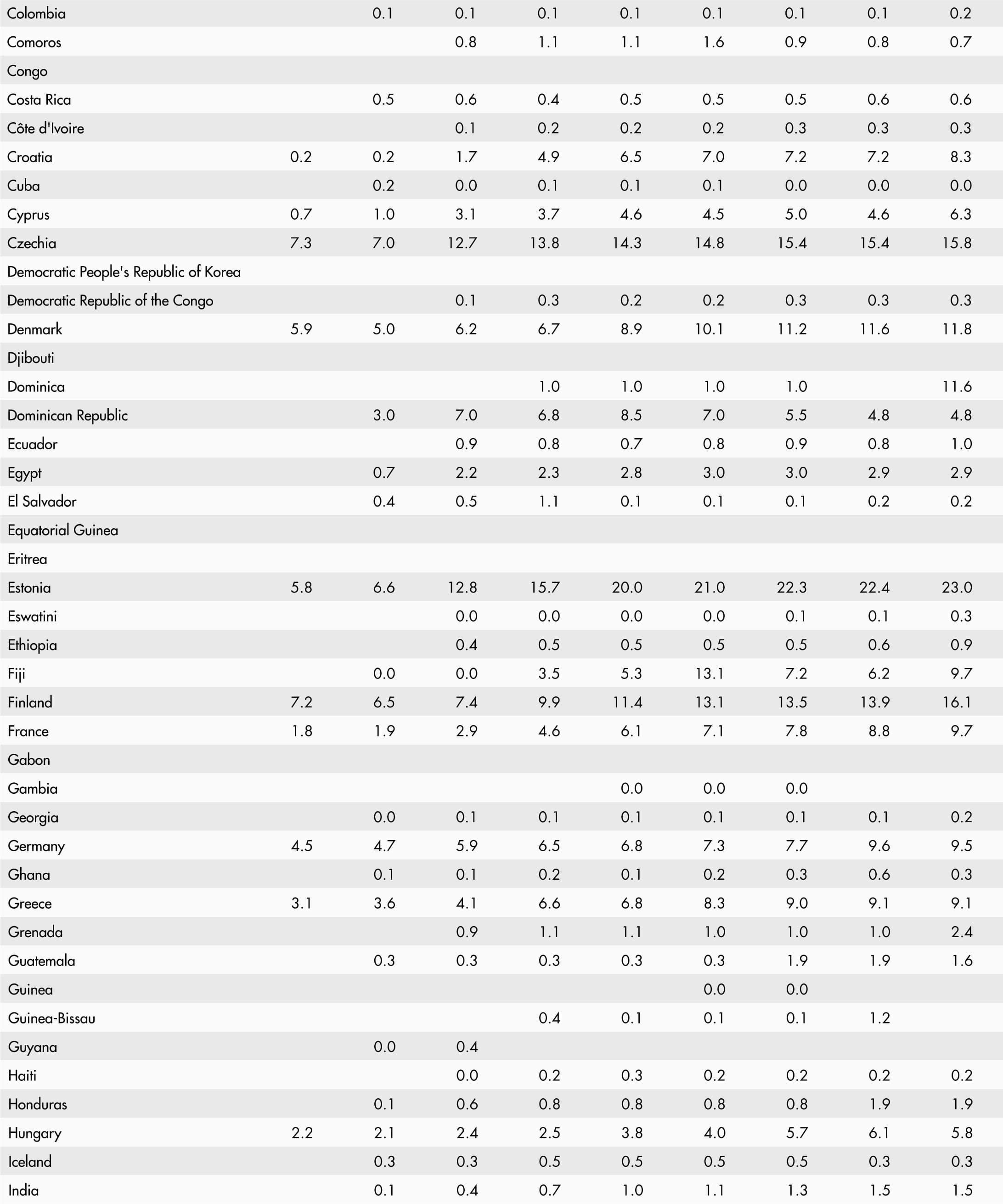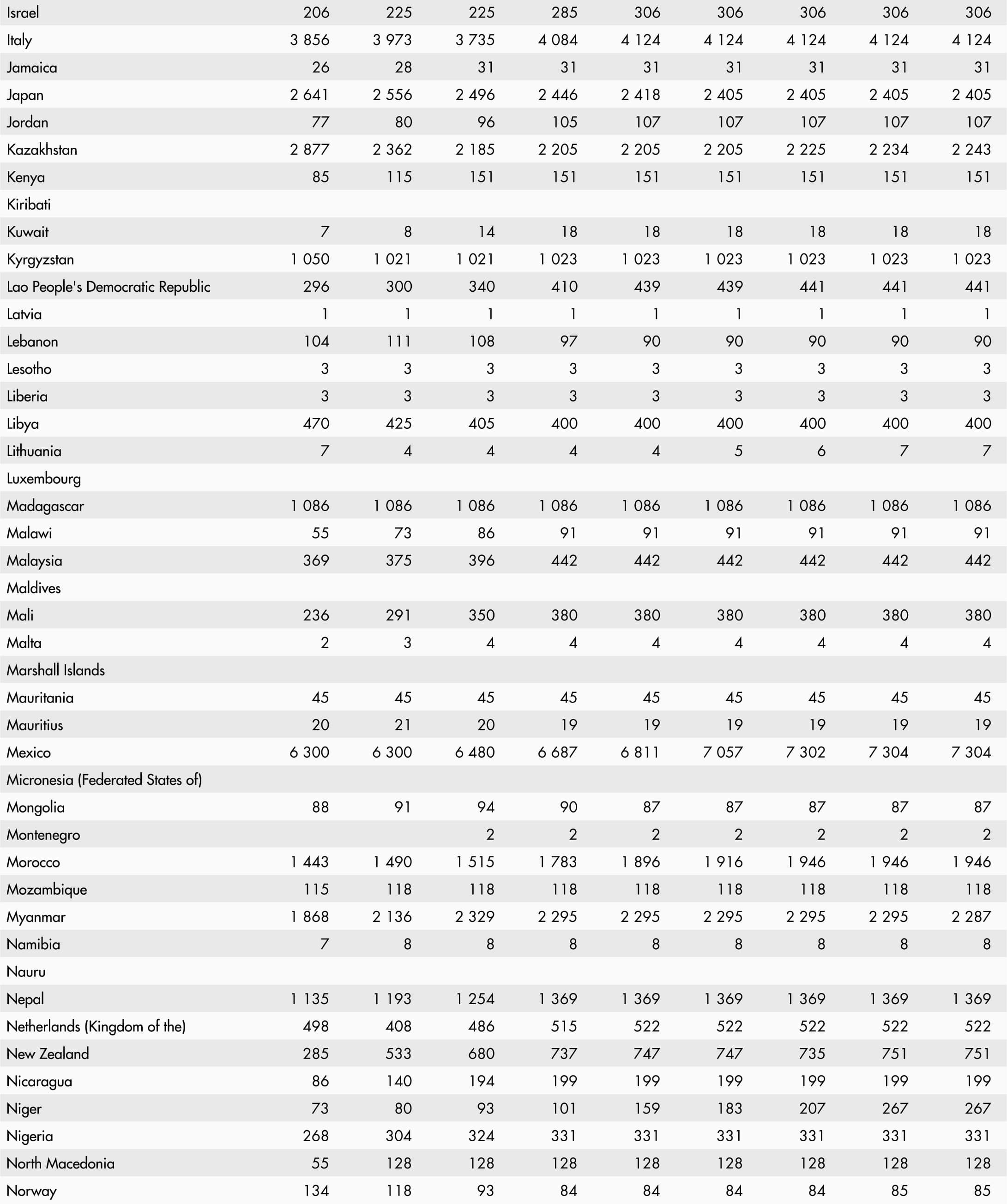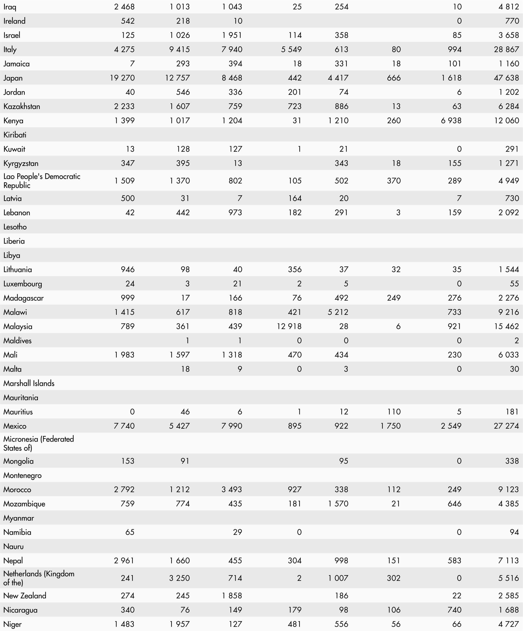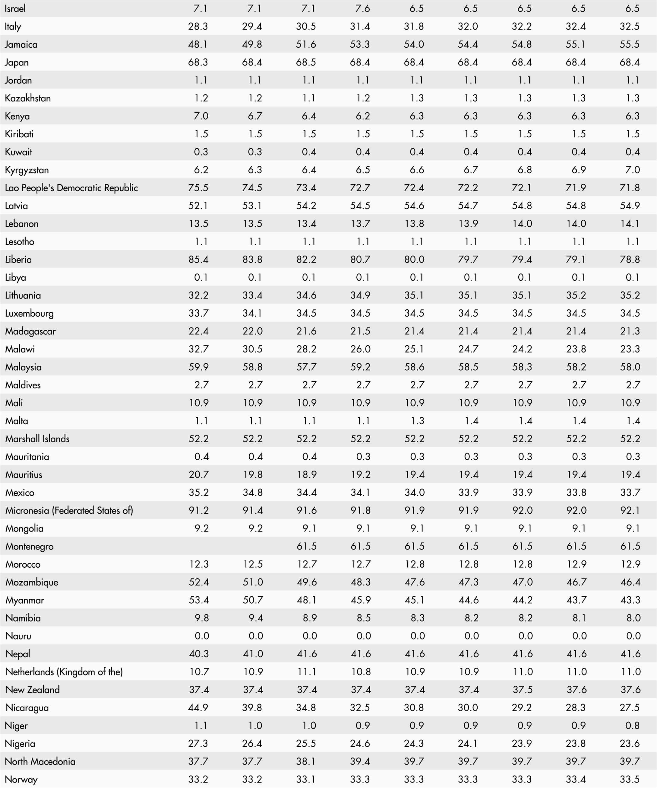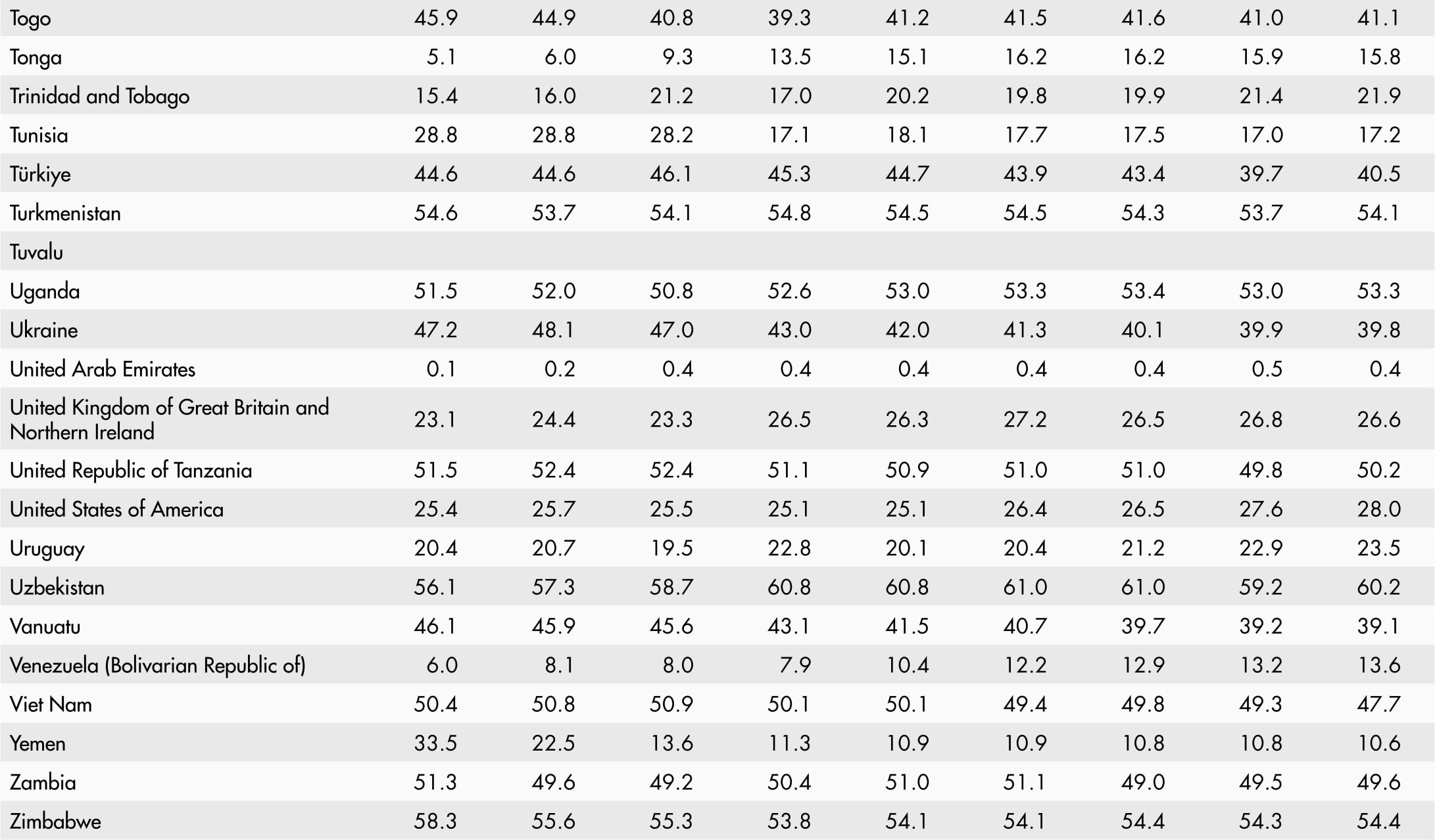 • A blank means that data are not available or that aggregates cannot be calculated because of missing data for the years shown.