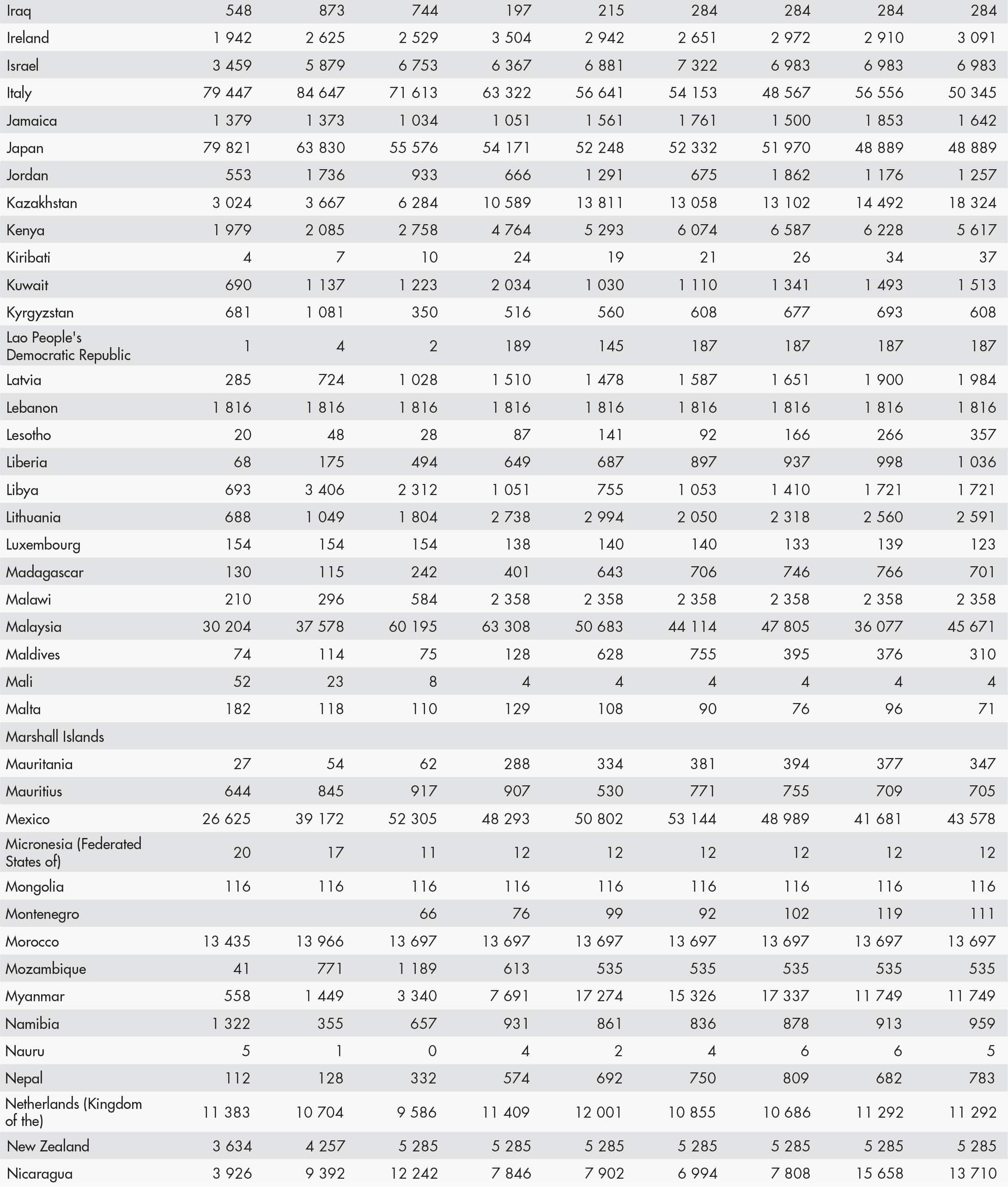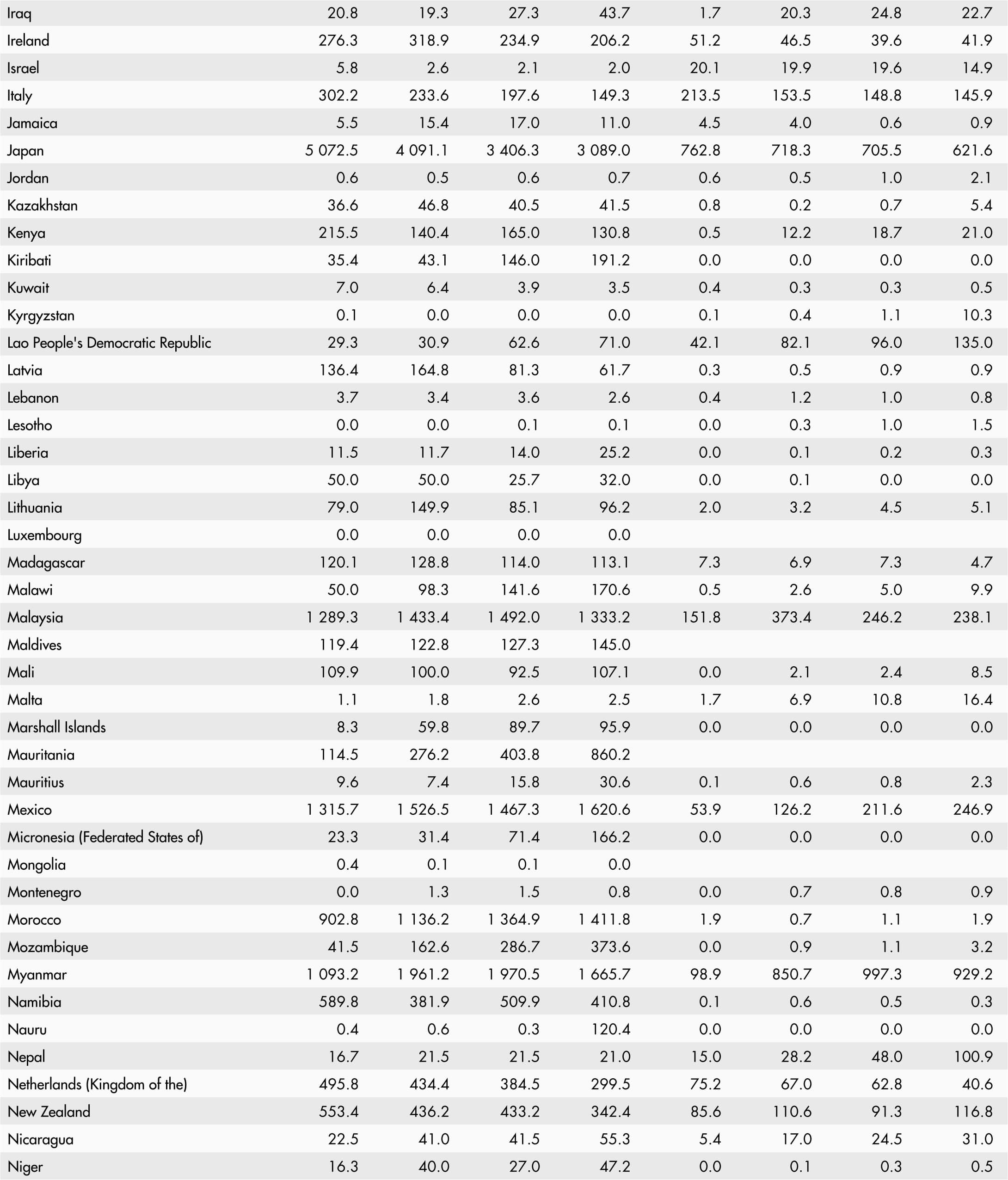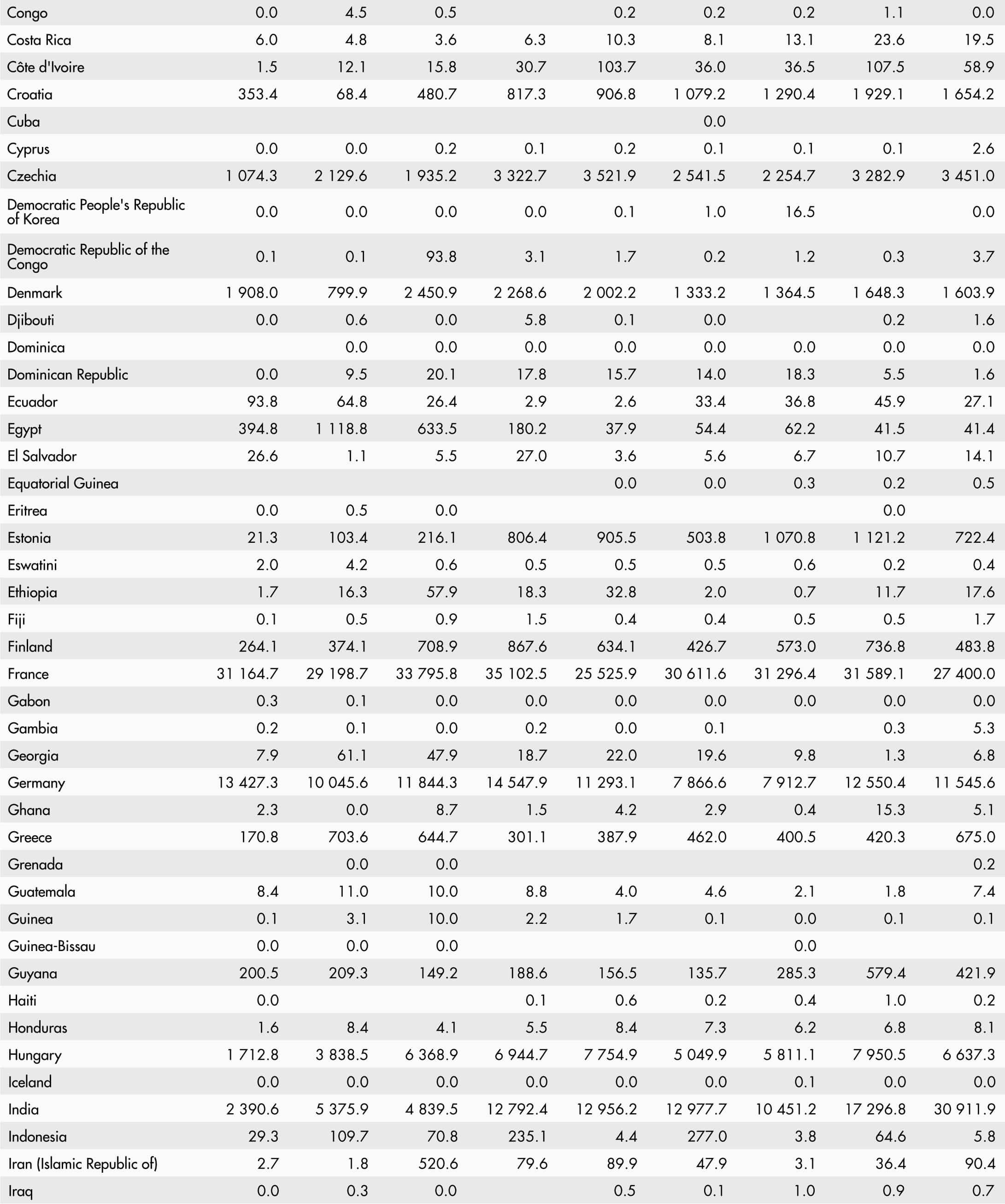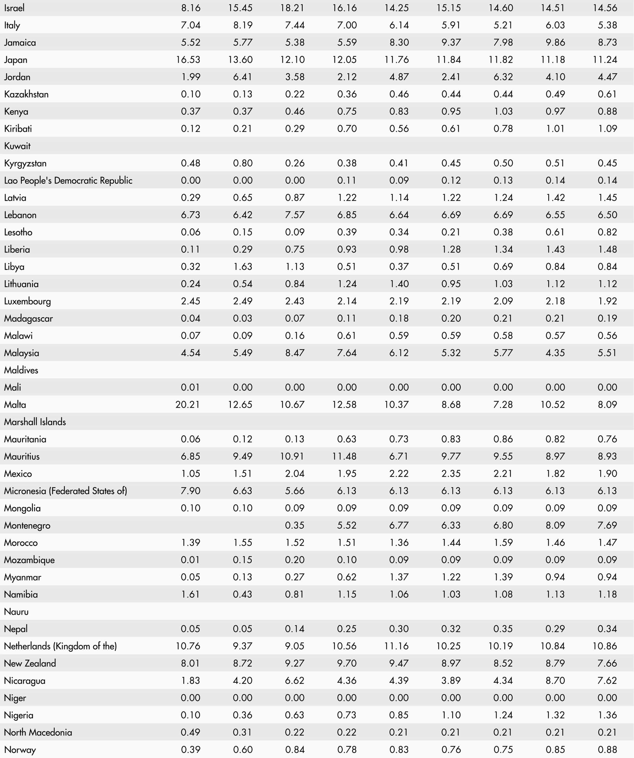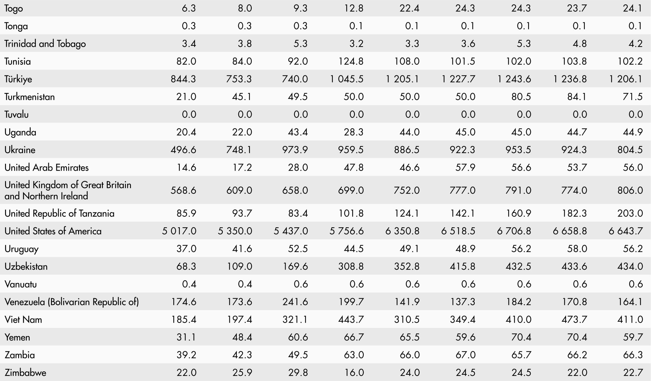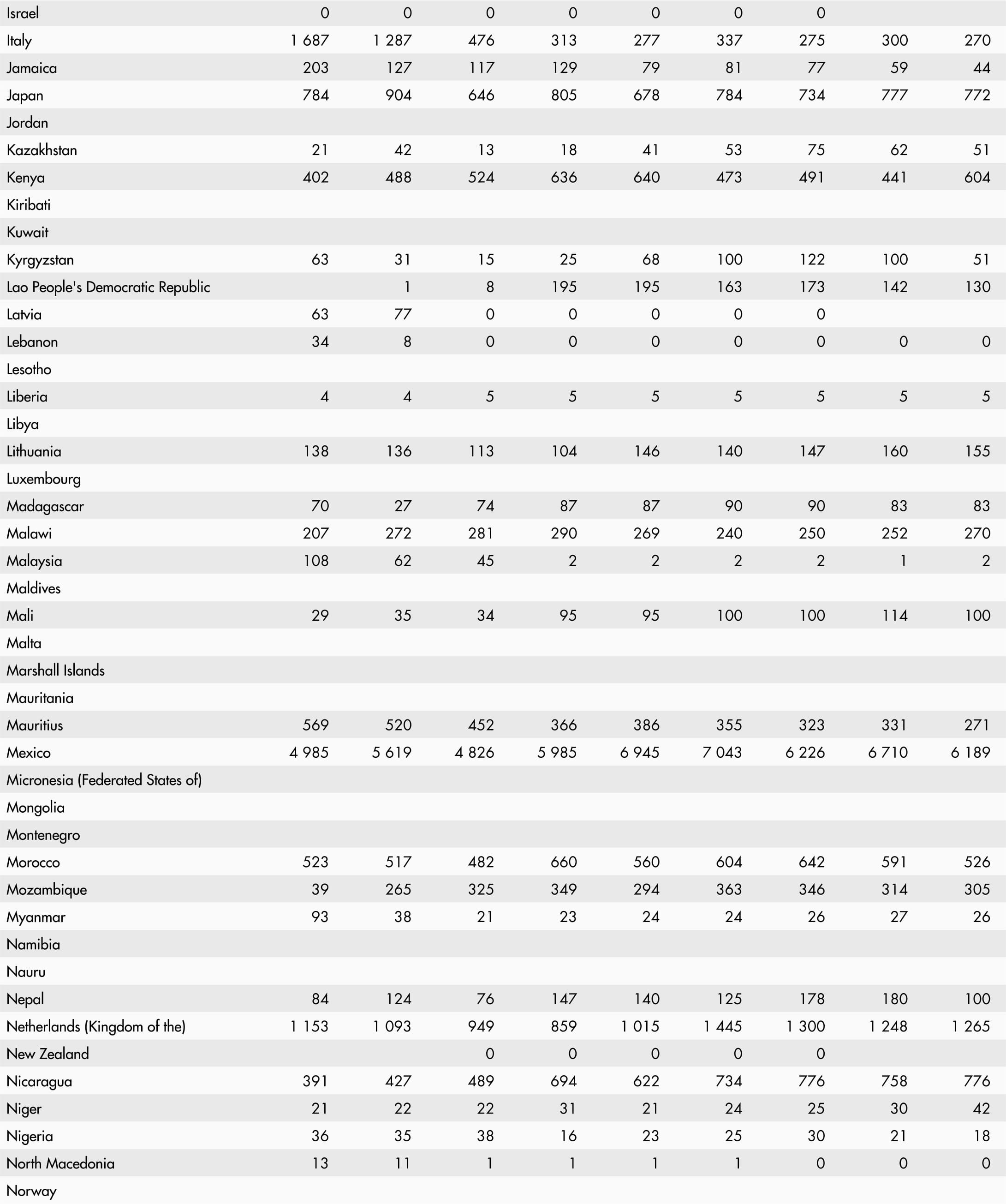 • A blank means that data are not available or that aggregates cannot be calculated because of missing data for the years shown.