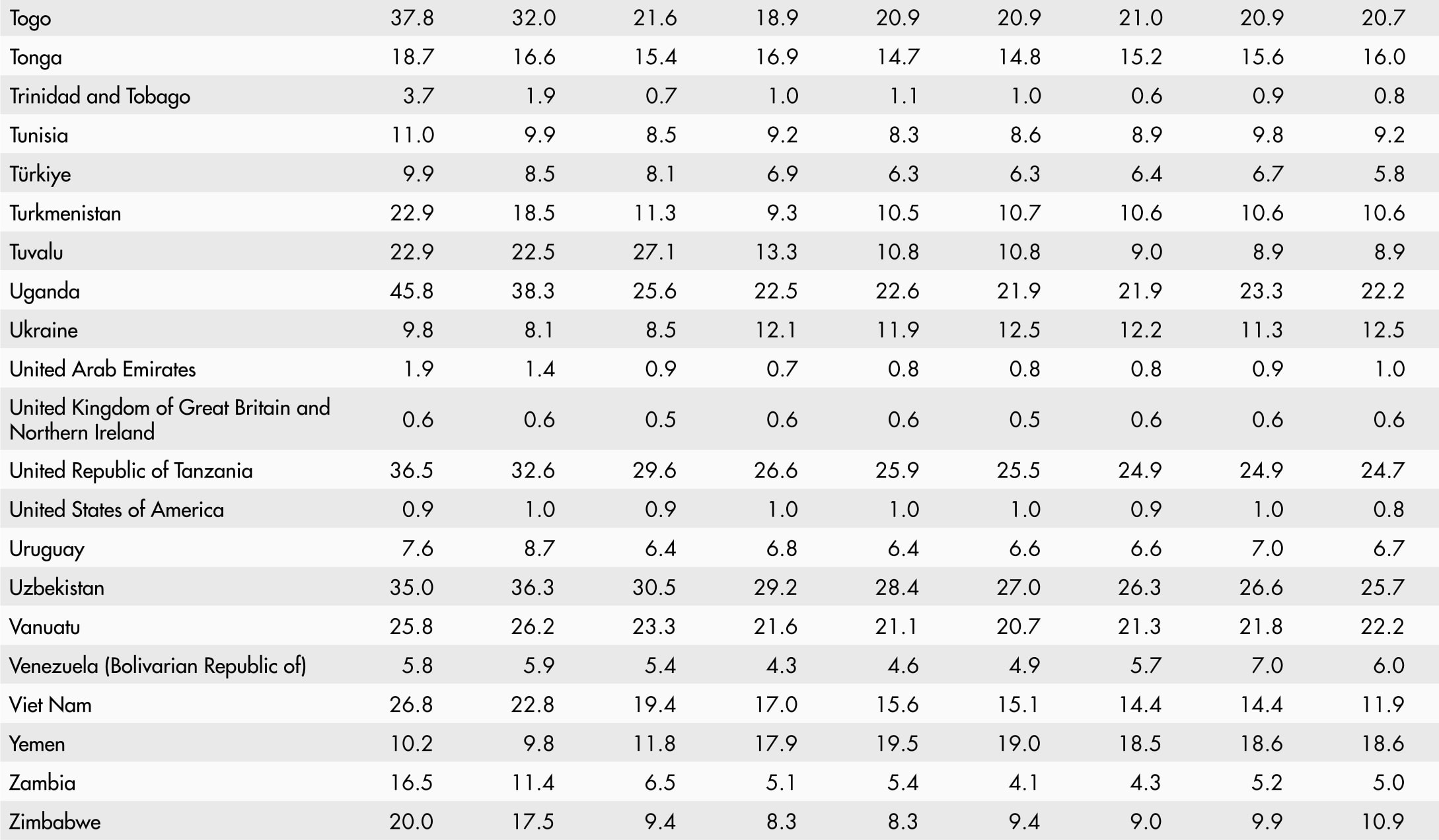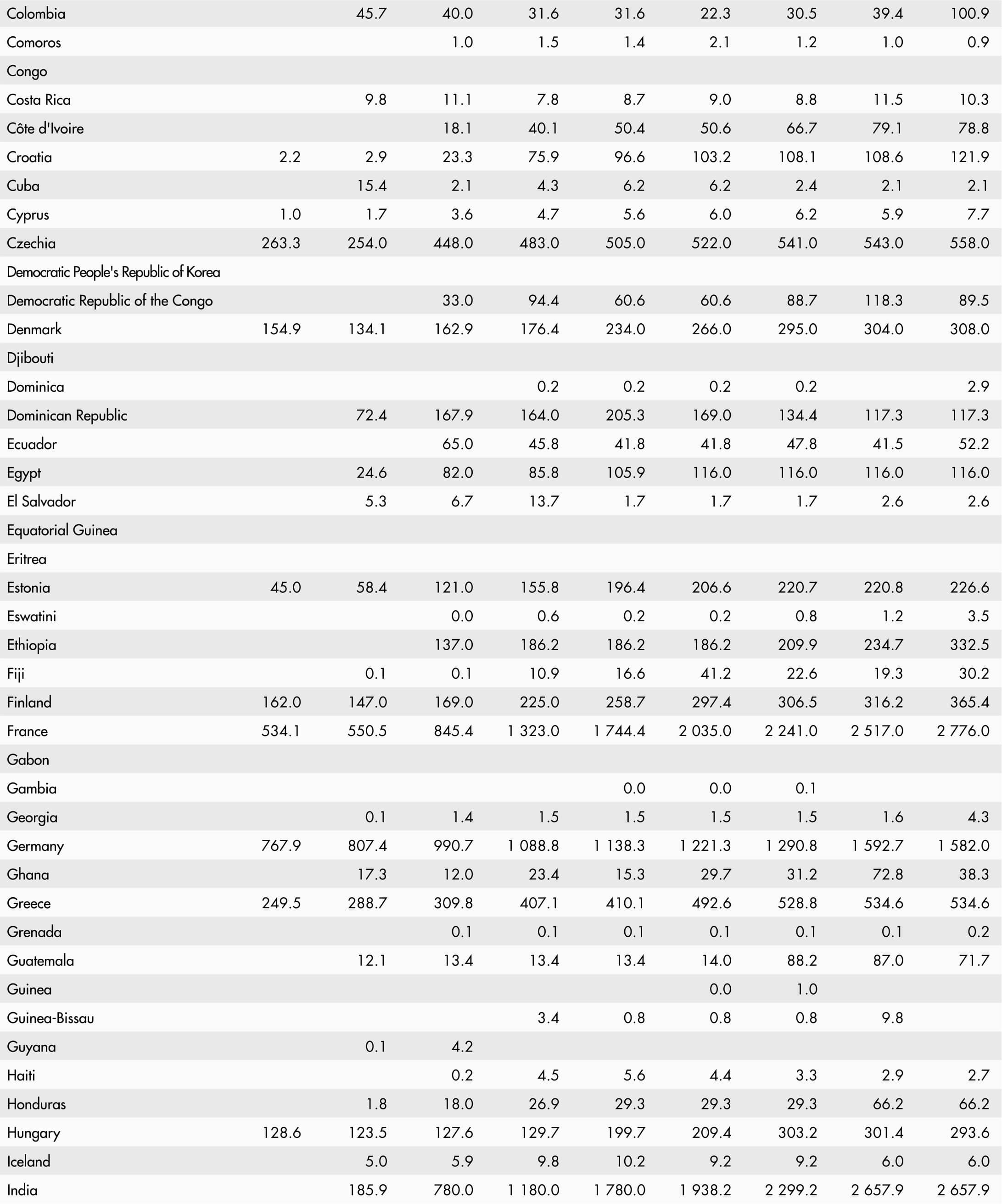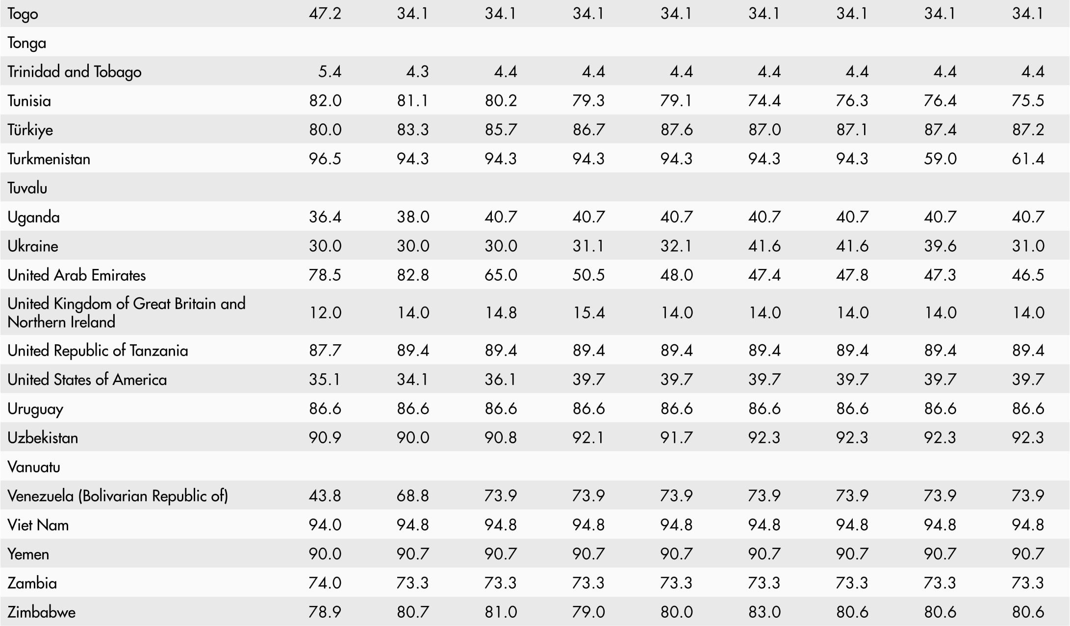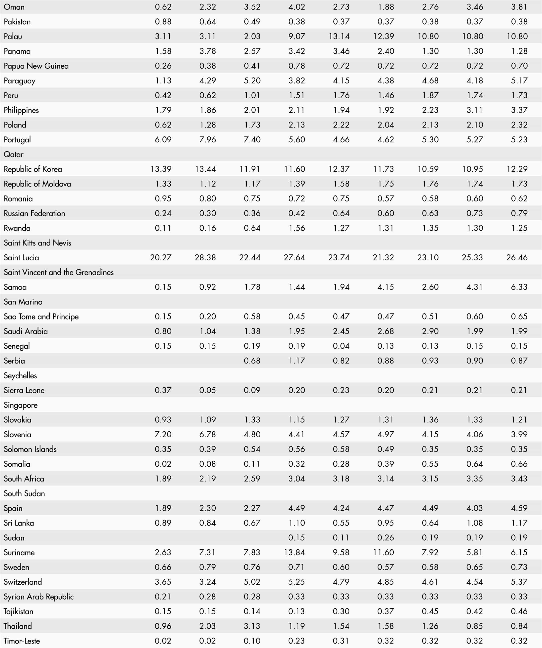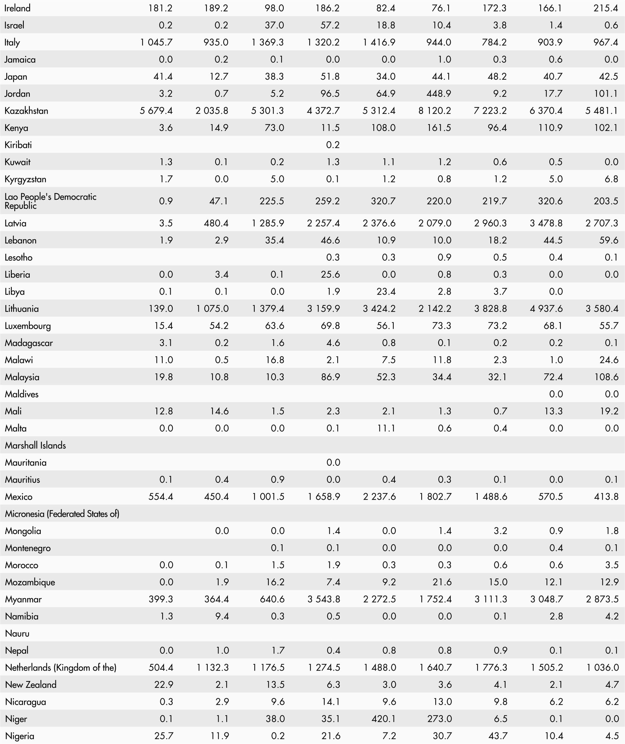 • A blank means that data are not available or that aggregates cannot be calculated because of missing data for the years shown.