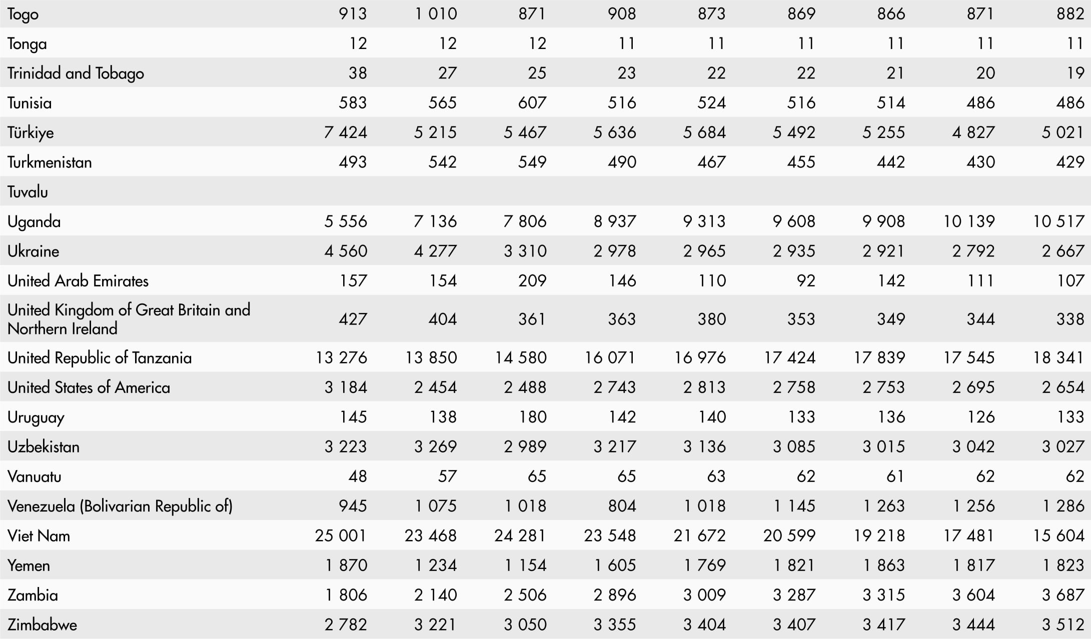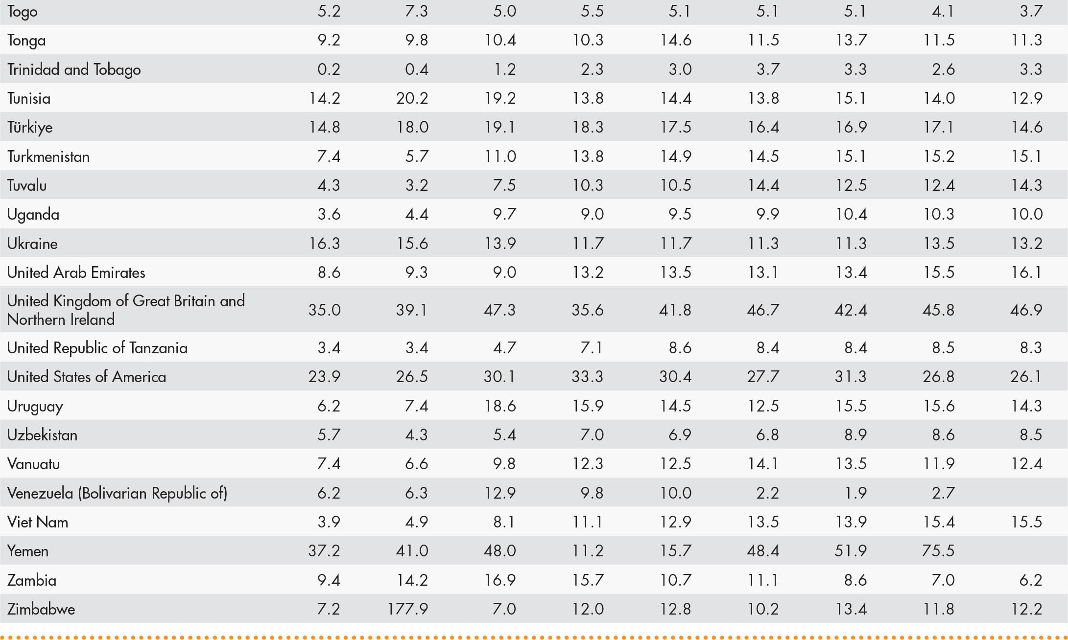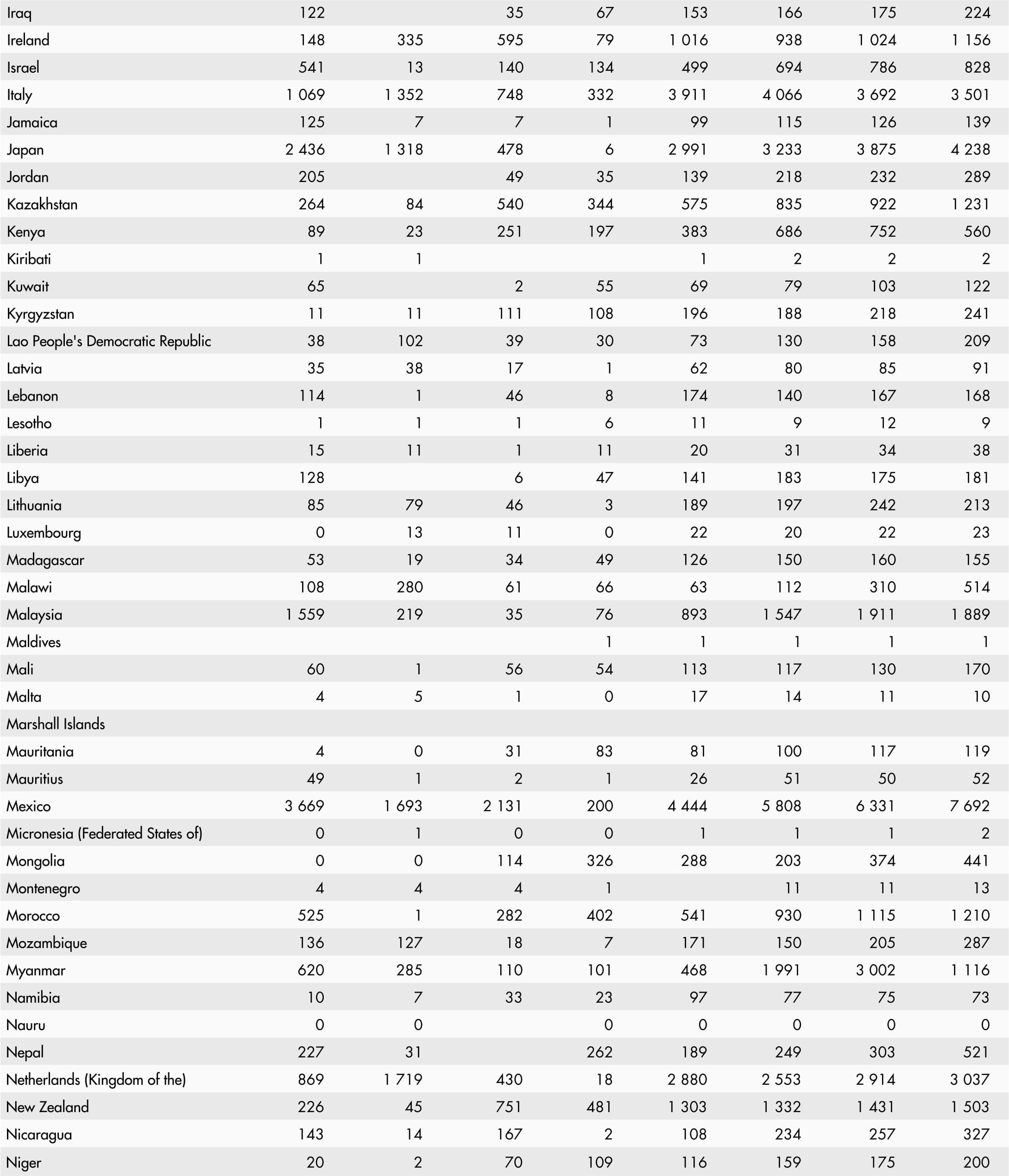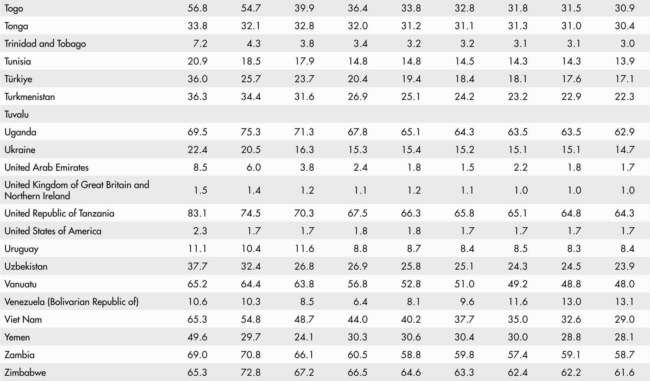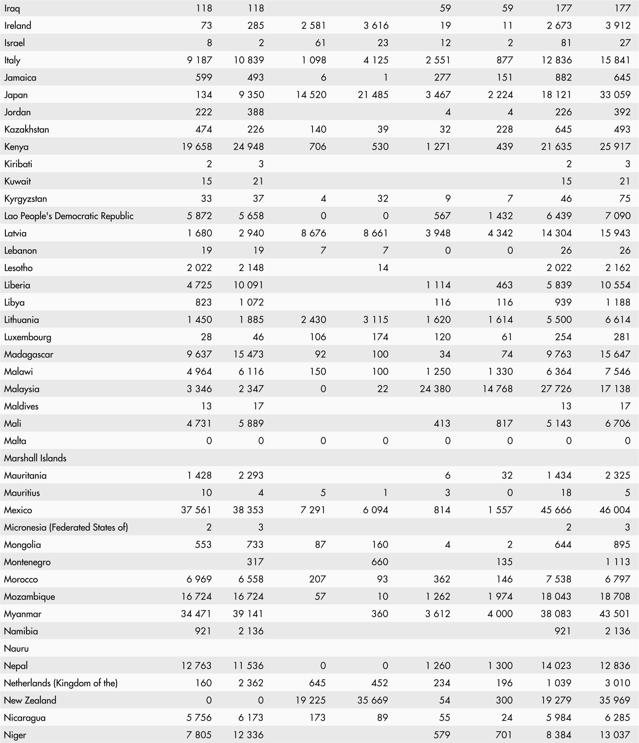 • A blank means that data are not available or that aggregates cannot be calculated because of missing data for the years shown.