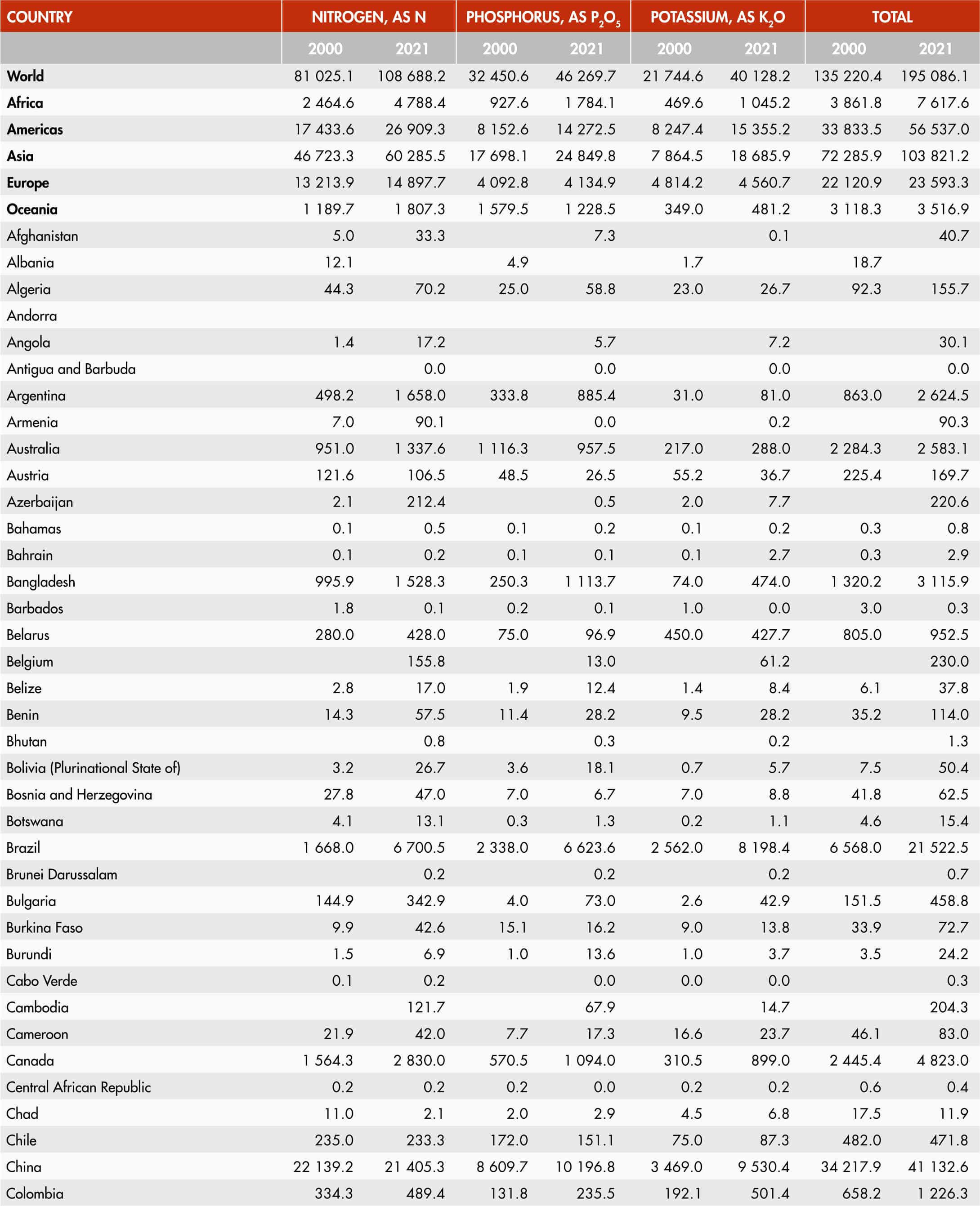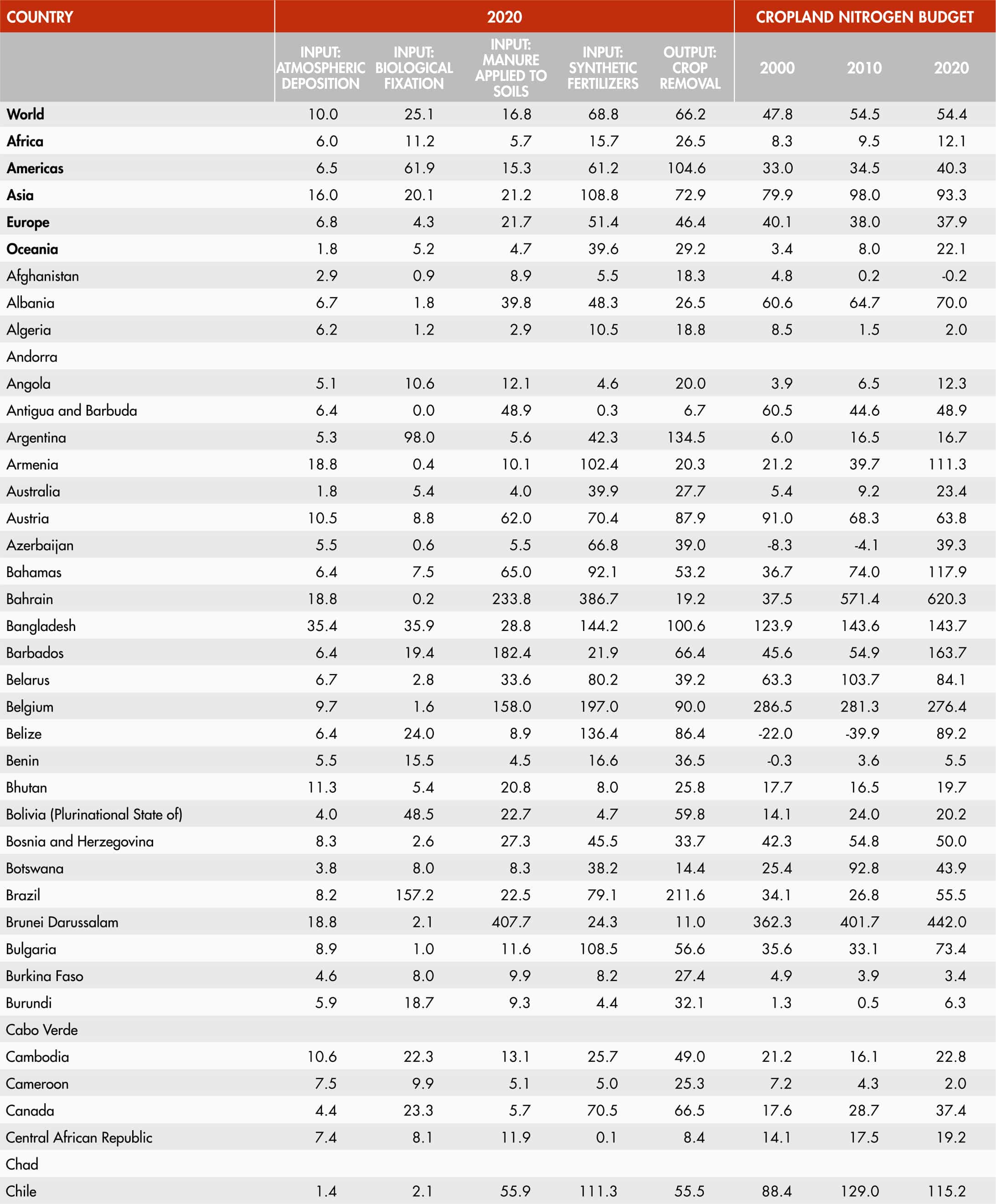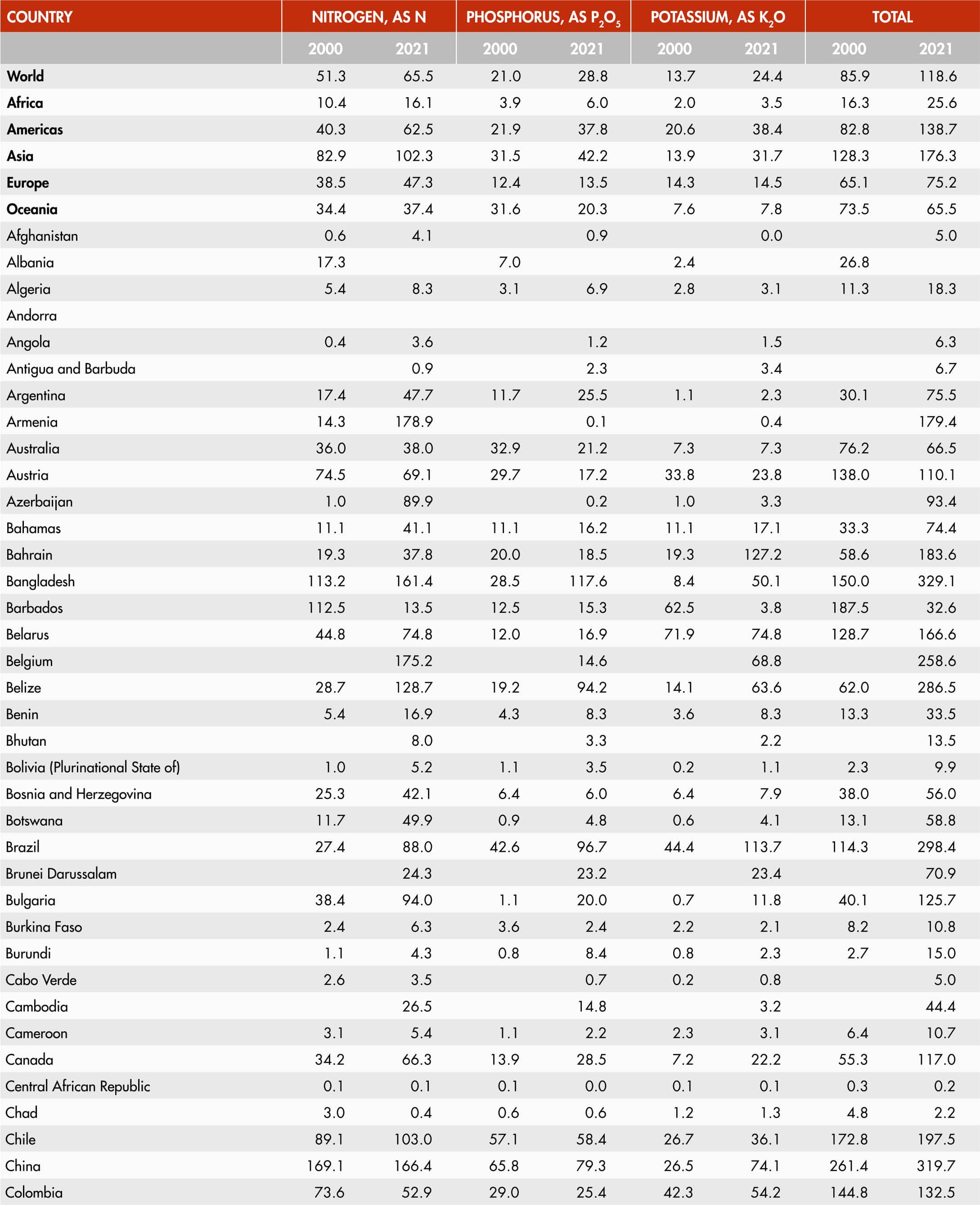 19. Inorganic fertilizer use per cropland area by nutrient and region
