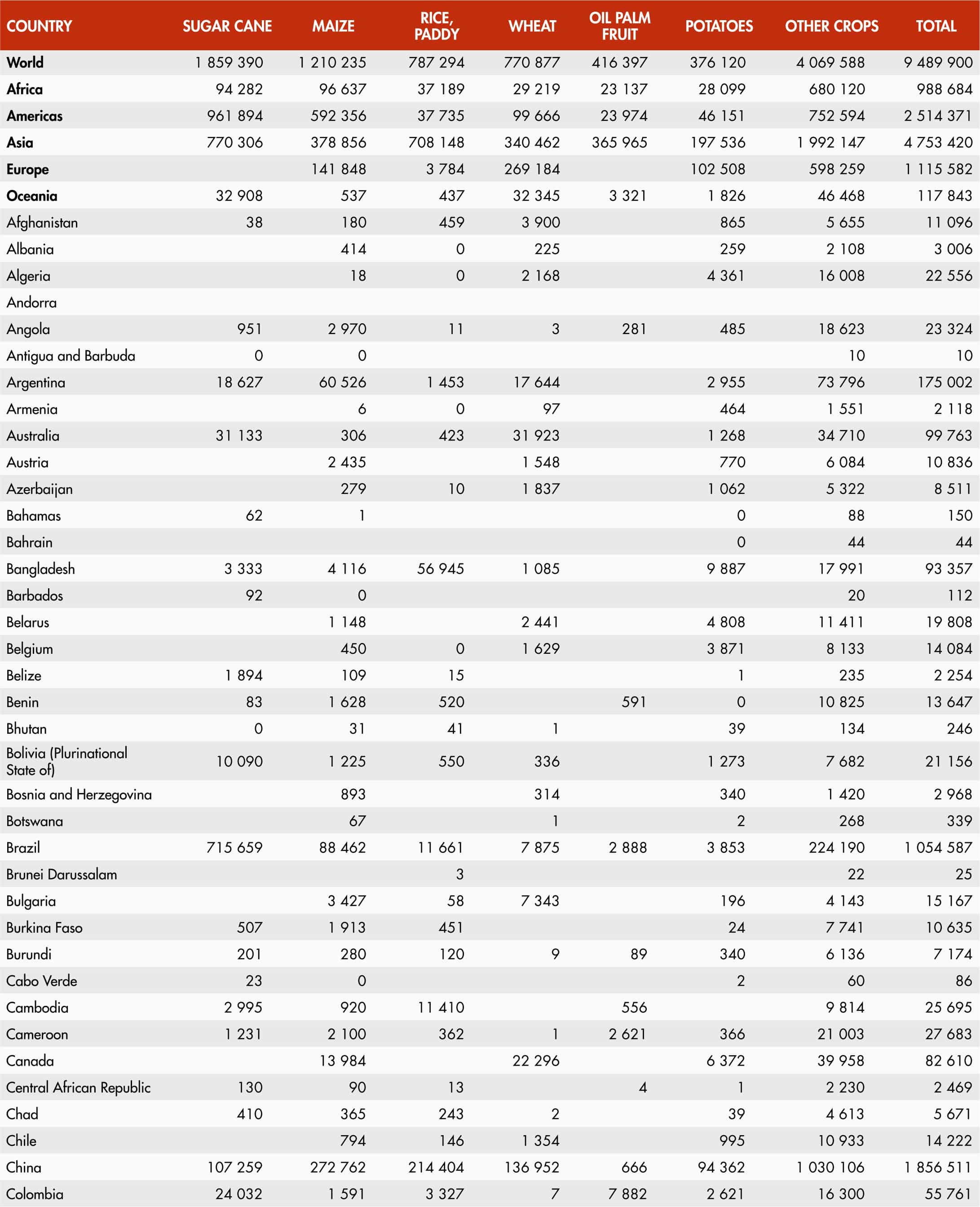 21. World production of primary crops, main commodities