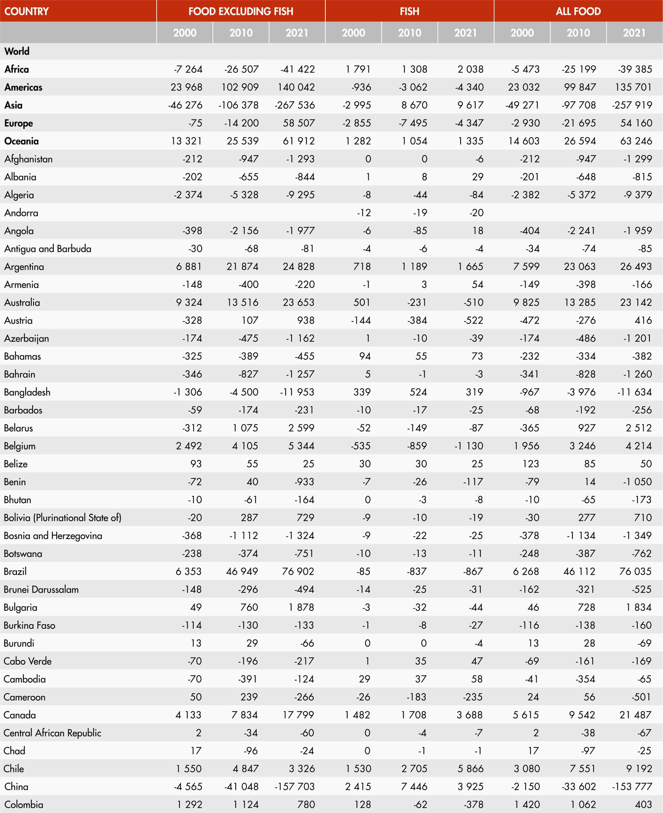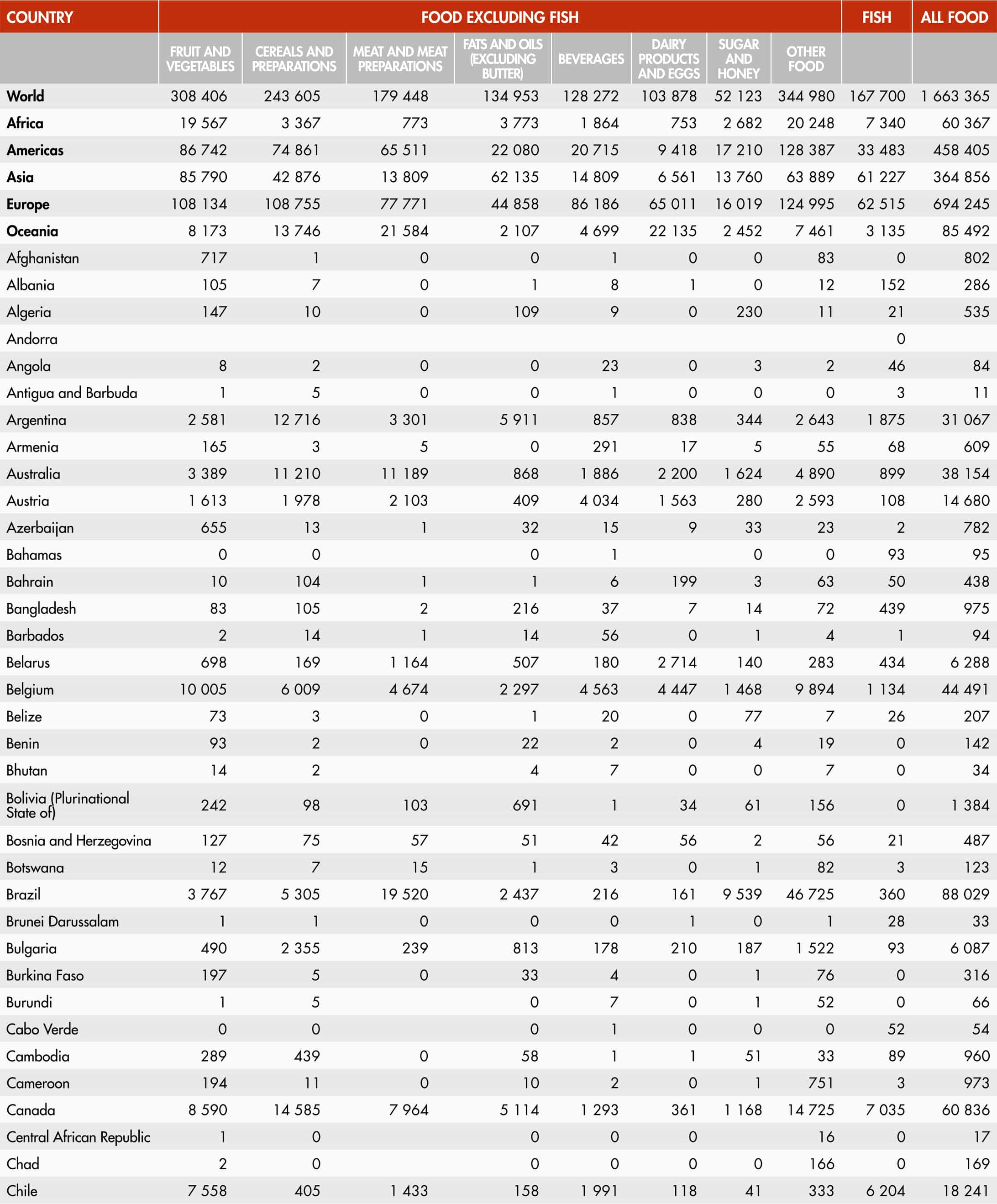 38. Food imports and exports by main groups and region (2021)