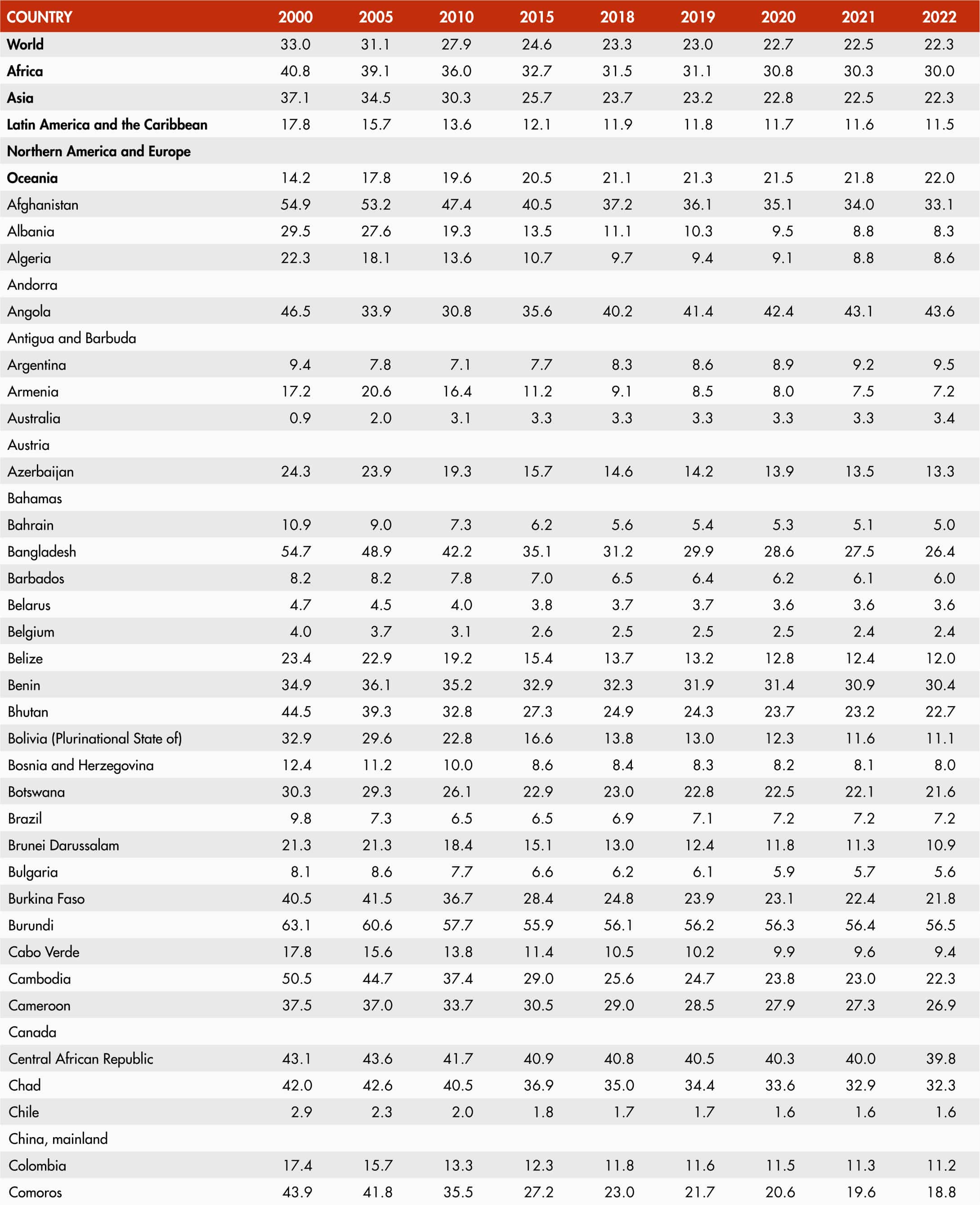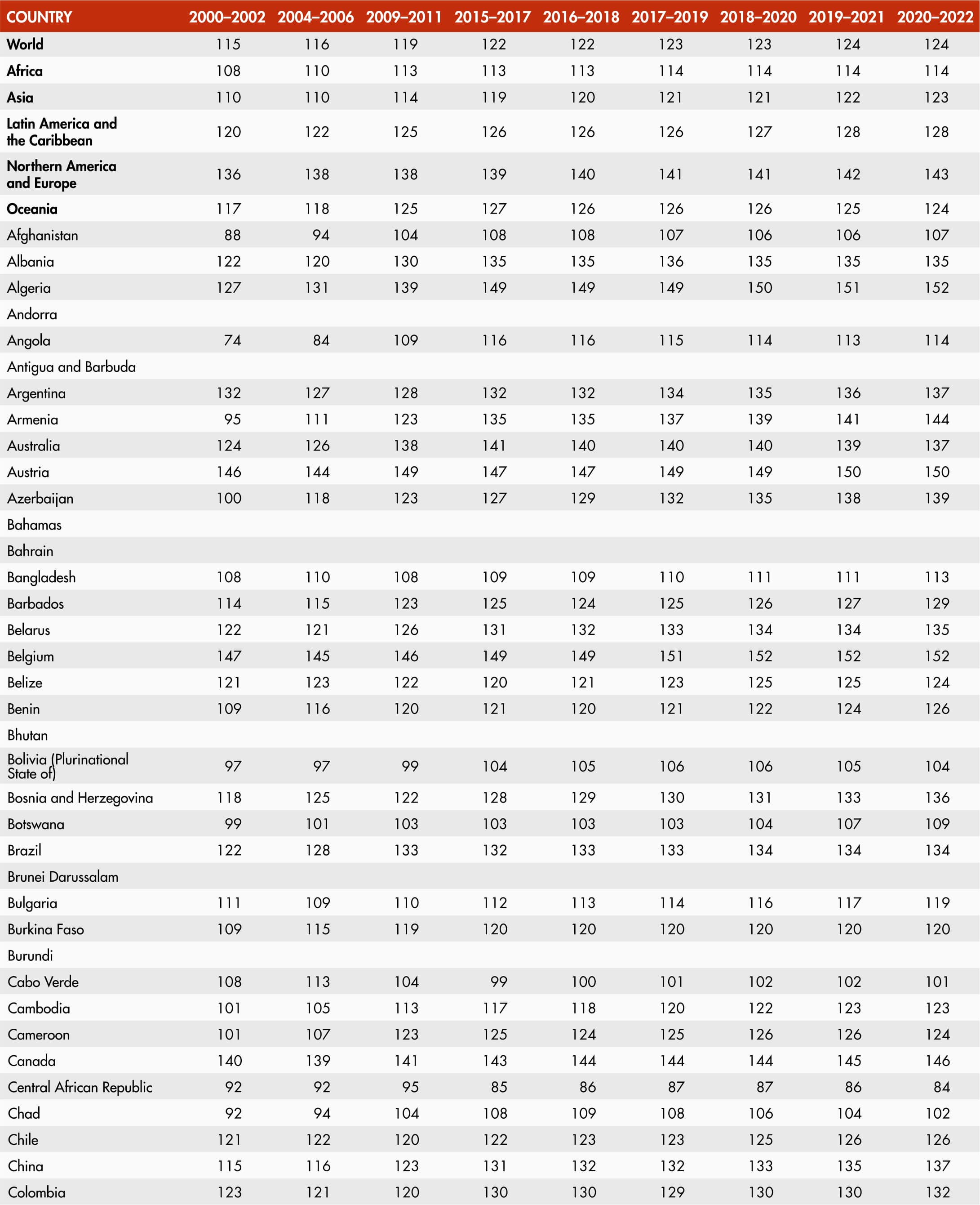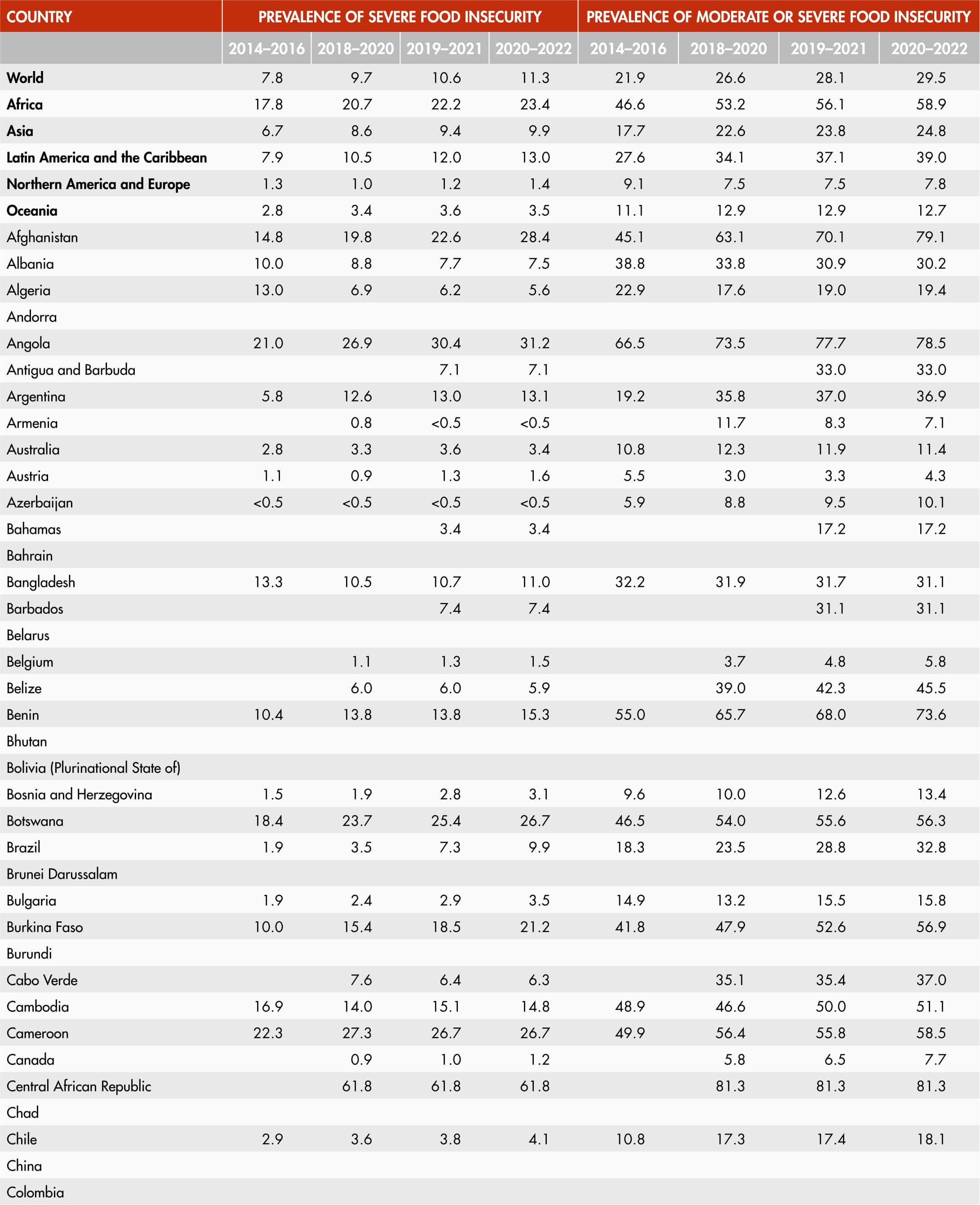 Regional and subregional aggregates are based on the country groupings defined in the United Nations M49 classification. A small subset of indicators used in Part 3 is based on the aggregation rules defined in The State of Food Security and Nutrition in the World 2023 report, which can be found at https://doi.org/10.4060/cc3017en.