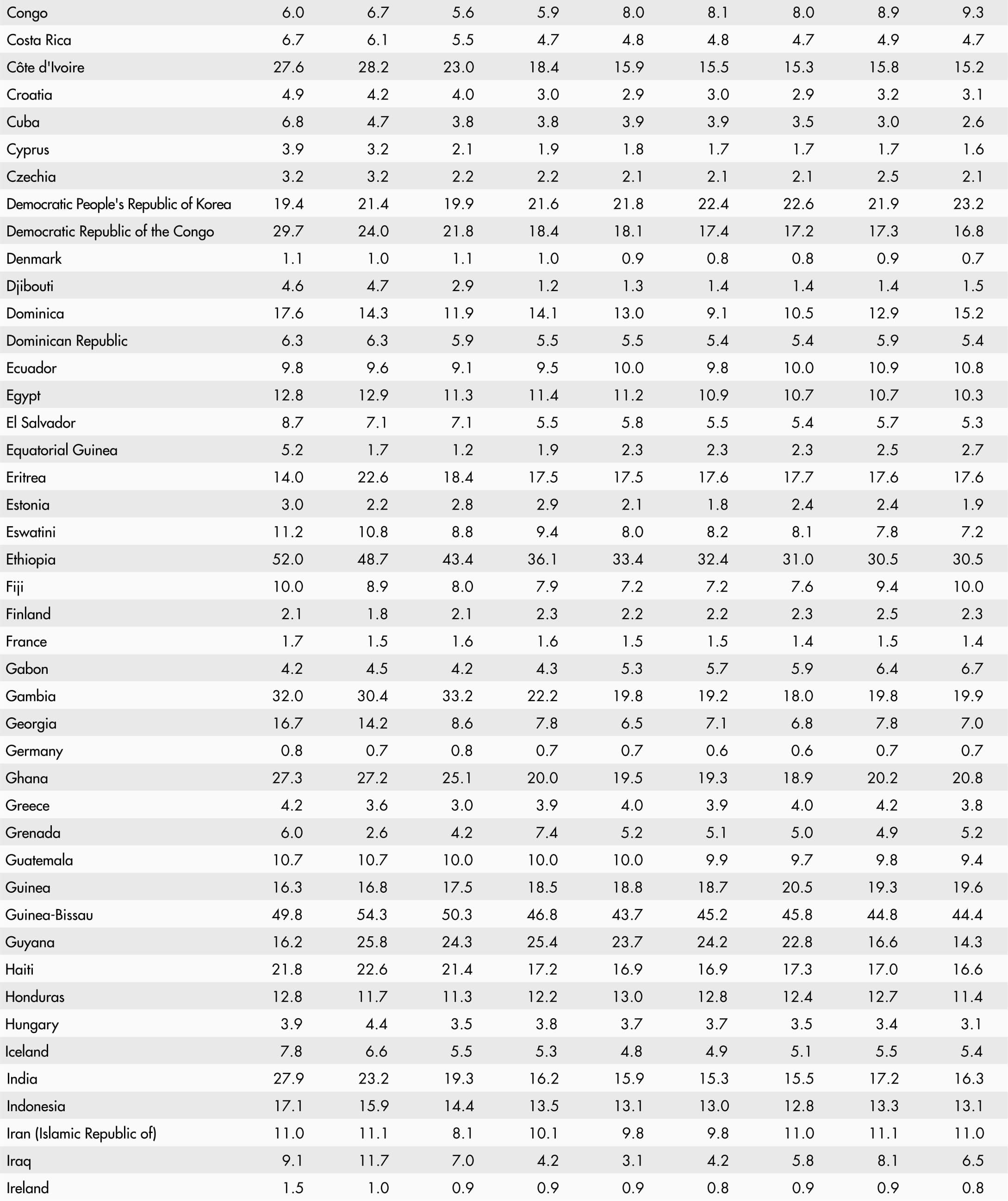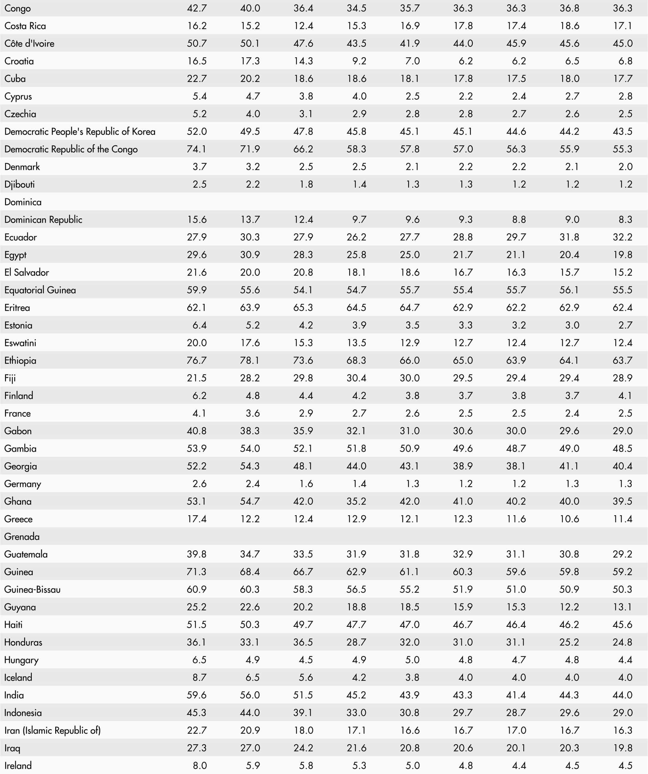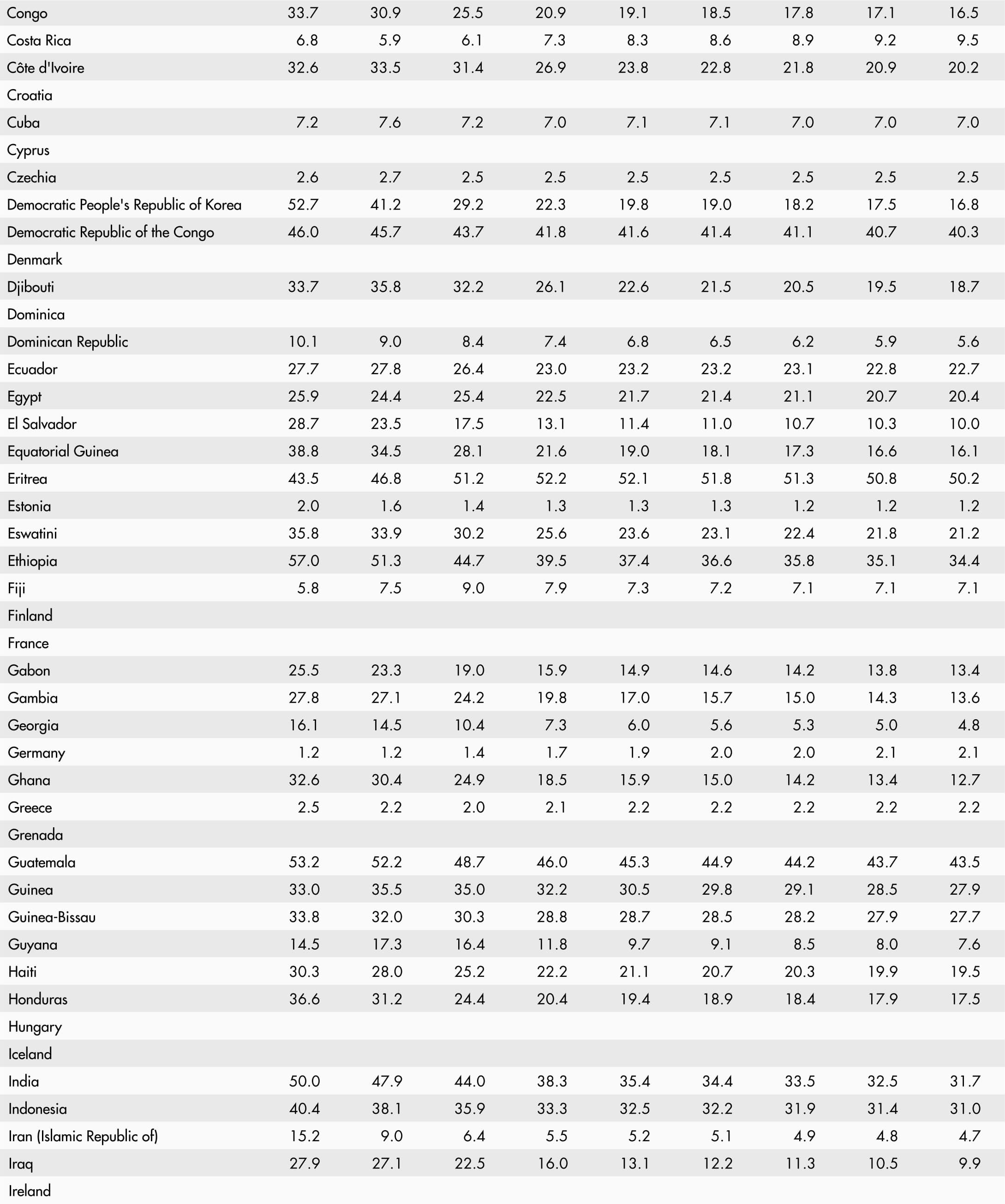 Regional and subregional aggregates are based on the country groupings defined in the United Nations M49 classification. A small subset of indicators used in Part 3 is based on the aggregation rules defined in The State of Food Security and Nutrition in the World 2023 report, which can be found at https://doi.org/10.4060/cc3017en.